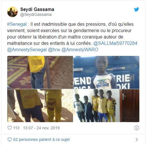 Pour rappel, Seydi Gassama avait mis en garde contre toute tentative de pressions, d’où qu’elles viennent, pouvant être exercées sur la gendarmerie ou le procureur pour obtenir la libération d’un maître coranique auteur de maltraitance sur des talibés.