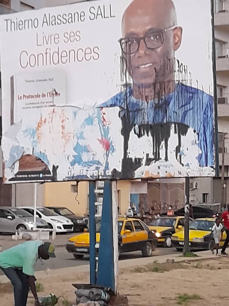 Les affiches de Thierno Alassane Sall pour la promotion de son livre «Le Protocole de l’Élysée. Confidences d’un ancien ministre sénégalais du Pétrole» ont été vandalisées par des individus non encore identifiés.