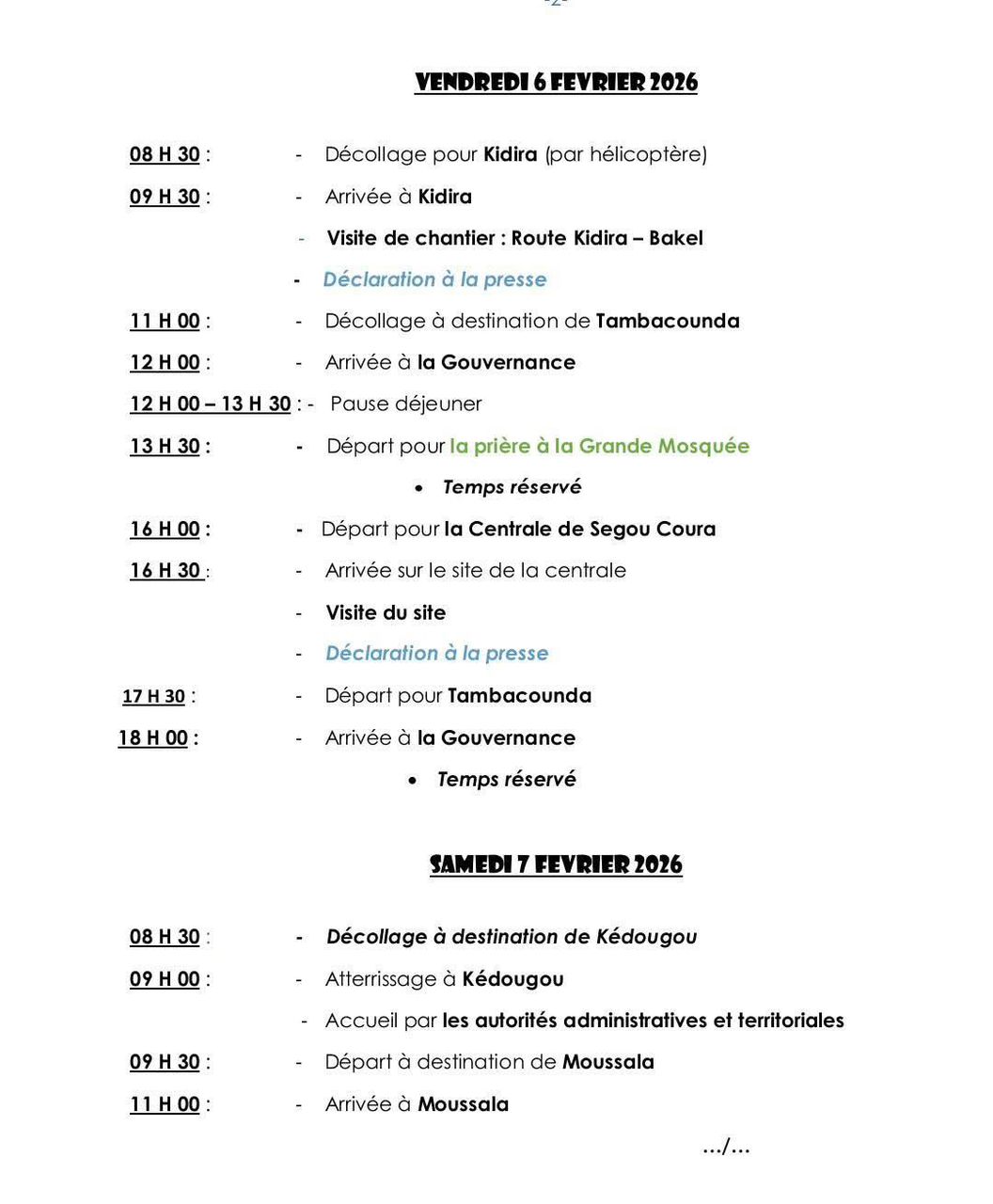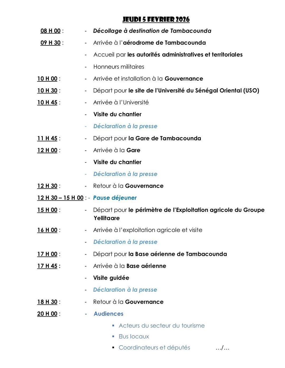 Selon le programme officiel, plusieurs étapes ont été prévues pour renforcer le développement régional et suivre les projets en cours.