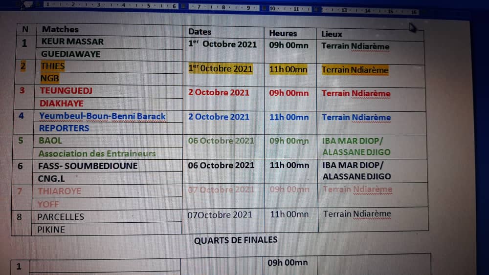 Les matchs se dérouleront aux stades Ndiareme de Guediawaye, Iba Mar Diop, et Amadou Barry de Guédiawaye.