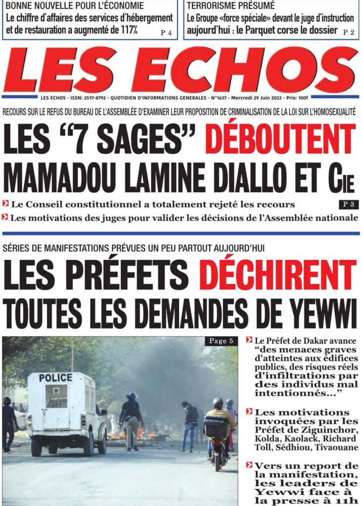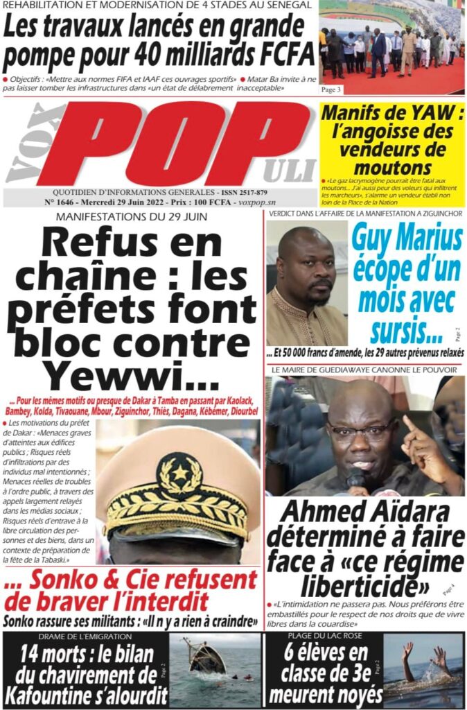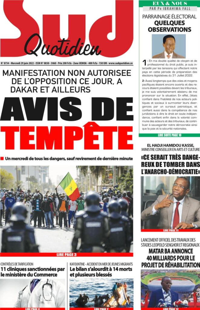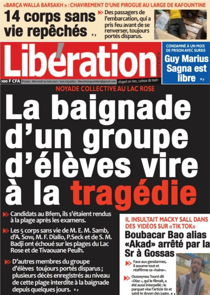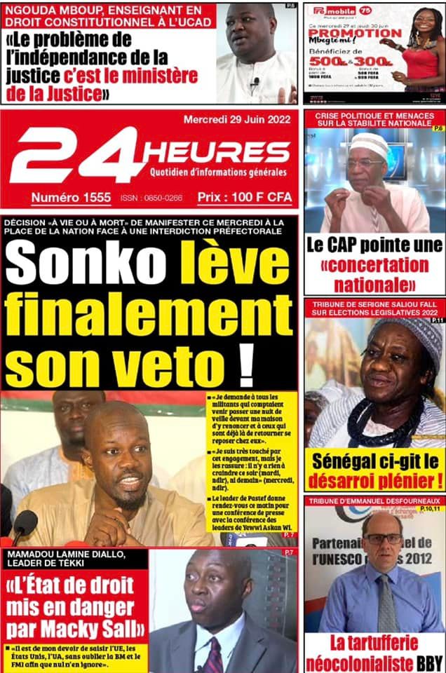 Accueil › Sénégal › Une de journaux du mercredi 29 juin 2022 Une de journaux du mercredi 29 juin 2022 Publié le 29 Juin 2022, à 08:30 par Abdou Faty GUEYE Une de journaux du mercredi 29 juin 2022 Votre avis sera publié et visible par des milliers de lecteurs. Veuillez l’exprimer dans un langage respectueux. Commentaire Nom E-mail (ne sera pas visible) Enregistrer mon nom, mon e-mail et mon site web dans le navigateur pour mon prochain commentaire. Partager Partager Partager 1 Un commentaire ndiaye donc il ya des gens qui croient ce qui dit sonko mon vieux Laisser un commentaire Annuler la réponseCommentaireNom E-mail (ne sera pas visible) Enregistrer mon nom, mon e-mail et mon site dans le navigateur pour mon prochain commentaire.