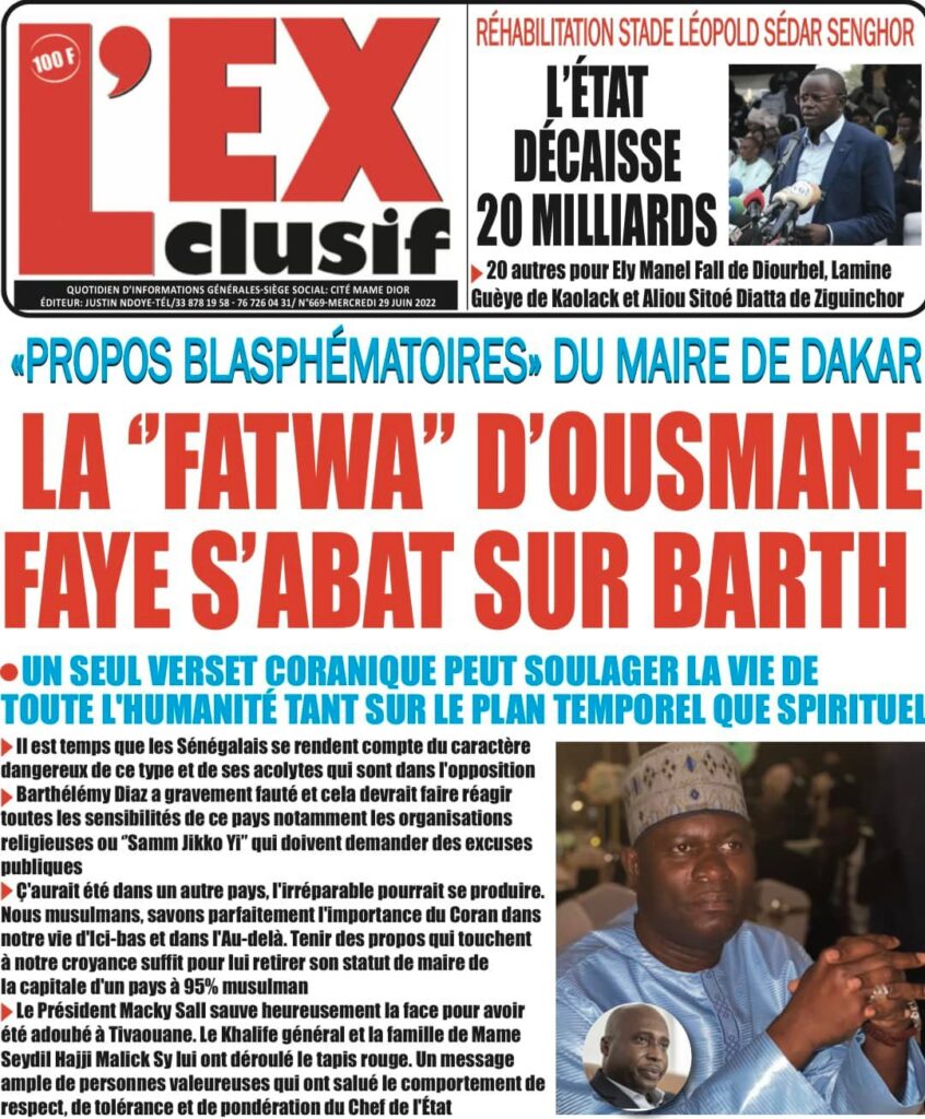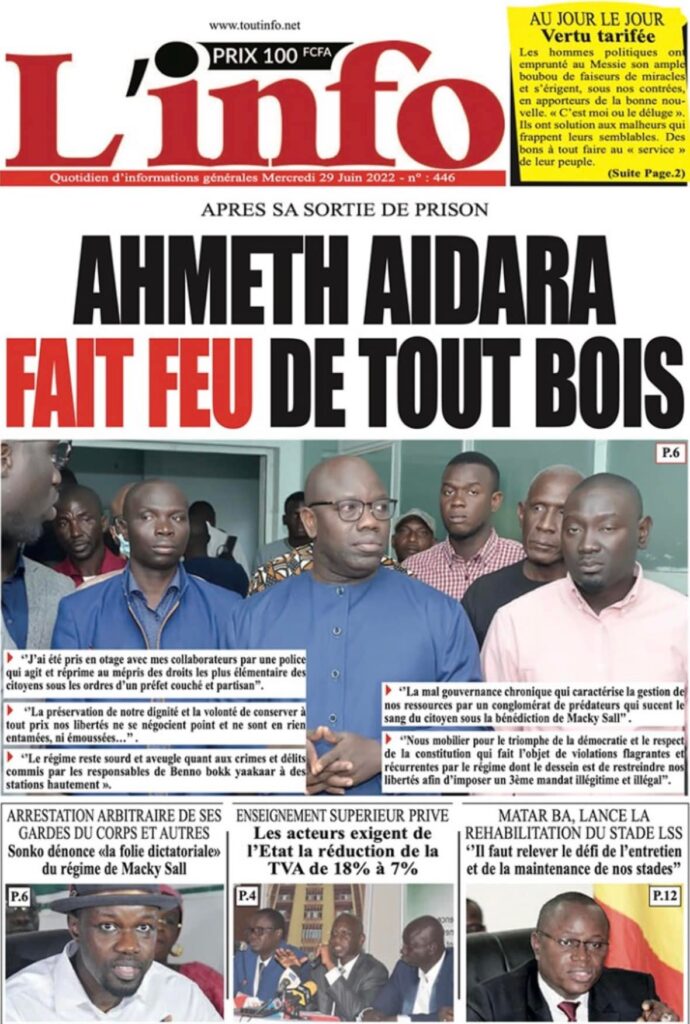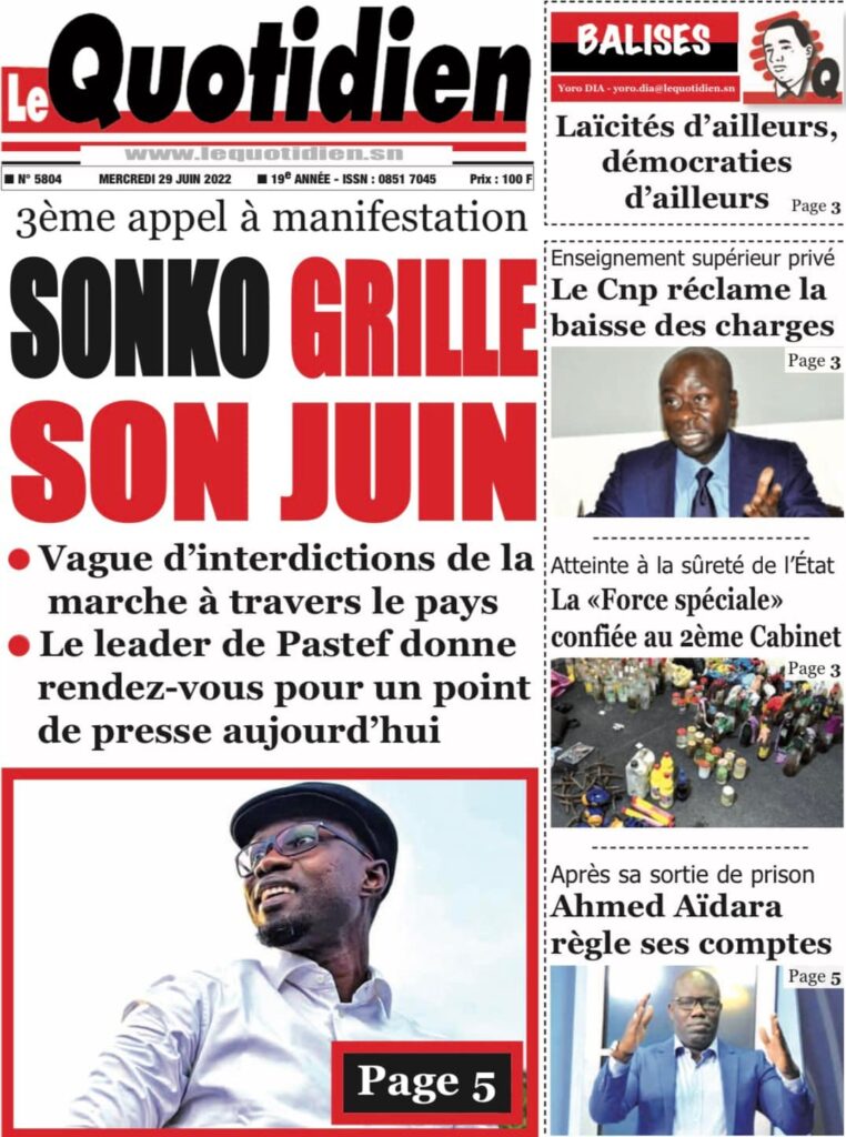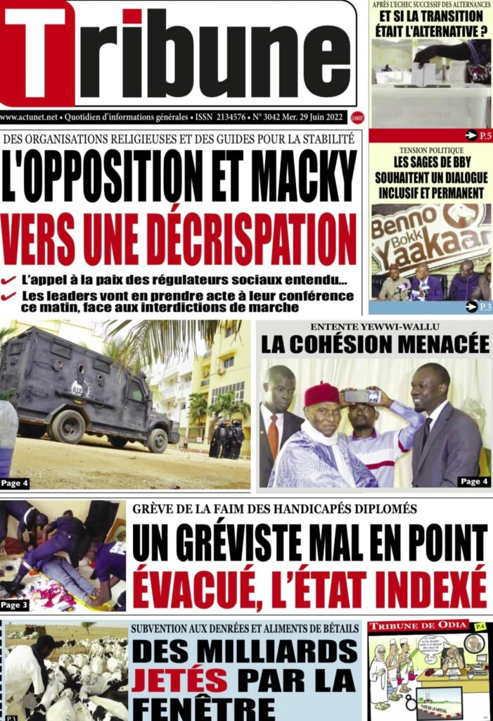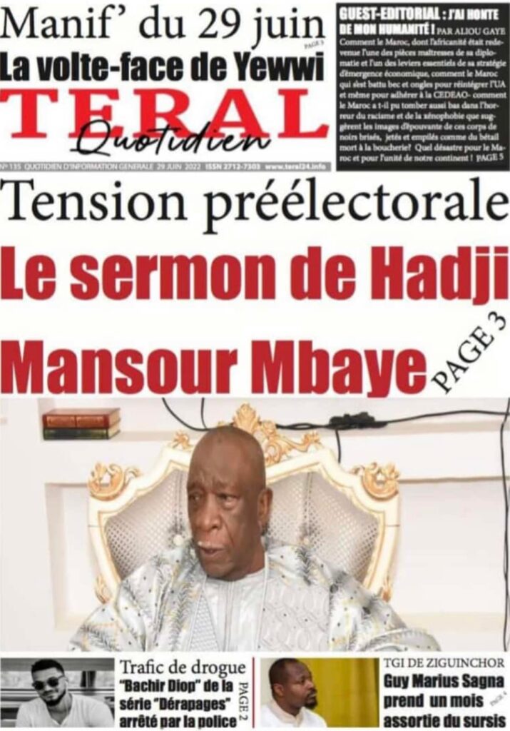 Accueil › Sénégal › Une de journaux du mercredi 29 juin 2022 Une de journaux du mercredi 29 juin 2022 Publié le 29 Juin 2022, à 08:30 par Abdou Faty GUEYE Une de journaux du mercredi 29 juin 2022 Votre avis sera publié et visible par des milliers de lecteurs. Veuillez l’exprimer dans un langage respectueux. Commentaire Nom E-mail (ne sera pas visible) Enregistrer mon nom, mon e-mail et mon site web dans le navigateur pour mon prochain commentaire. Partager Partager Partager 1 Un commentaire ndiaye donc il ya des gens qui croient ce qui dit sonko mon vieux Laisser un commentaire Annuler la réponseCommentaireNom E-mail (ne sera pas visible) Enregistrer mon nom, mon e-mail et mon site dans le navigateur pour mon prochain commentaire.