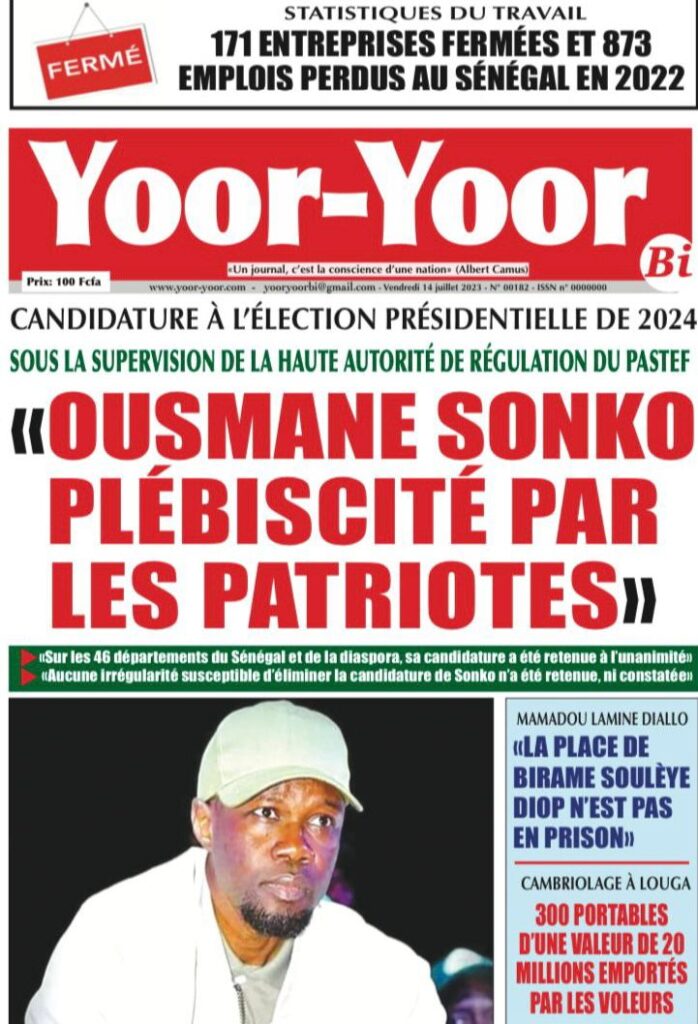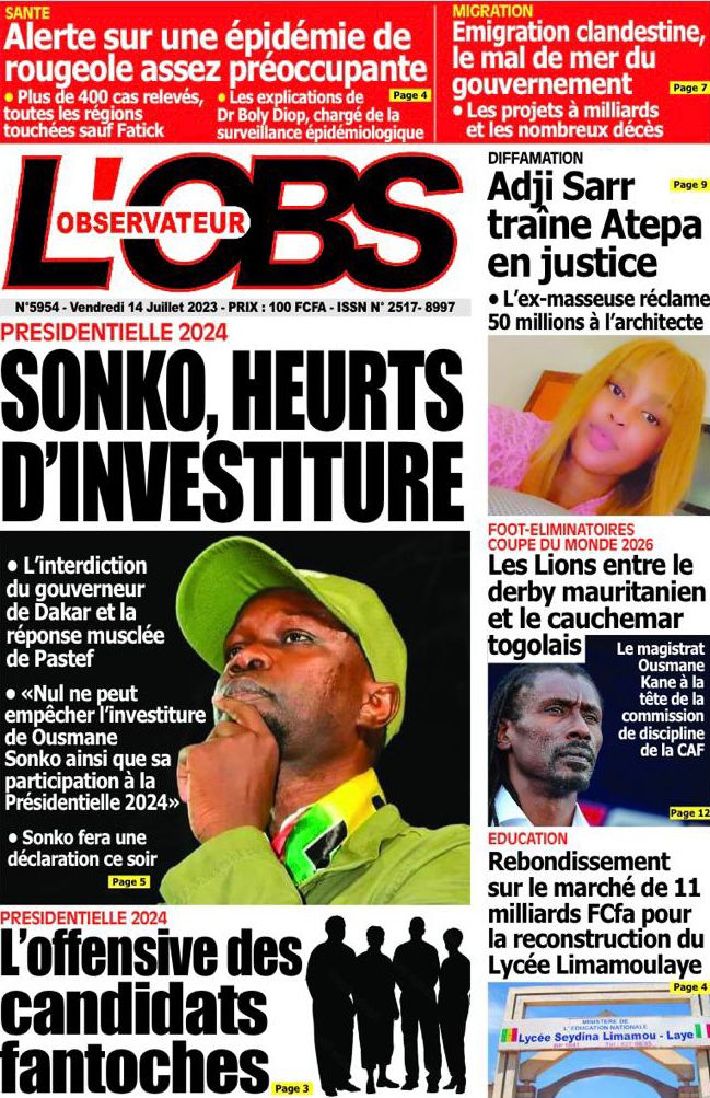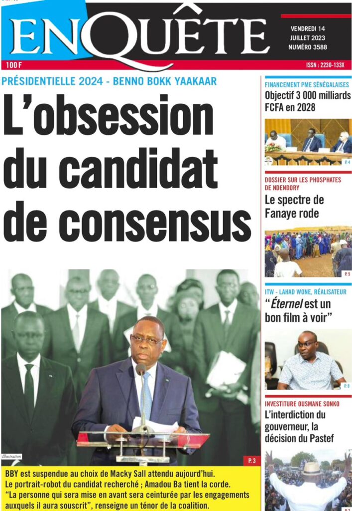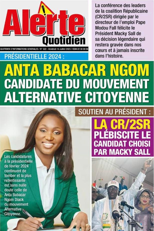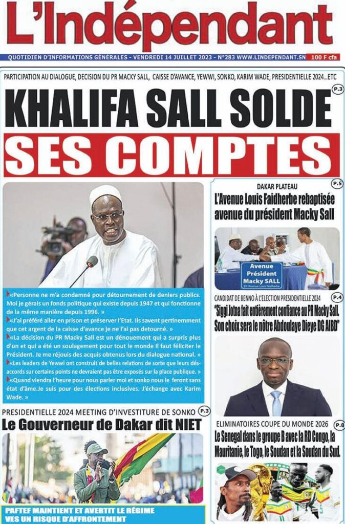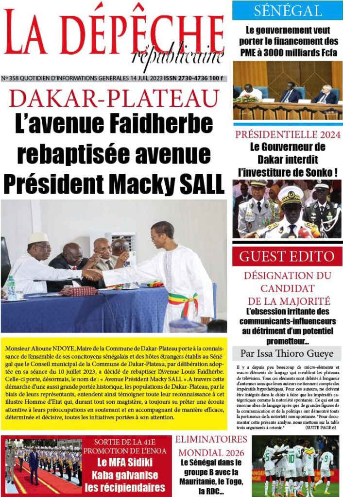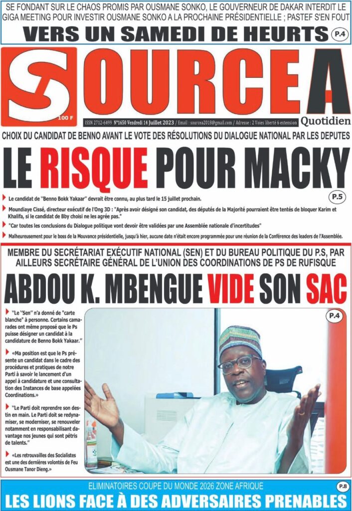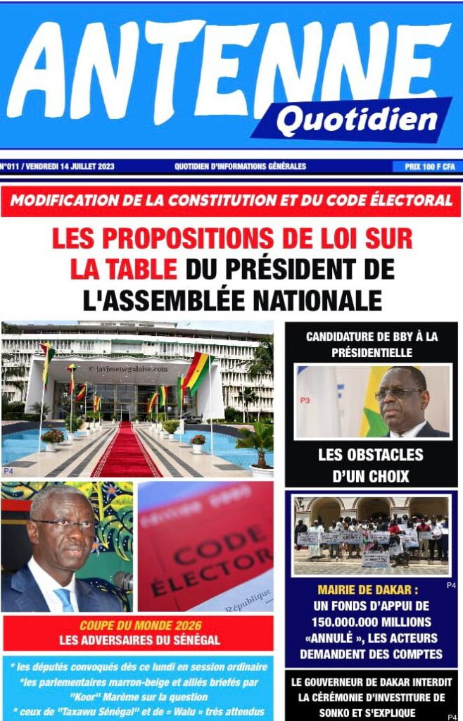 Accueil › Sénégal › Une des journaux du vendredi 14 juillet 2023 Actualités Une des journaux du vendredi 14 juillet 2023 Abdou Faty GUEYE 14 Juil 2023, 07:20 1 min Une de journaux vendredi 14 juillet 2023 Votre avis sera publié et visible par des milliers de lecteurs. Veuillez l’exprimer dans un langage respectueux. Commentaire Nom E-mail (ne sera pas visible) Enregistrer mon nom, mon e-mail et mon site web dans le navigateur pour mon prochain commentaire. Partager Partager Partager 0 Laisser un commentaire Annuler la réponseCommentaireNom E-mail (ne sera pas visible) Enregistrer mon nom, mon e-mail et mon site dans le navigateur pour mon prochain commentaire.