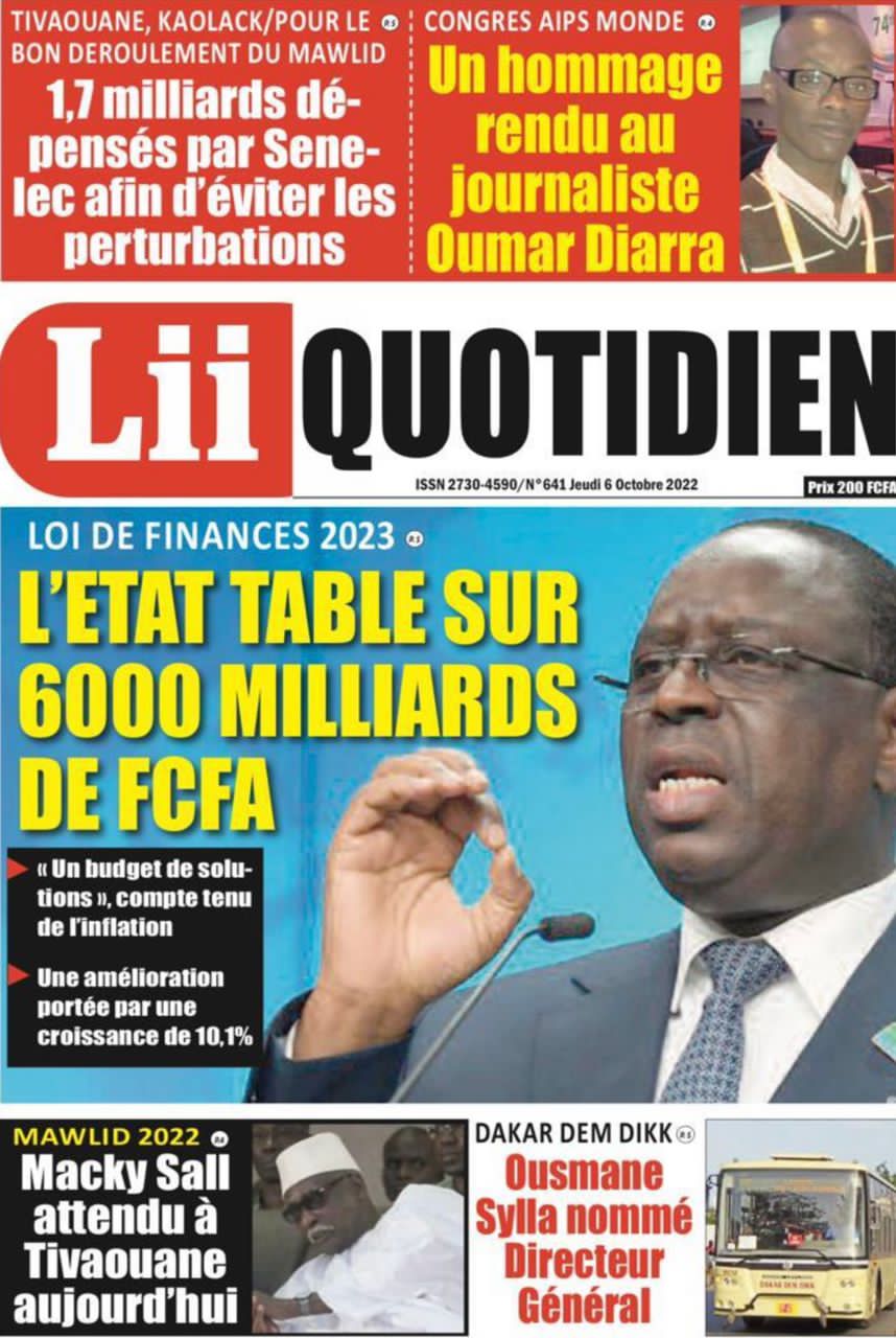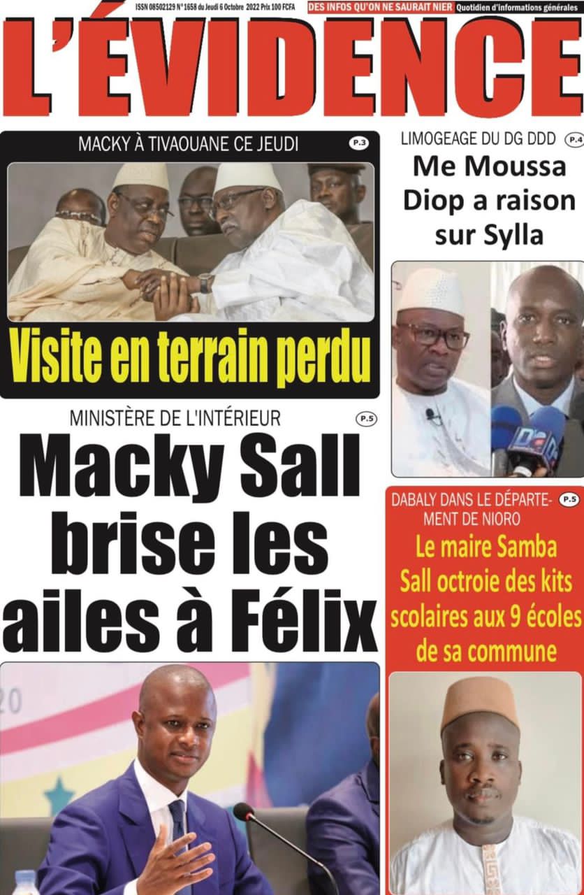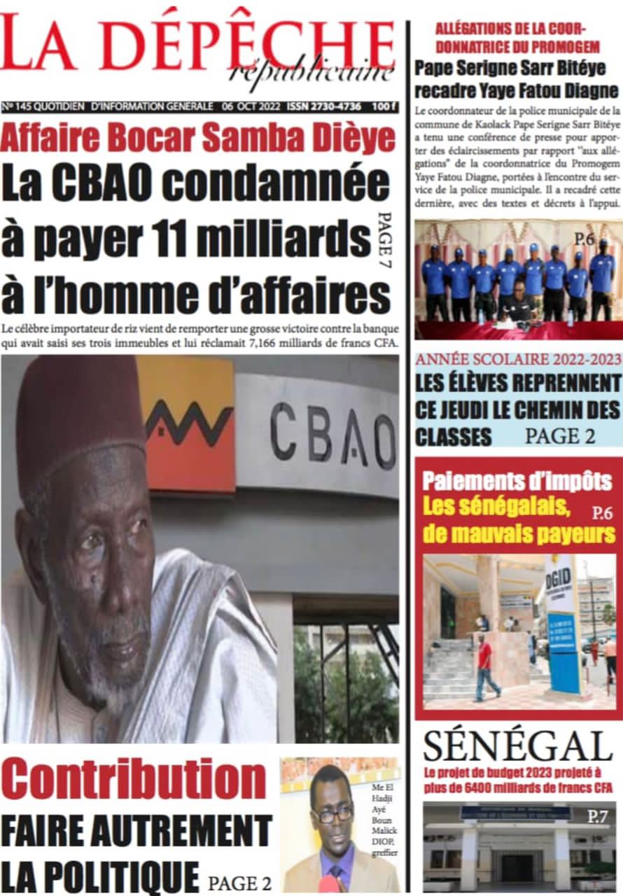 Accueil ›Sénégal ›Une des journaux du jeudi 06 octobre 2022Une des journaux du jeudi 06 octobre 2022 Publié le 6 Oct 2022, à 08:49 par Abdou Faty GUEYE Une des journaux du jeudi 06 octobre 2022Votre avis sera publié et visible par des milliers de lecteurs. Veuillez l’exprimer dans un langage respectueux. Commentaire Nom E-mail (ne sera pas visible) Enregistrer mon nom, mon e-mail et mon site web dans le navigateur pour mon prochain commentaire. Partager Partager Partager 1 Un commentaire Farouk AlphaRemède pour agrandir le masculinité et pour durée sur la femme +229 56 02 49 82Laisser un commentaire Annuler la réponseCommentaireNom E-mail (ne sera pas visible) Enregistrer mon nom, mon e-mail et mon site dans le navigateur pour mon prochain commentaire.