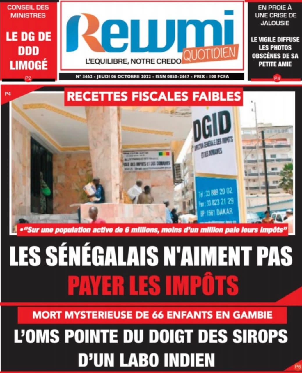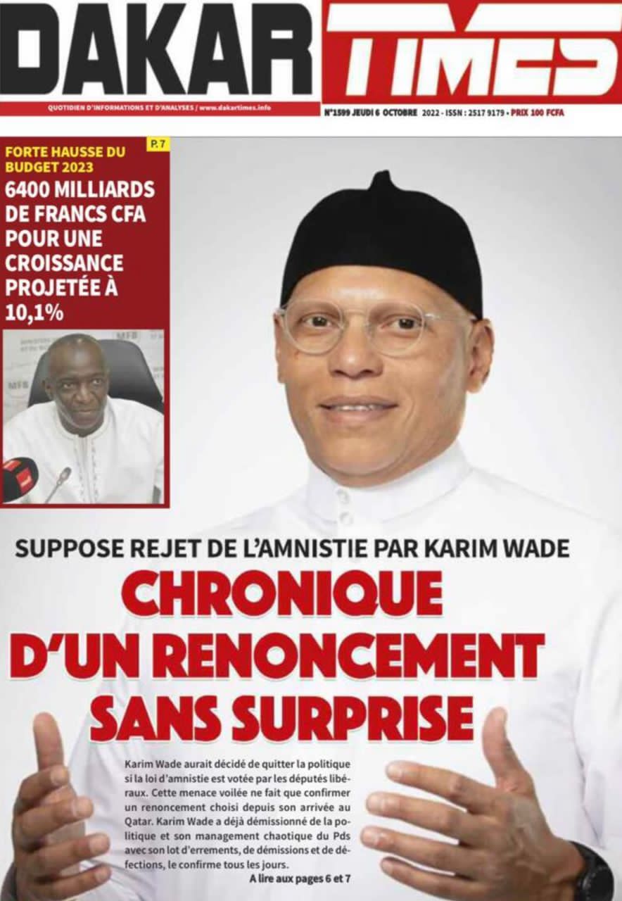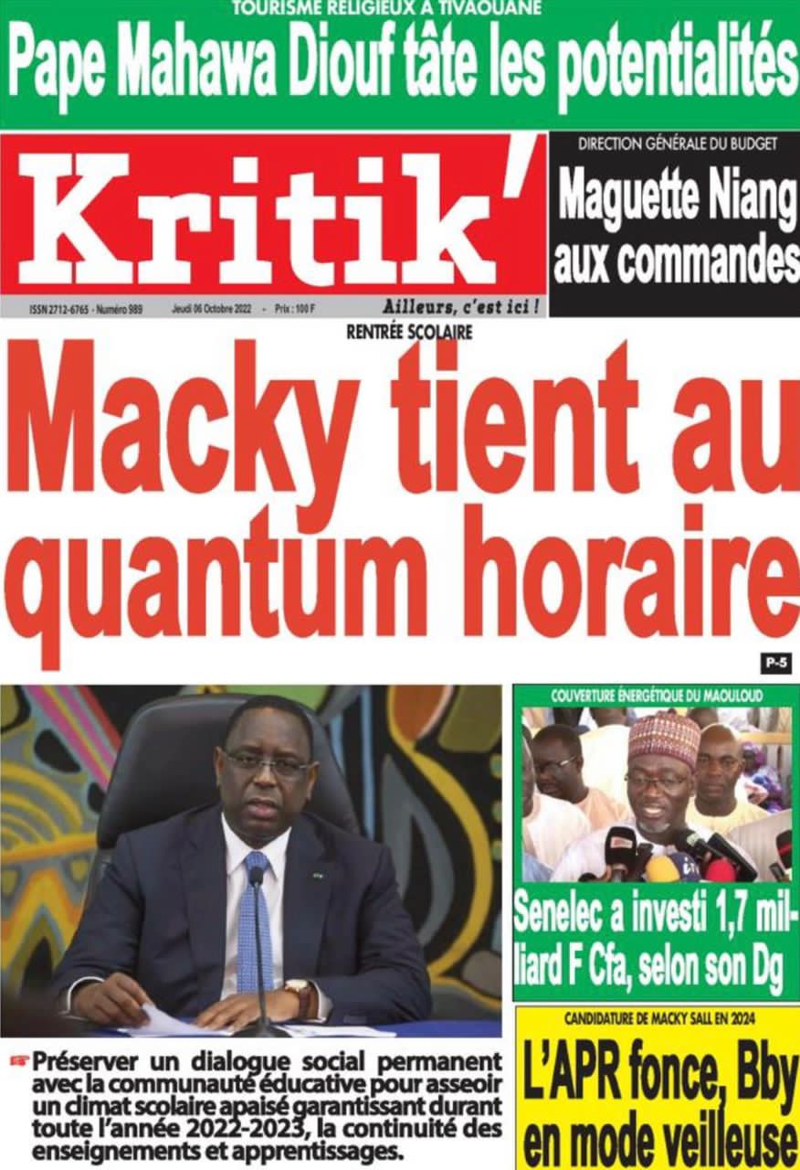 Accueil ›Sénégal ›Une des journaux du jeudi 06 octobre 2022Une des journaux du jeudi 06 octobre 2022 Publié le 6 Oct 2022, à 08:49 par Abdou Faty GUEYE Une des journaux du jeudi 06 octobre 2022Votre avis sera publié et visible par des milliers de lecteurs. Veuillez l’exprimer dans un langage respectueux. Commentaire Nom E-mail (ne sera pas visible) Enregistrer mon nom, mon e-mail et mon site web dans le navigateur pour mon prochain commentaire. Partager Partager Partager 1 Un commentaire Farouk AlphaRemède pour agrandir le masculinité et pour durée sur la femme +229 56 02 49 82Laisser un commentaire Annuler la réponseCommentaireNom E-mail (ne sera pas visible) Enregistrer mon nom, mon e-mail et mon site dans le navigateur pour mon prochain commentaire.