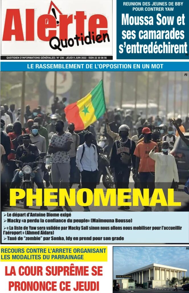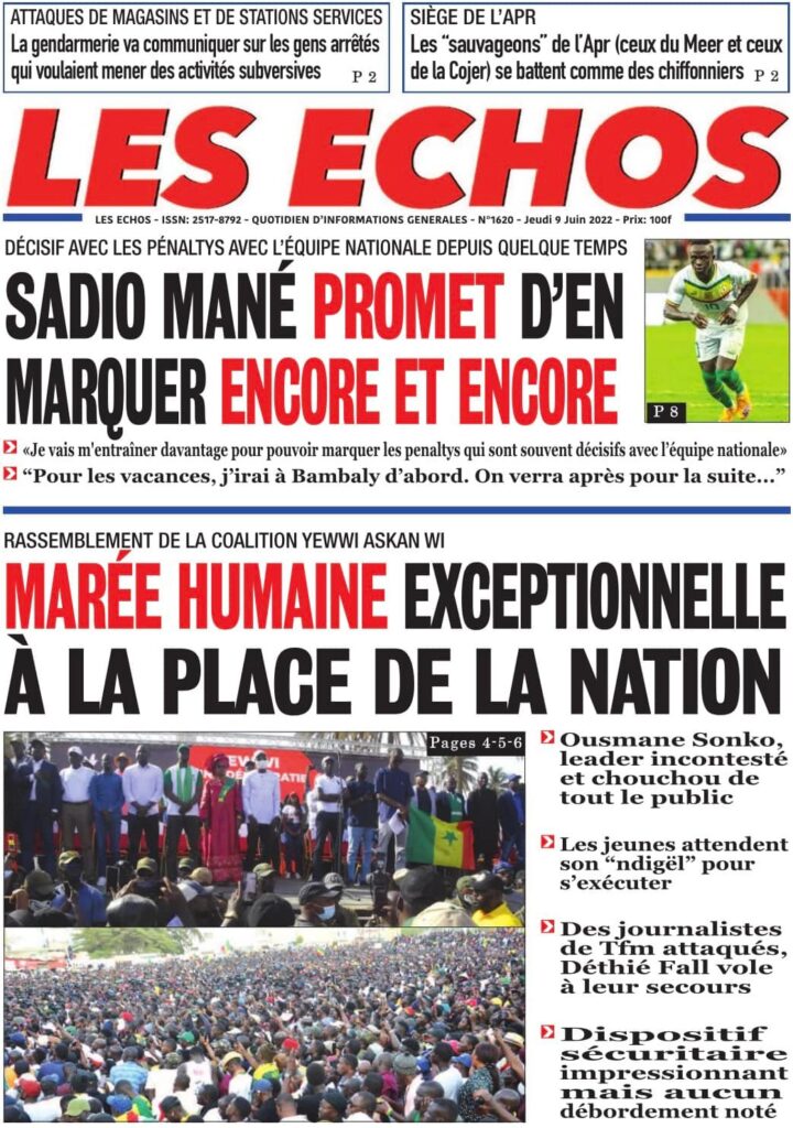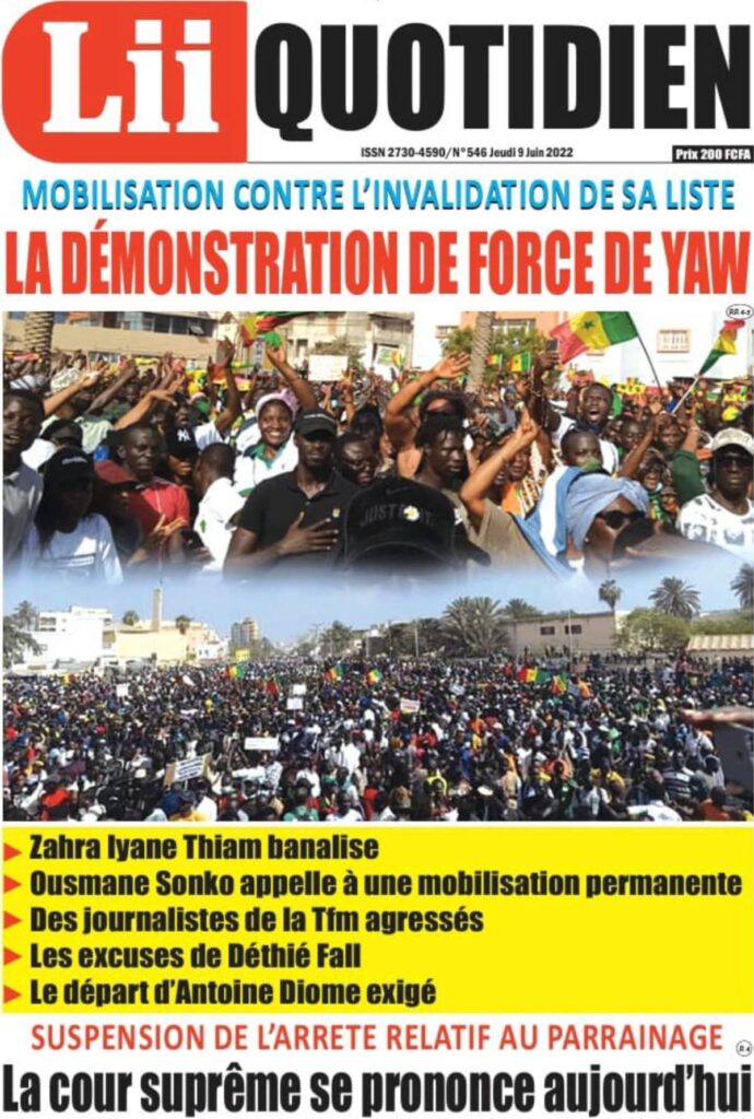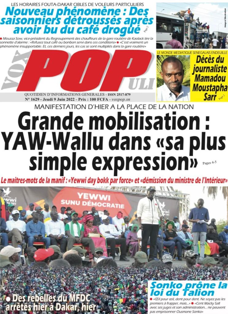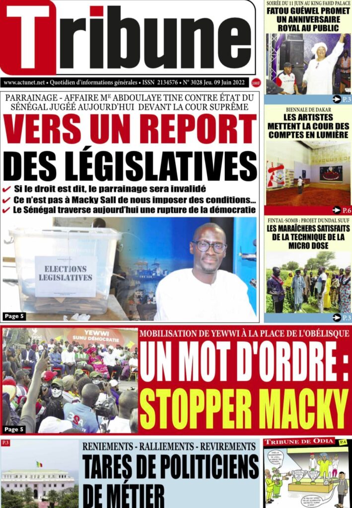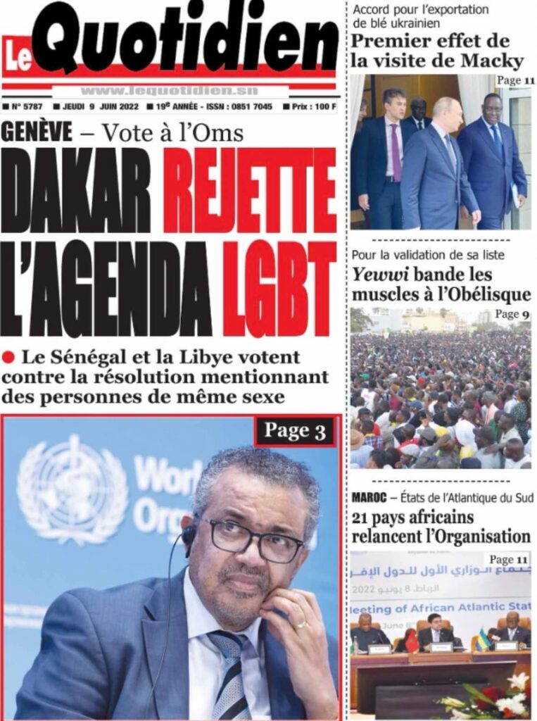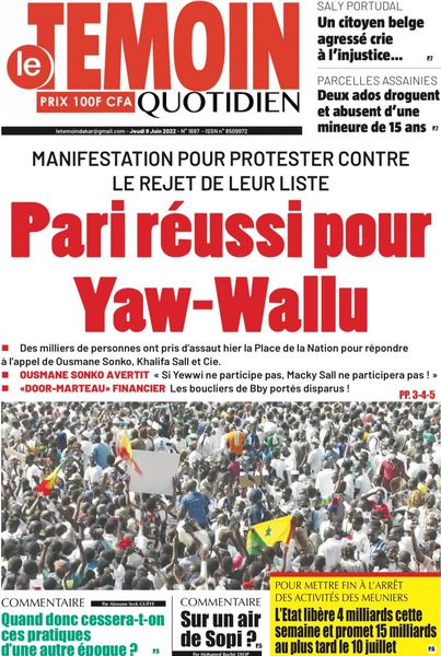Accueil ›Sénégal ›Une des journaux du jeudi 09 juin 2022Une des journaux du jeudi 09 juin 2022 Publié le 9 Juin 2022, à 07:54 par Abdou Faty GUEYE Votre avis sera publié et visible par des milliers de lecteurs. Veuillez l’exprimer dans un langage respectueux. Commentaire Nom E-mail (ne sera pas visible) Enregistrer mon nom, mon e-mail et mon site web dans le navigateur pour mon prochain commentaire. Partager Partager Partager 0 Laisser un commentaire Annuler la réponseCommentaireNom E-mail (ne sera pas visible) Enregistrer mon nom, mon e-mail et mon site dans le navigateur pour mon prochain commentaire.