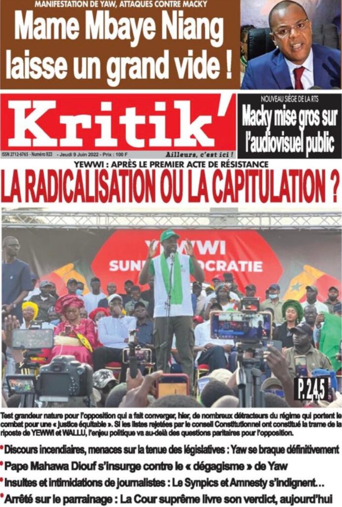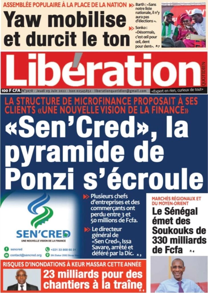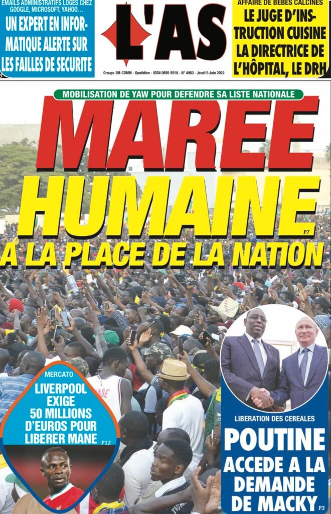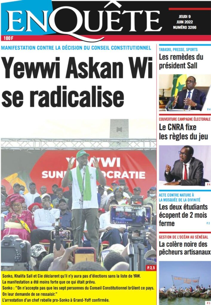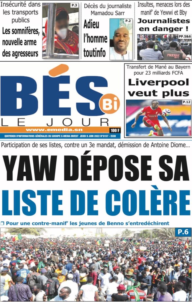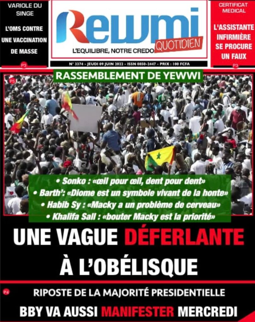 Accueil ›Sénégal ›Une des journaux du jeudi 09 juin 2022Une des journaux du jeudi 09 juin 2022 Publié le 9 Juin 2022, à 07:54 par Abdou Faty GUEYE Votre avis sera publié et visible par des milliers de lecteurs. Veuillez l’exprimer dans un langage respectueux. Commentaire Nom E-mail (ne sera pas visible) Enregistrer mon nom, mon e-mail et mon site web dans le navigateur pour mon prochain commentaire. Partager Partager Partager 0 Laisser un commentaire Annuler la réponseCommentaireNom E-mail (ne sera pas visible) Enregistrer mon nom, mon e-mail et mon site dans le navigateur pour mon prochain commentaire.