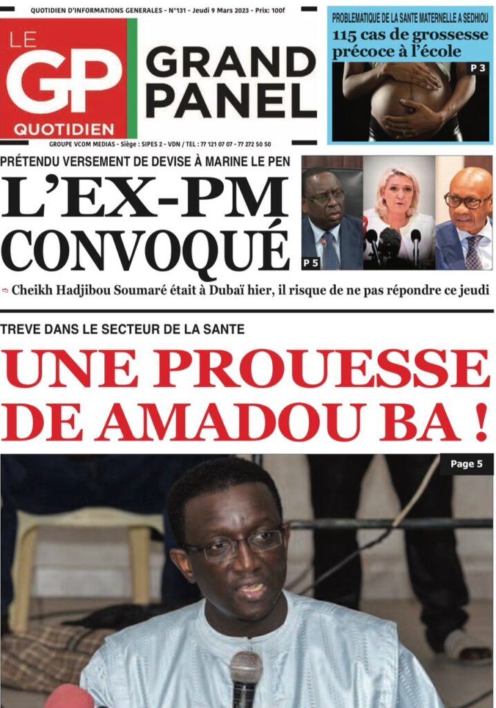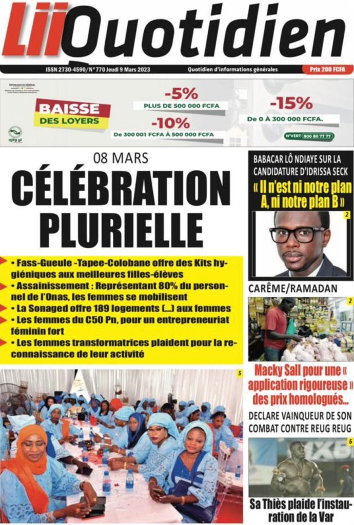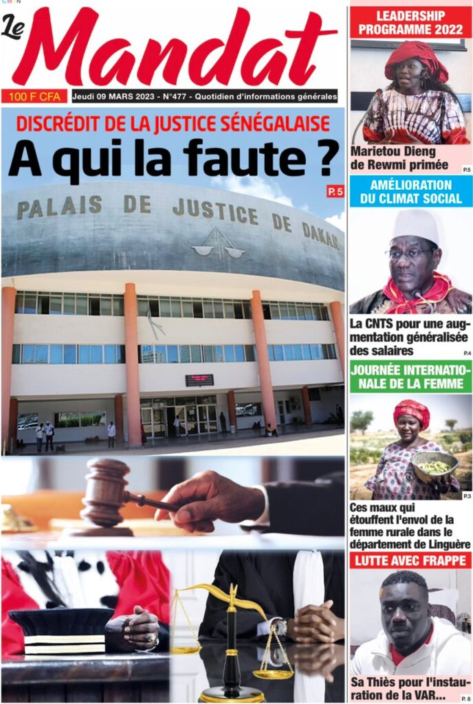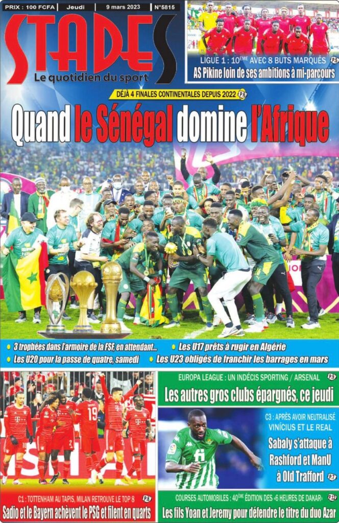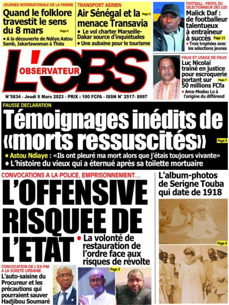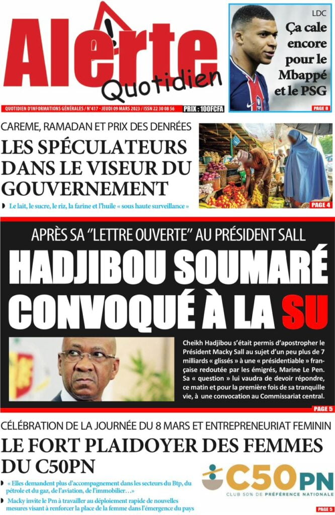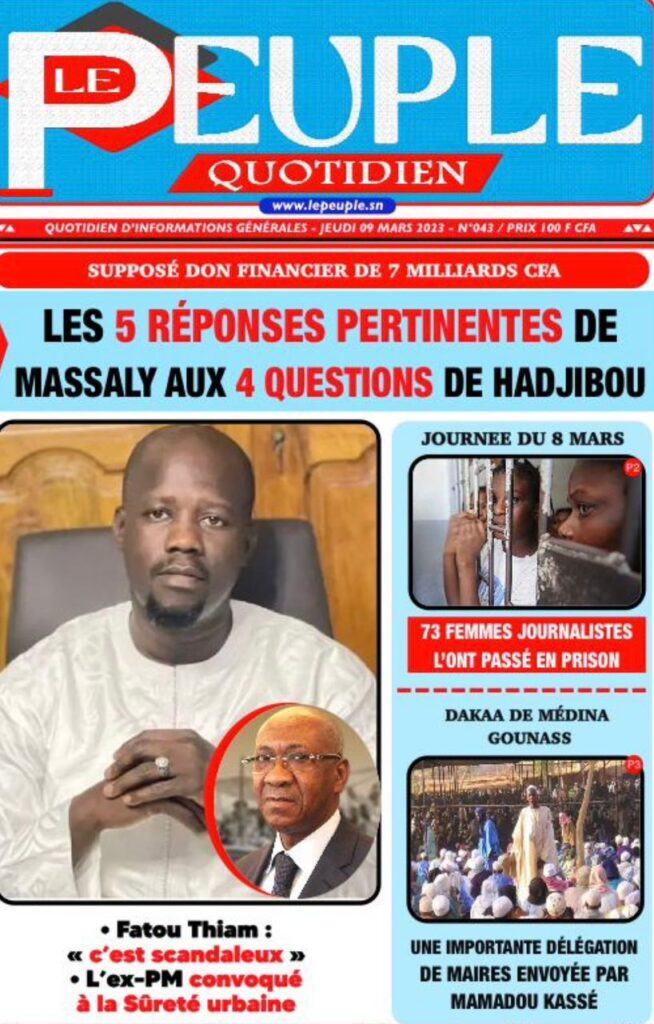 Accueil › Sénégal › Une des journaux du jeudi 09 mars 2023 Actualités Une des journaux du jeudi 09 mars 2023 Abdou Faty GUEYE 9 Mar 2023, 07:14 1 min Une des journaux du jeudi 09 mars 2023 jeudi 09 mars 2023 une des journaux Votre avis sera publié et visible par des milliers de lecteurs. Veuillez l’exprimer dans un langage respectueux. Commentaire Nom E-mail (ne sera pas visible) Enregistrer mon nom, mon e-mail et mon site web dans le navigateur pour mon prochain commentaire. Partager Partager Partager 0 Laisser un commentaire Annuler la réponseCommentaireNom E-mail (ne sera pas visible) Enregistrer mon nom, mon e-mail et mon site dans le navigateur pour mon prochain commentaire.