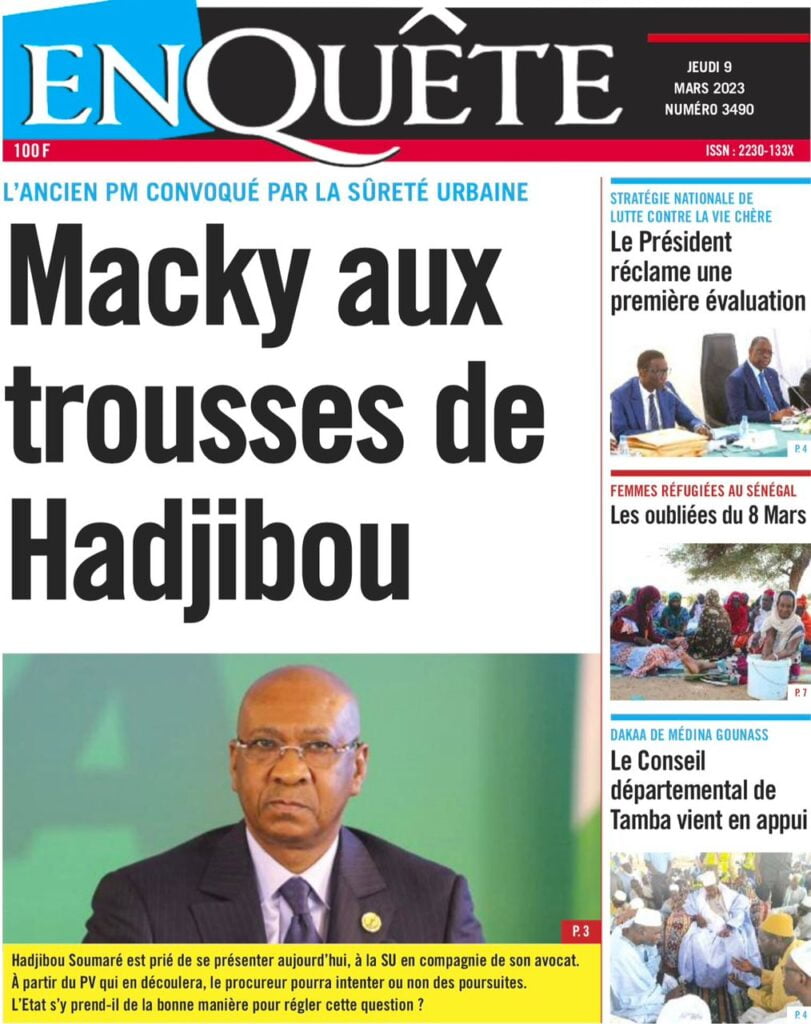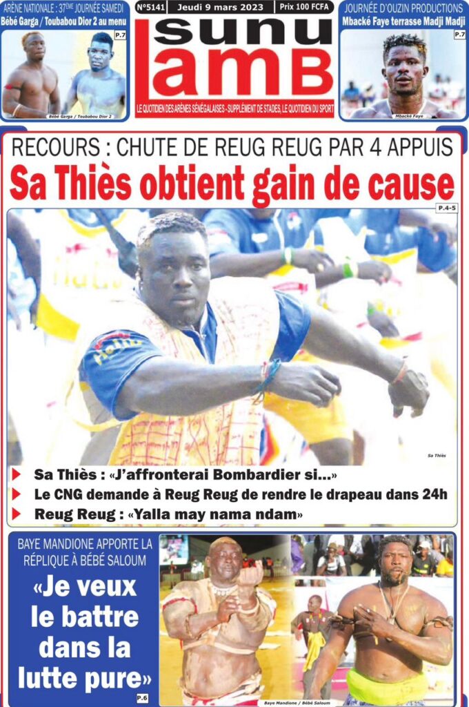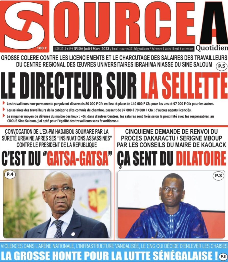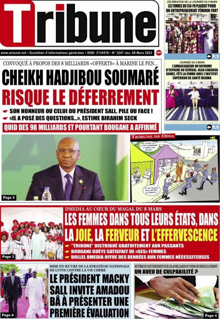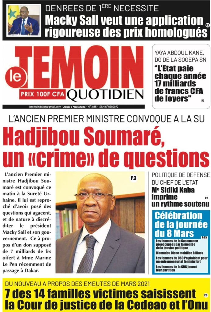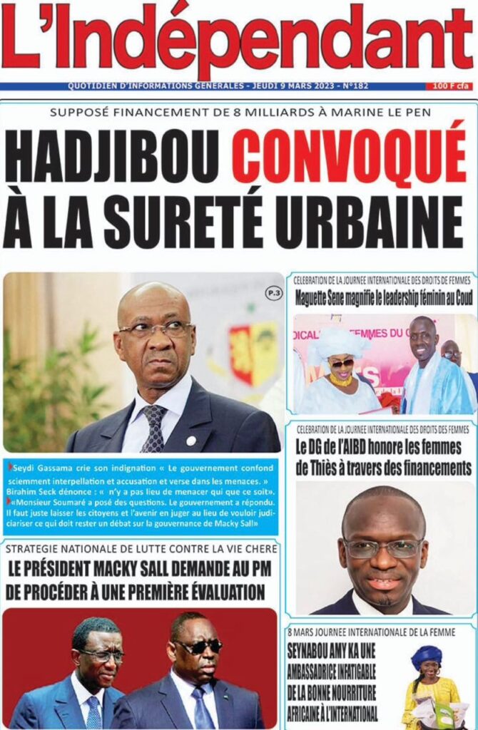 Accueil › Sénégal › Une des journaux du jeudi 09 mars 2023 Actualités Une des journaux du jeudi 09 mars 2023 Abdou Faty GUEYE 9 Mar 2023, 07:14 1 min Une des journaux du jeudi 09 mars 2023 jeudi 09 mars 2023 une des journaux Votre avis sera publié et visible par des milliers de lecteurs. Veuillez l’exprimer dans un langage respectueux. Commentaire Nom E-mail (ne sera pas visible) Enregistrer mon nom, mon e-mail et mon site web dans le navigateur pour mon prochain commentaire. Partager Partager Partager 0 Laisser un commentaire Annuler la réponseCommentaireNom E-mail (ne sera pas visible) Enregistrer mon nom, mon e-mail et mon site dans le navigateur pour mon prochain commentaire.
