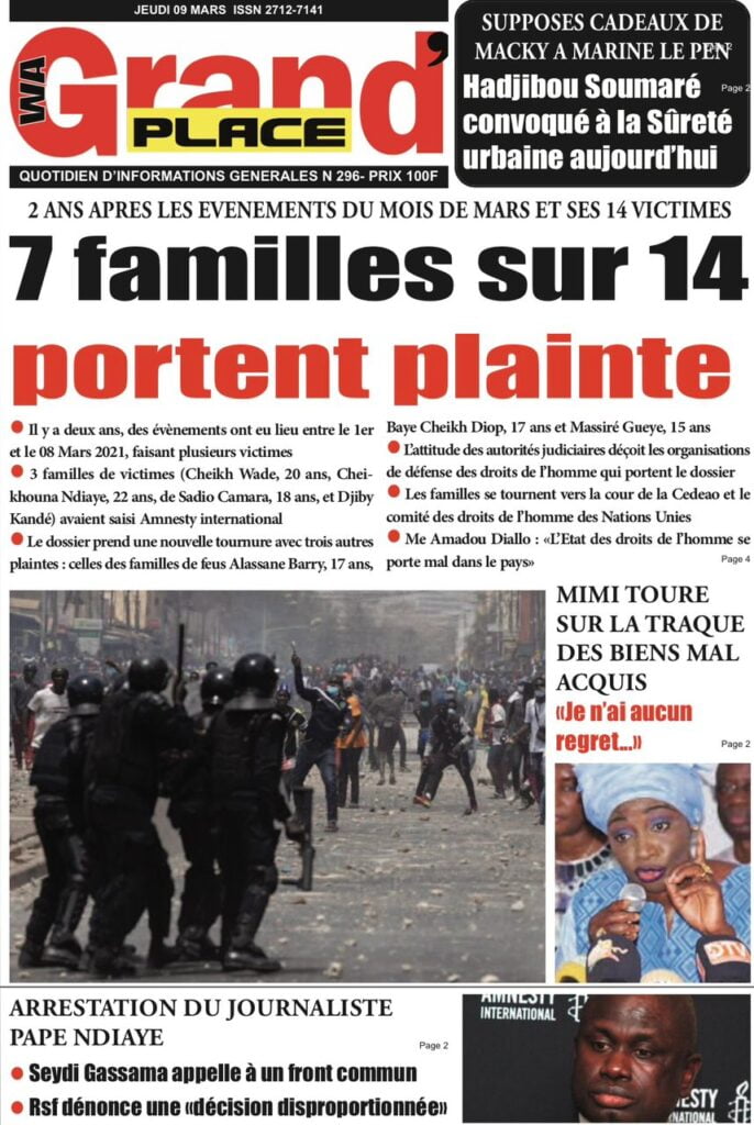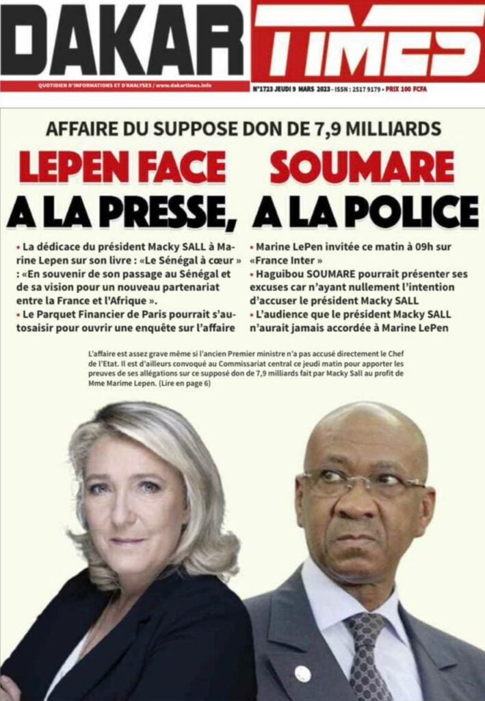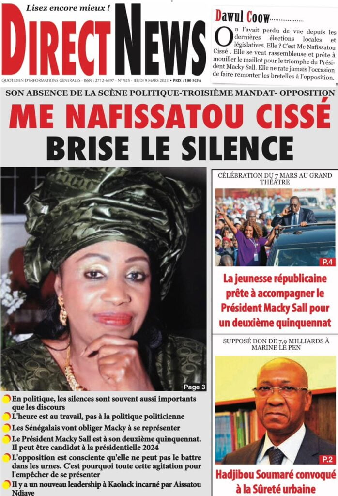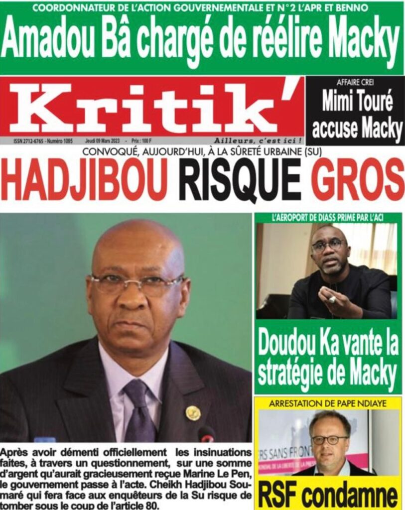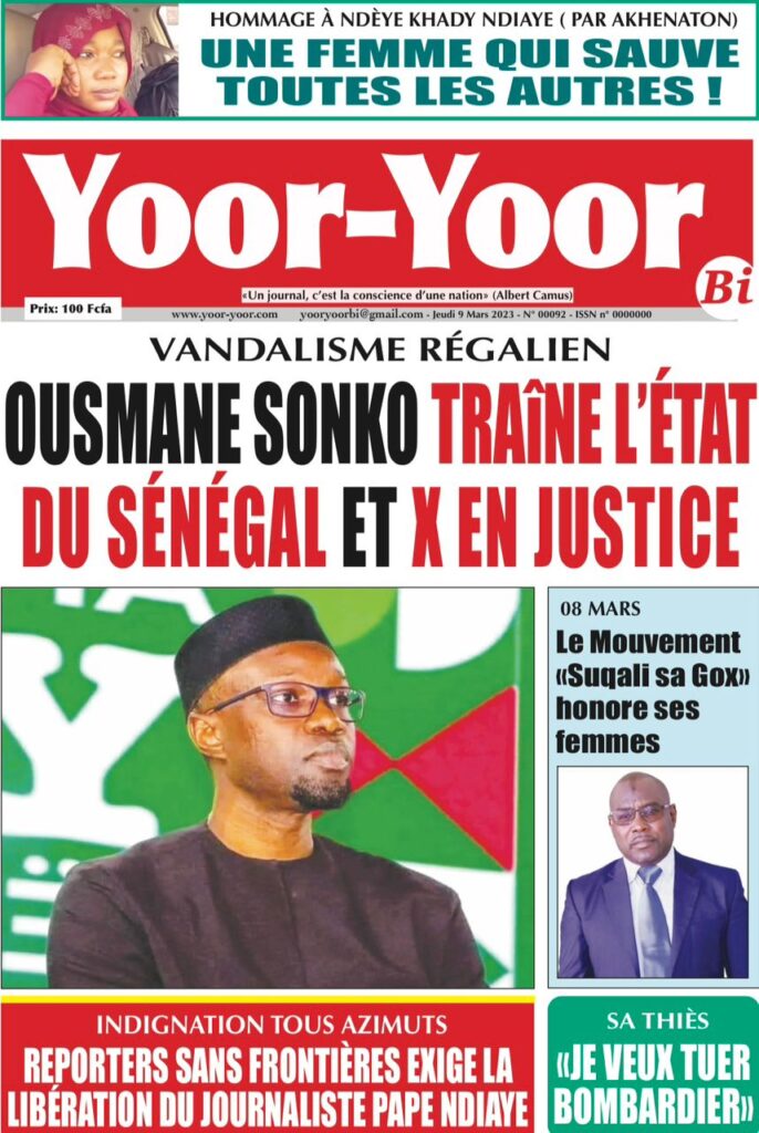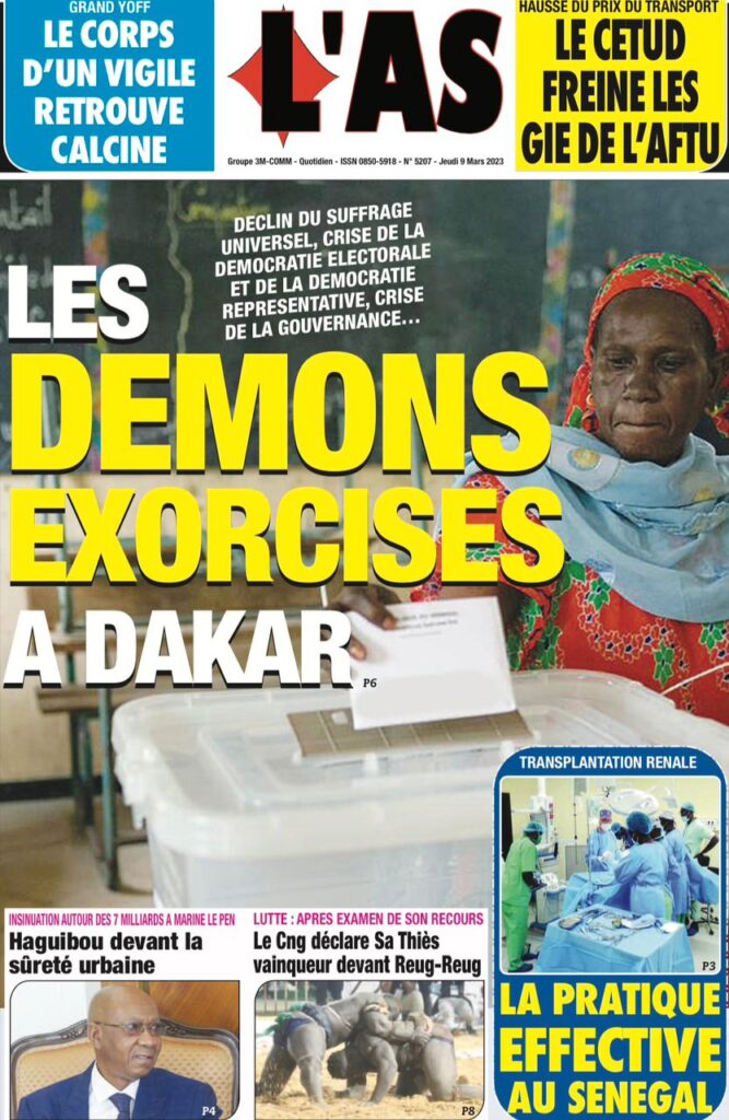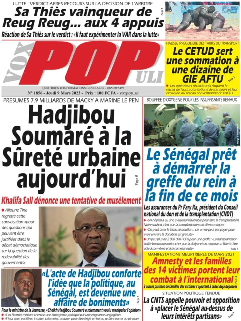 Accueil › Sénégal › Une des journaux du jeudi 09 mars 2023 Actualités Une des journaux du jeudi 09 mars 2023 Abdou Faty GUEYE 9 Mar 2023, 07:14 1 min Une des journaux du jeudi 09 mars 2023 jeudi 09 mars 2023 une des journaux Votre avis sera publié et visible par des milliers de lecteurs. Veuillez l’exprimer dans un langage respectueux. Commentaire Nom E-mail (ne sera pas visible) Enregistrer mon nom, mon e-mail et mon site web dans le navigateur pour mon prochain commentaire. Partager Partager Partager 0 Laisser un commentaire Annuler la réponseCommentaireNom E-mail (ne sera pas visible) Enregistrer mon nom, mon e-mail et mon site dans le navigateur pour mon prochain commentaire.