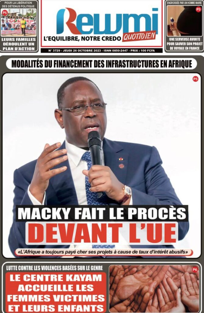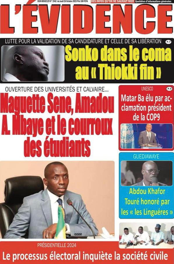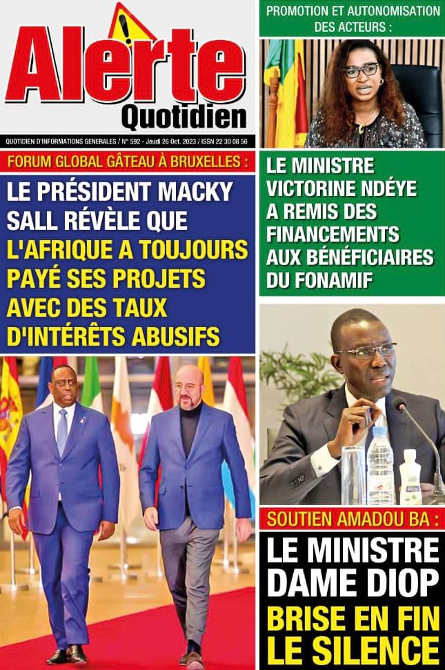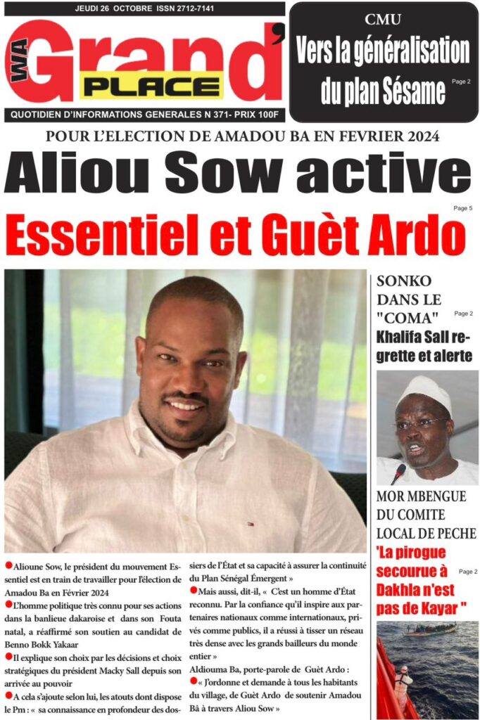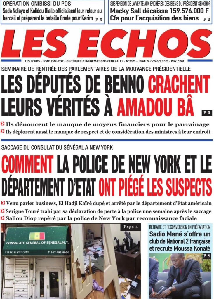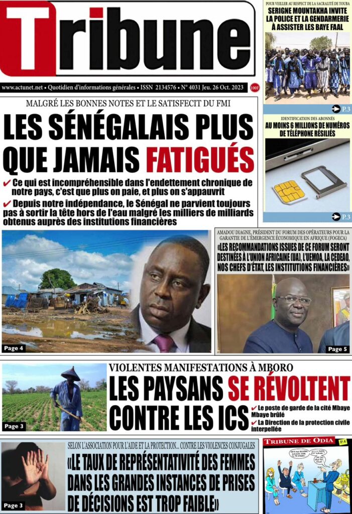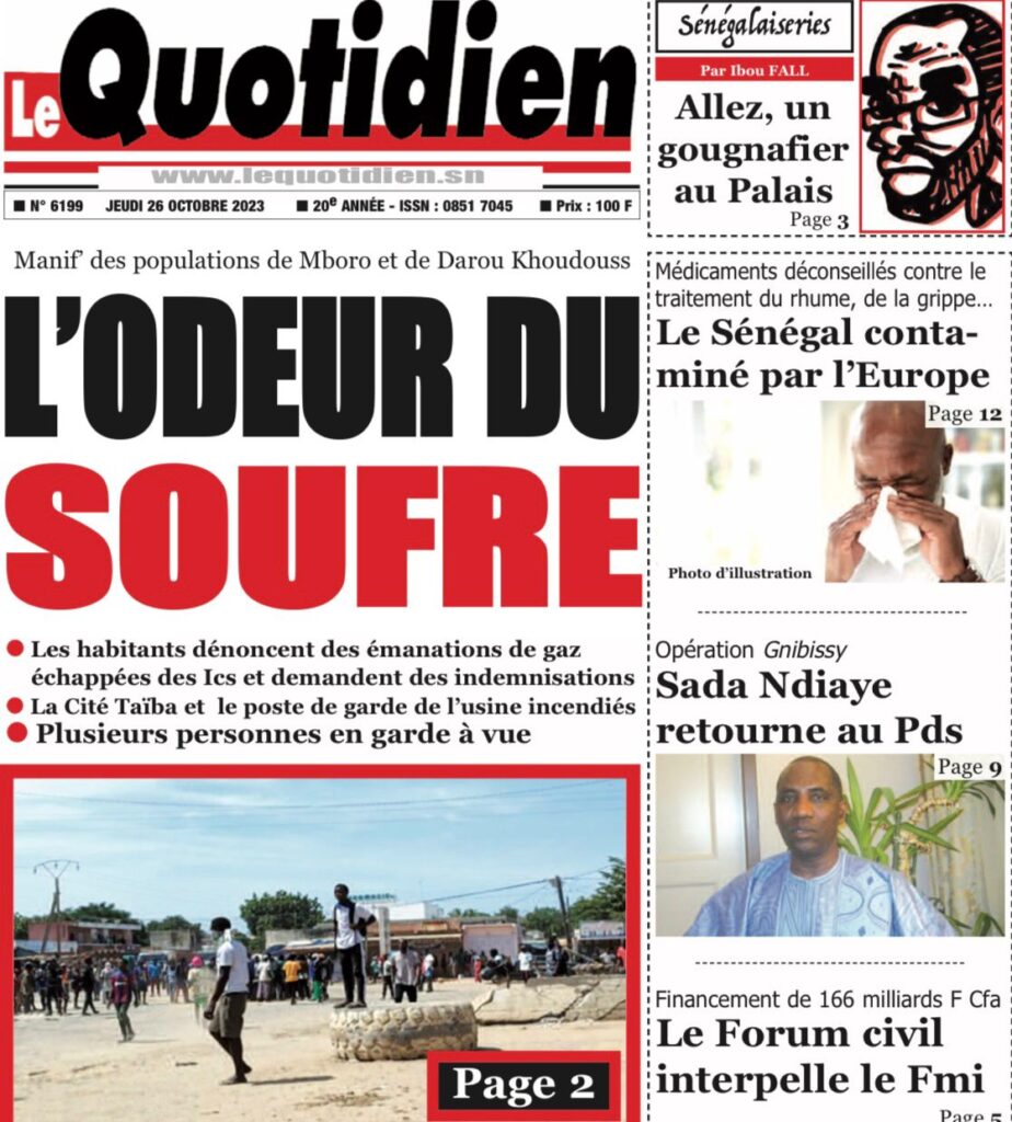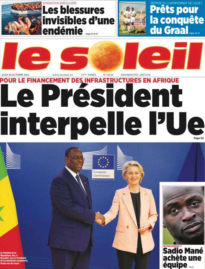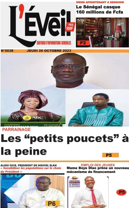 Accueil › Sénégal › Une des journaux du jeudi 26 octobre 2023 Une des journaux du jeudi 26 octobre 2023 Publié le 26 Oct 2023, à 07:03 par Abdou Faty GUEYE Votre avis sera publié et visible par des milliers de lecteurs. Veuillez l’exprimer dans un langage respectueux. Commentaire Nom E-mail (ne sera pas visible) Enregistrer mon nom, mon e-mail et mon site web dans le navigateur pour mon prochain commentaire. Partager Partager Partager 0 Laisser un commentaire Annuler la réponseCommentaireNom E-mail (ne sera pas visible) Enregistrer mon nom, mon e-mail et mon site dans le navigateur pour mon prochain commentaire.