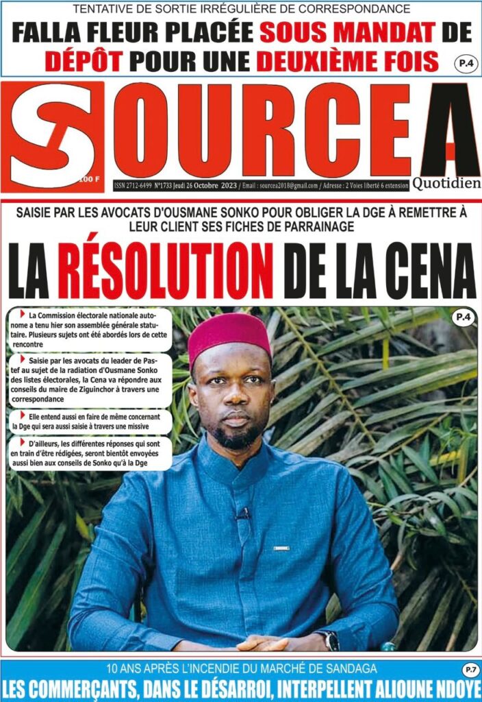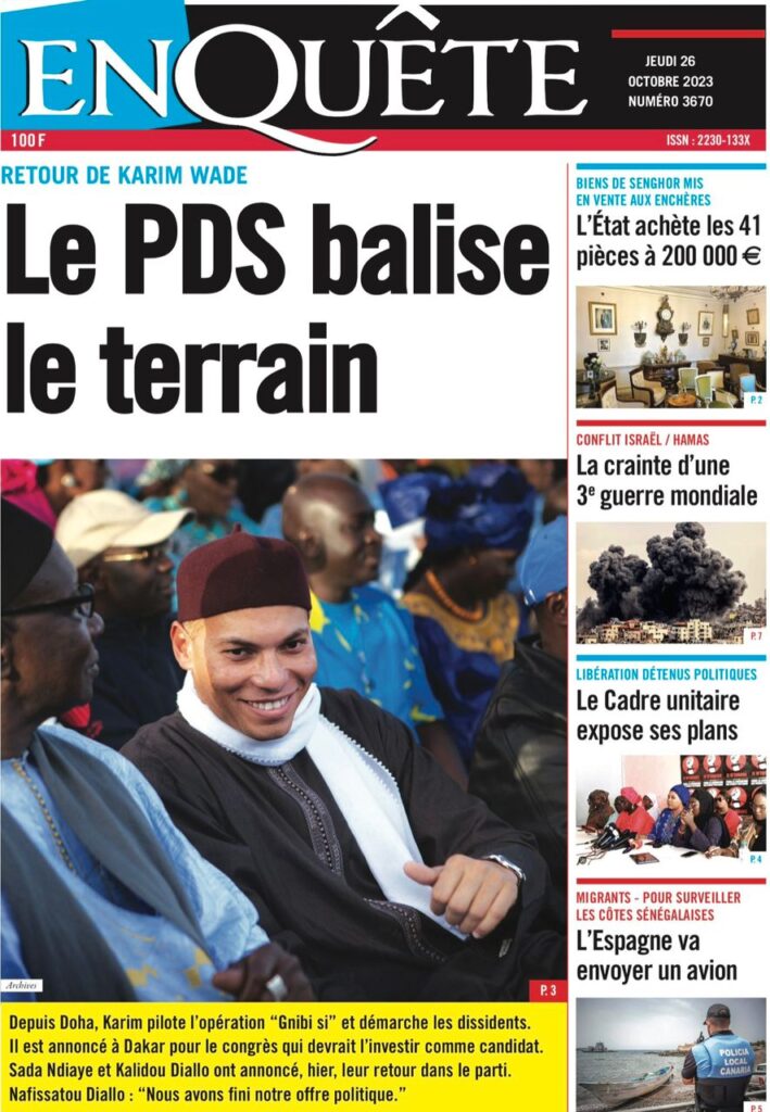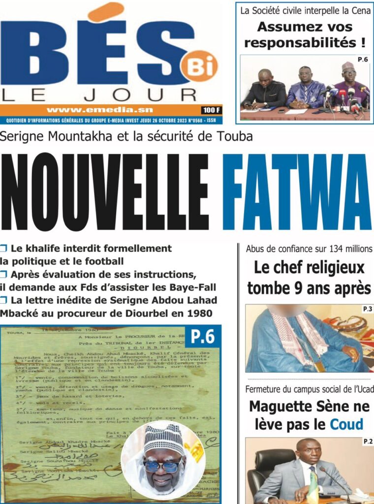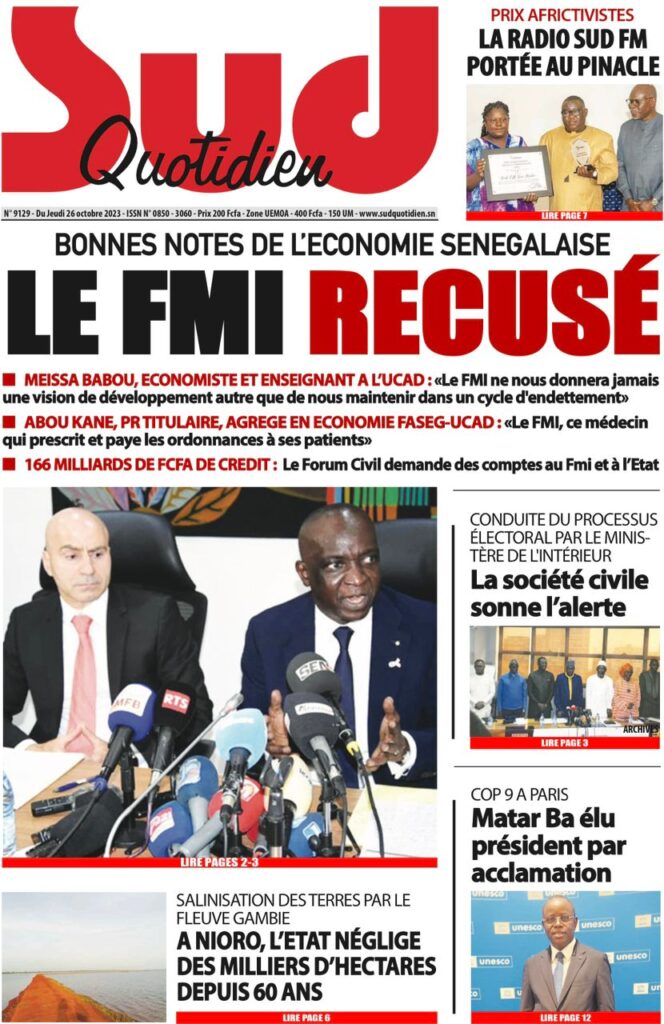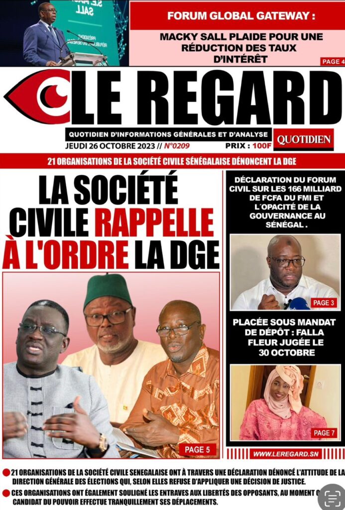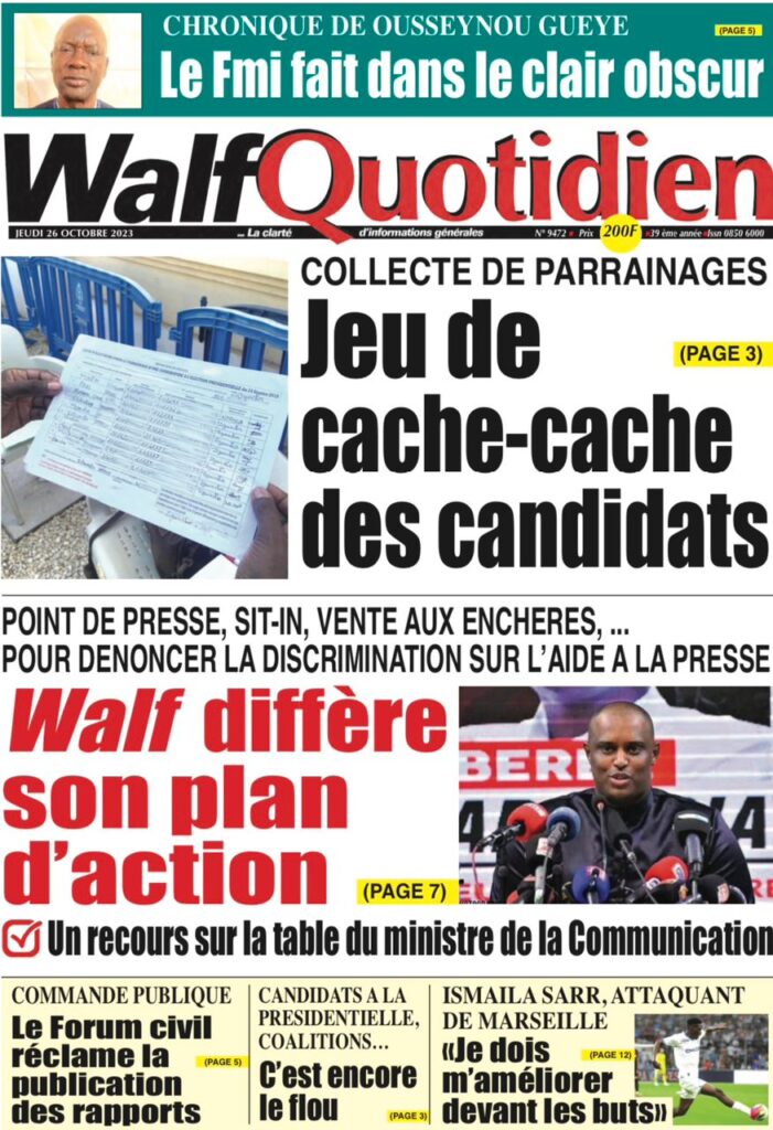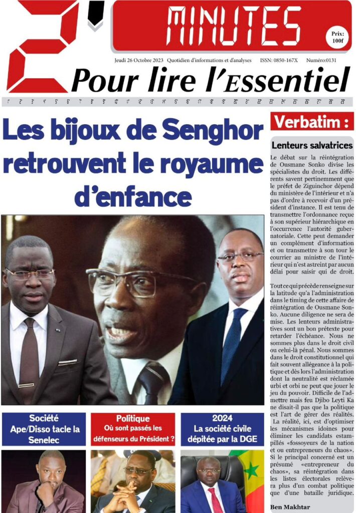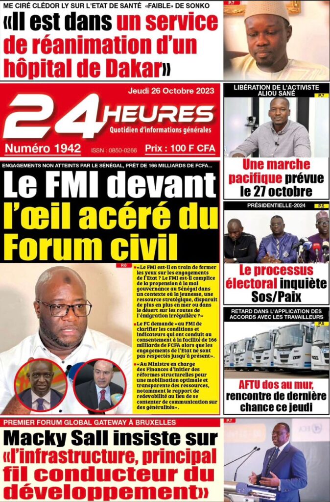 Accueil › Sénégal › Une des journaux du jeudi 26 octobre 2023 Une des journaux du jeudi 26 octobre 2023 Publié le 26 Oct 2023, à 07:03 par Abdou Faty GUEYE Votre avis sera publié et visible par des milliers de lecteurs. Veuillez l’exprimer dans un langage respectueux. Commentaire Nom E-mail (ne sera pas visible) Enregistrer mon nom, mon e-mail et mon site web dans le navigateur pour mon prochain commentaire. Partager Partager Partager 0 Laisser un commentaire Annuler la réponseCommentaireNom E-mail (ne sera pas visible) Enregistrer mon nom, mon e-mail et mon site dans le navigateur pour mon prochain commentaire.
