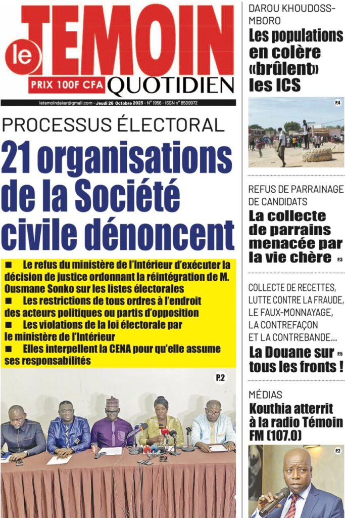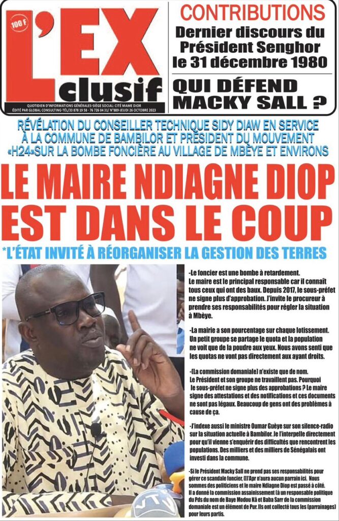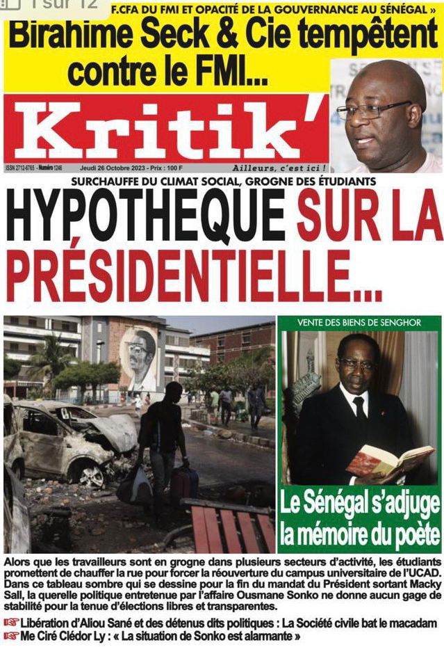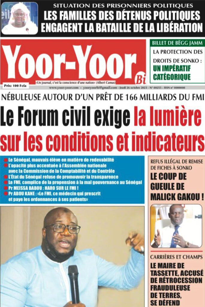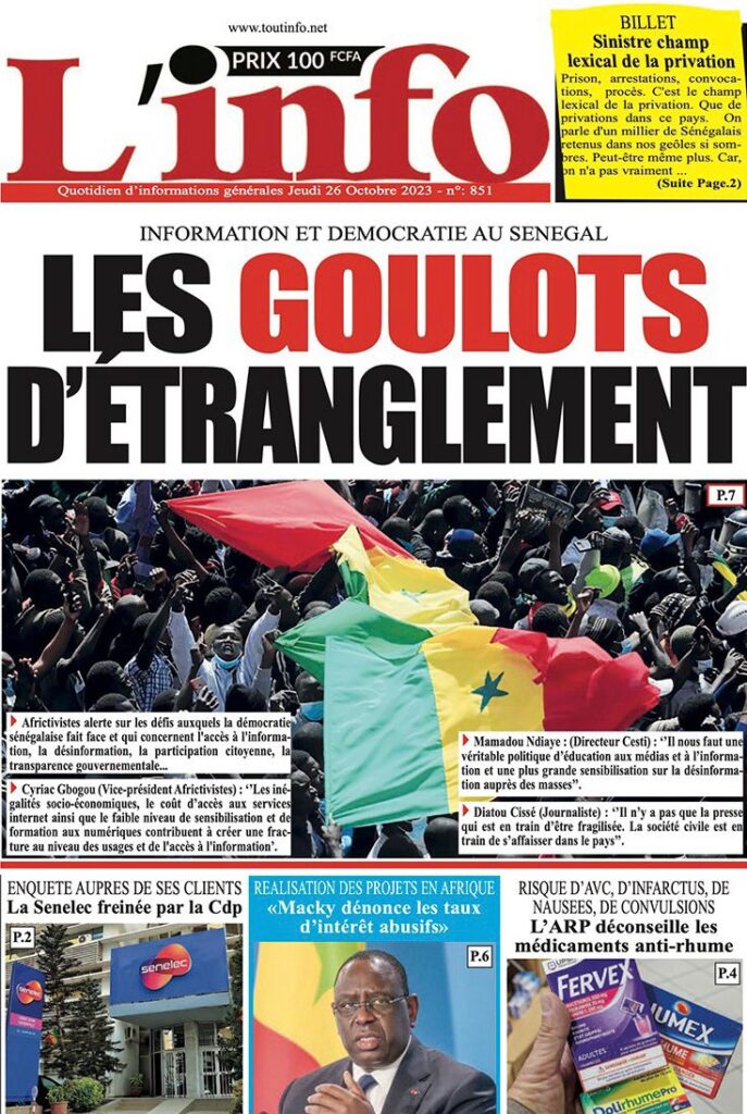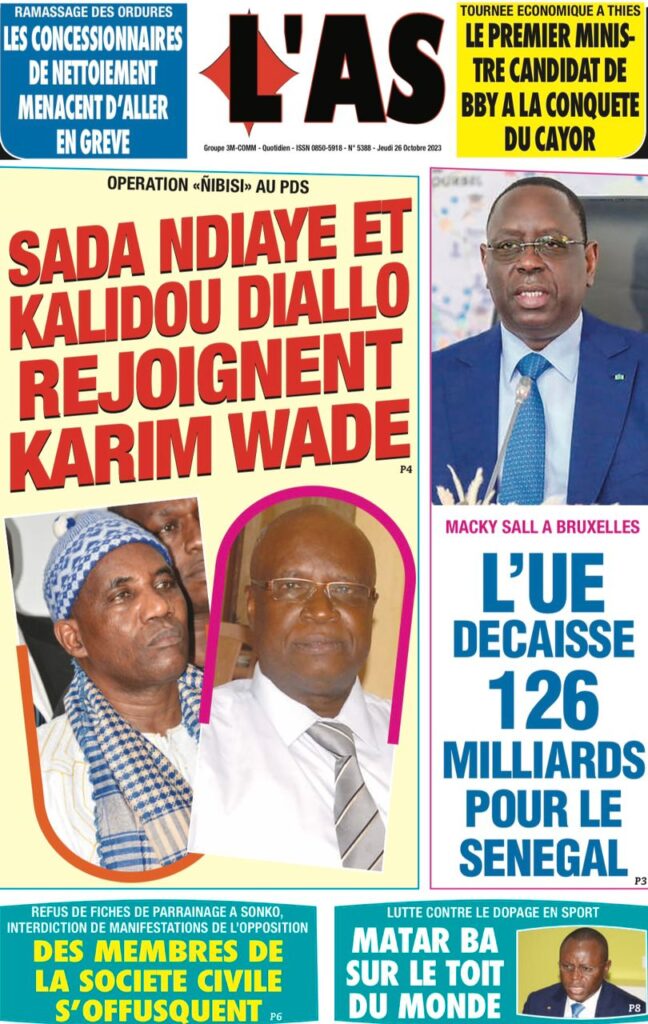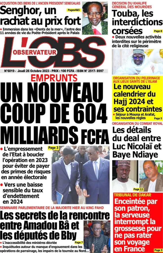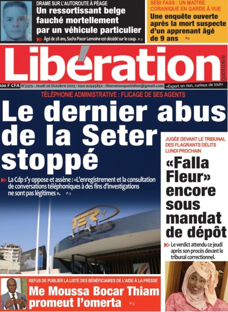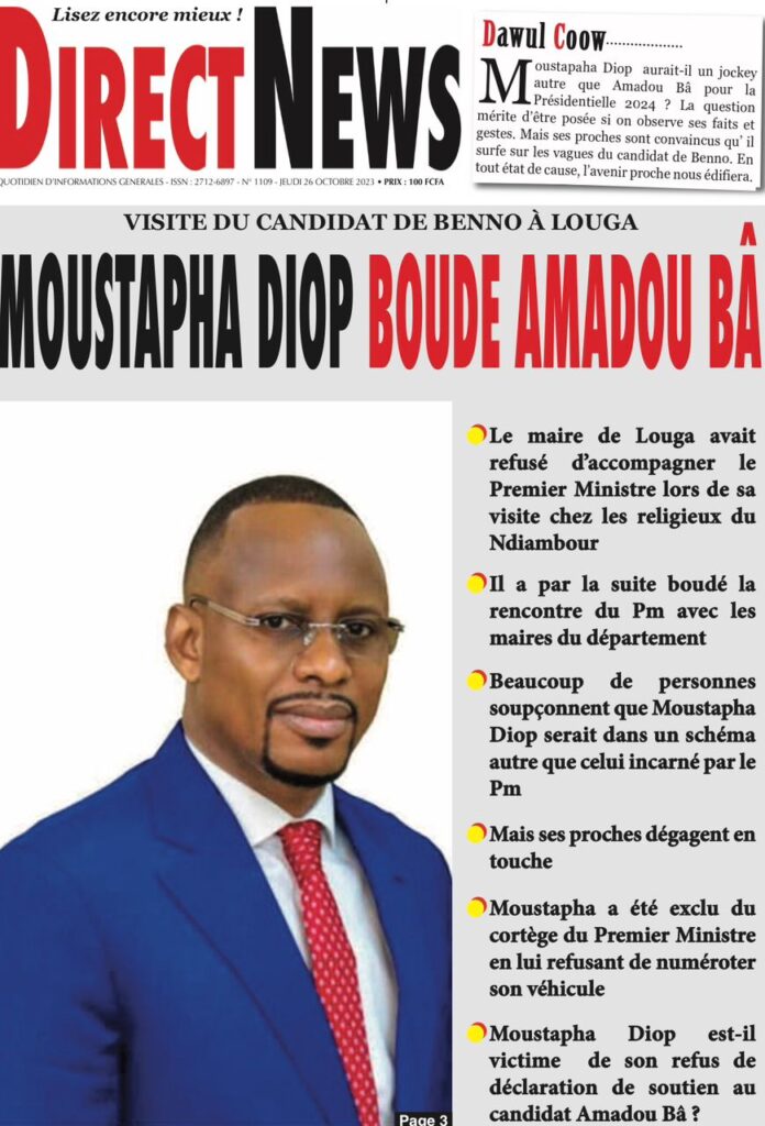 Accueil › Sénégal › Une des journaux du jeudi 26 octobre 2023 Une des journaux du jeudi 26 octobre 2023 Publié le 26 Oct 2023, à 07:03 par Abdou Faty GUEYE Votre avis sera publié et visible par des milliers de lecteurs. Veuillez l’exprimer dans un langage respectueux. Commentaire Nom E-mail (ne sera pas visible) Enregistrer mon nom, mon e-mail et mon site web dans le navigateur pour mon prochain commentaire. Partager Partager Partager 0 Laisser un commentaire Annuler la réponseCommentaireNom E-mail (ne sera pas visible) Enregistrer mon nom, mon e-mail et mon site dans le navigateur pour mon prochain commentaire.