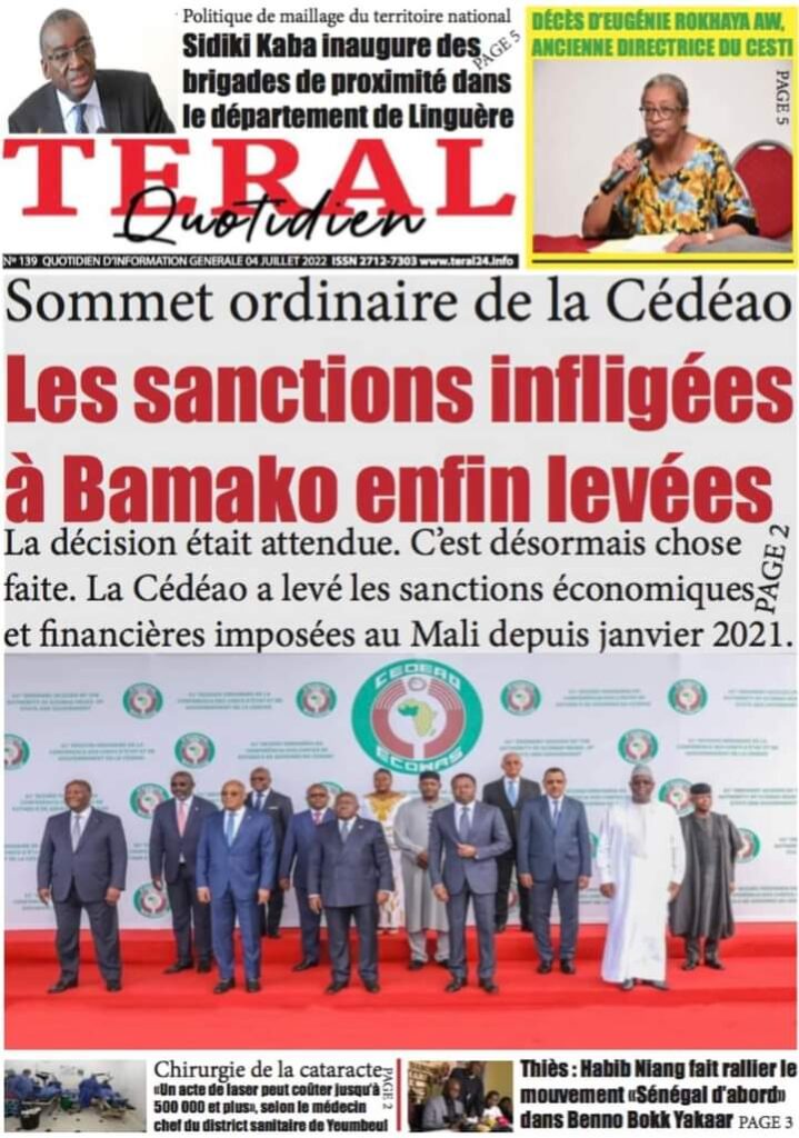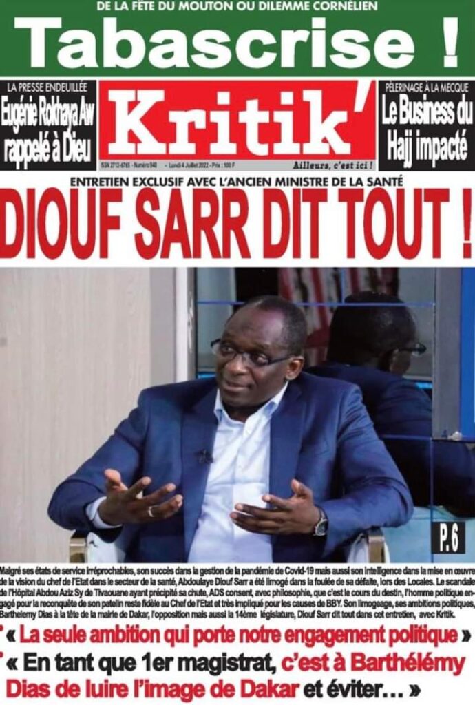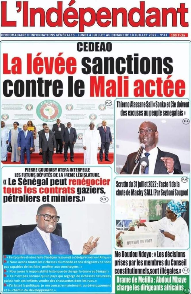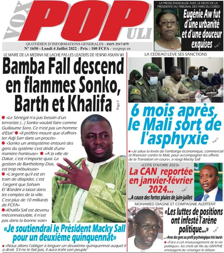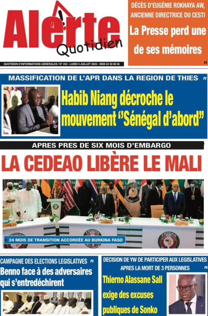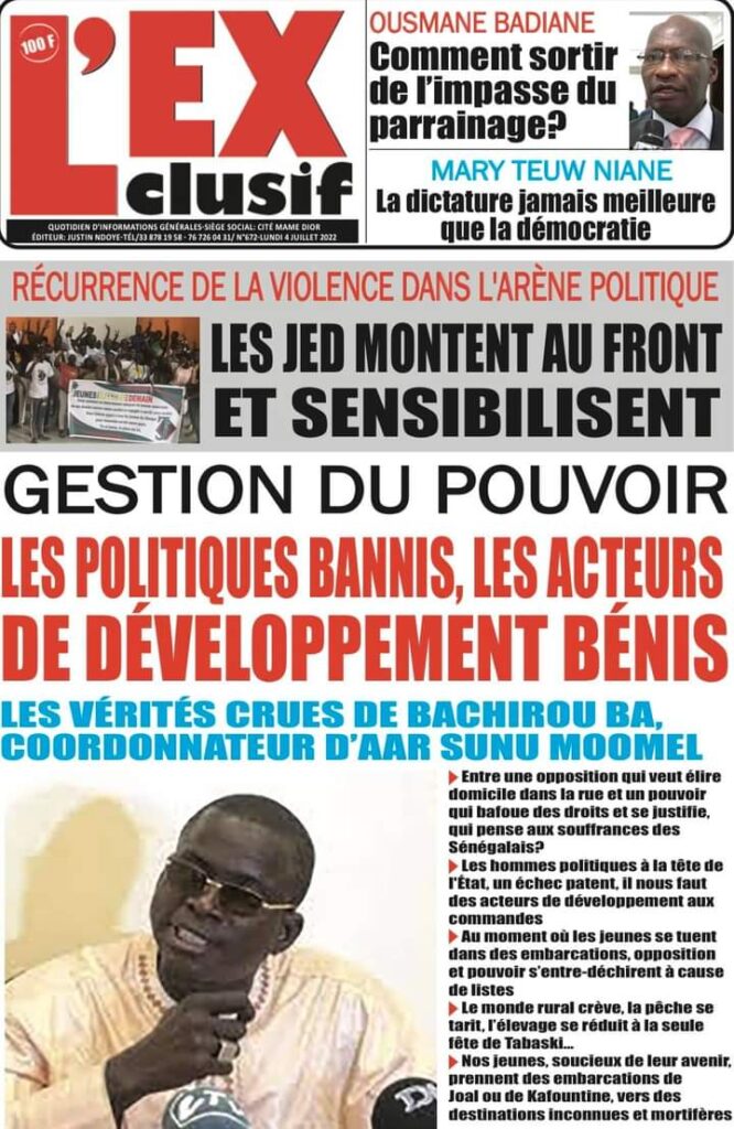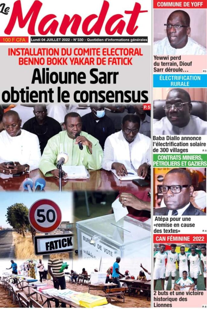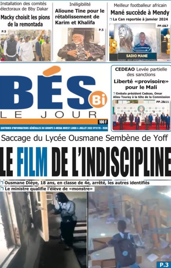 Accueil › Actualités › Revue de presse › Une des journaux du lundi 04 juillet 2022 Actualités Une des journaux du lundi 04 juillet 2022 Abdou Faty GUEYE 4 Juil 2022, 06:46 1 min Une des journaux du lundi 04 juillet 2022 Une des journaux du lundi 04 juillet 2022 Votre avis sera publié et visible par des milliers de lecteurs. Veuillez l’exprimer dans un langage respectueux. Commentaire Nom E-mail (ne sera pas visible) Enregistrer mon nom, mon e-mail et mon site web dans le navigateur pour mon prochain commentaire. Partager Partager Partager 0 Laisser un commentaire Annuler la réponseCommentaireNom E-mail (ne sera pas visible) Enregistrer mon nom, mon e-mail et mon site dans le navigateur pour mon prochain commentaire.