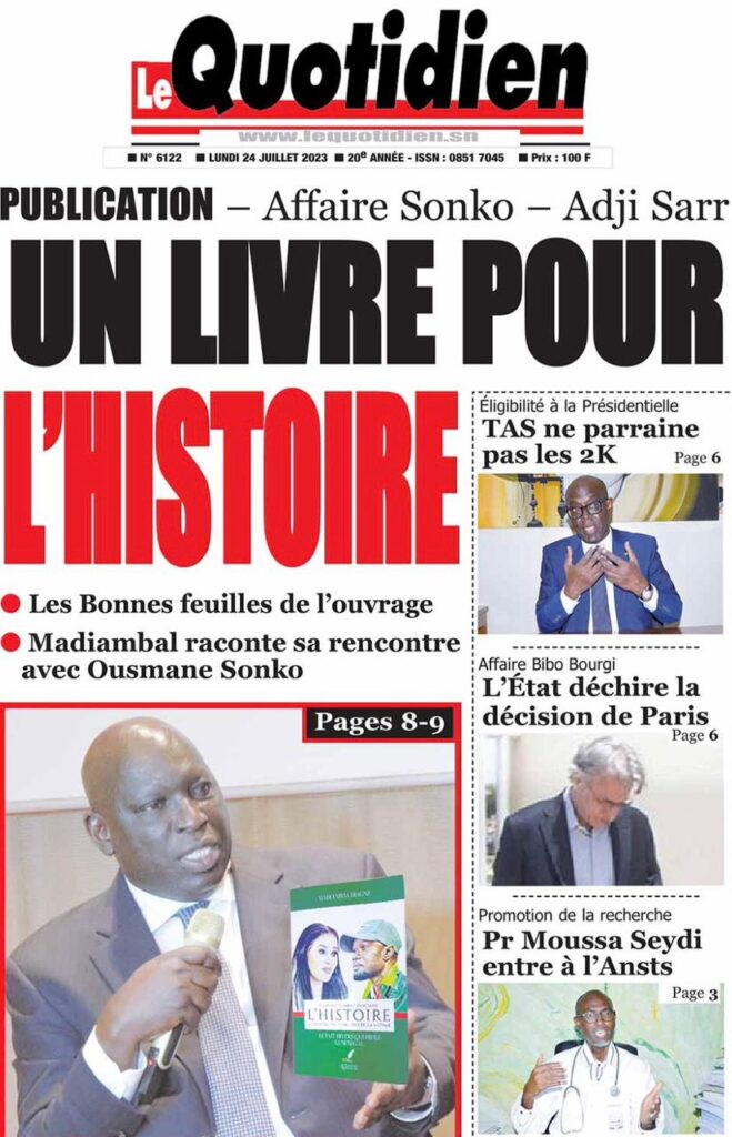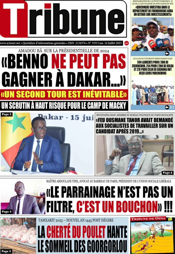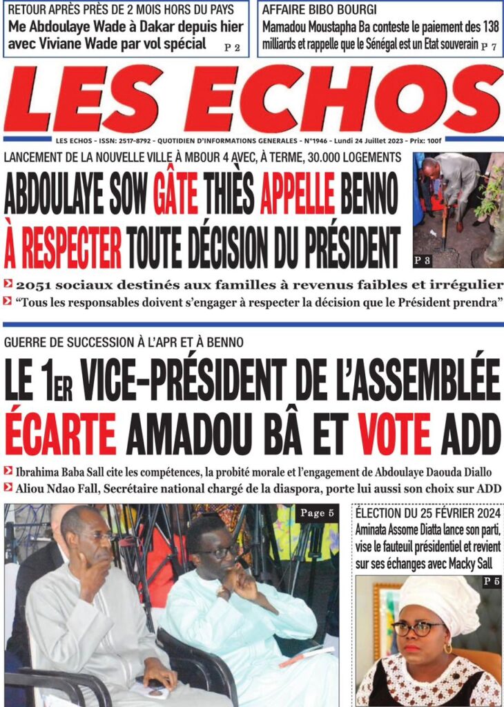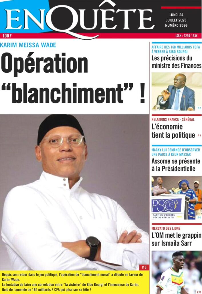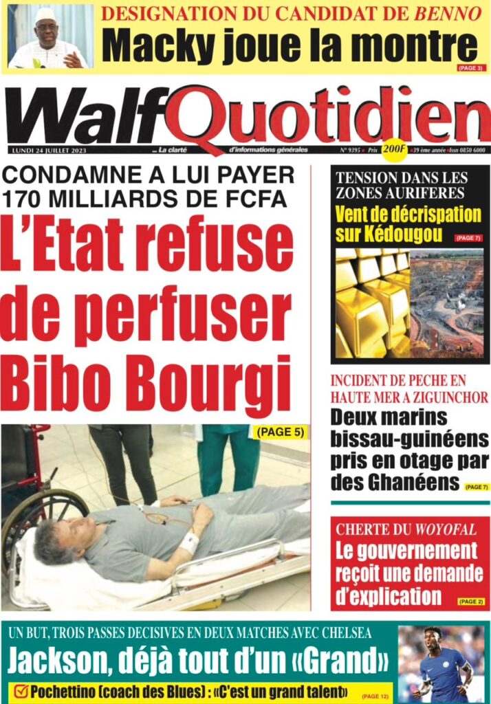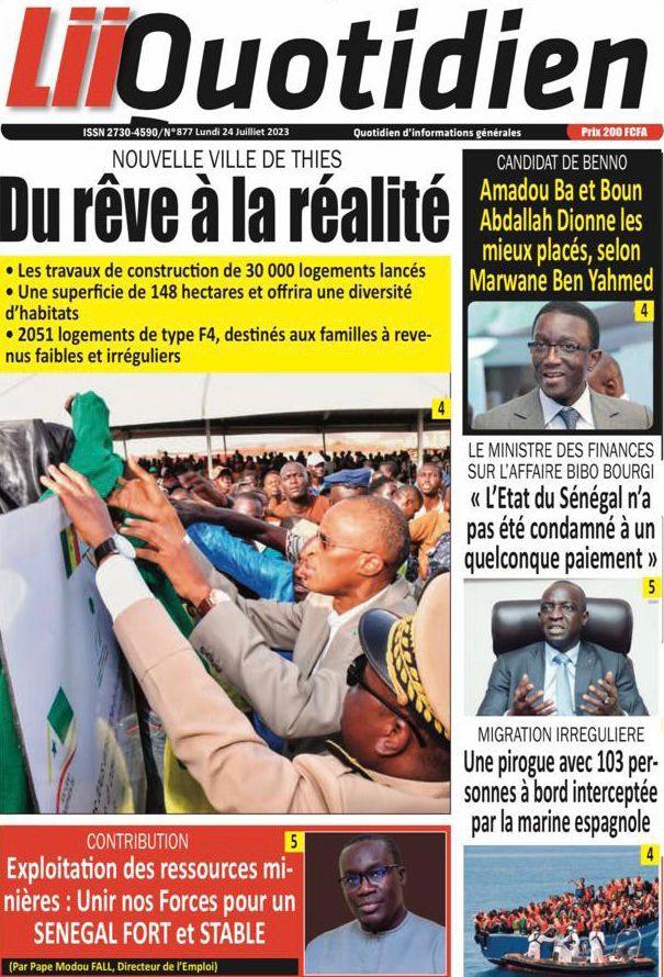 Accueil › Sénégal › Une des journaux du lundi 24 juillet 2023 Actualités Une des journaux du lundi 24 juillet 2023 Abdou Faty GUEYE 24 Juil 2023, 07:26 1 min lundi 24 juillet 2023 une des journaux Votre avis sera publié et visible par des milliers de lecteurs. Veuillez l’exprimer dans un langage respectueux. Commentaire Nom E-mail (ne sera pas visible) Enregistrer mon nom, mon e-mail et mon site web dans le navigateur pour mon prochain commentaire. Partager Partager Partager 0 Laisser un commentaire Annuler la réponseCommentaireNom E-mail (ne sera pas visible) Enregistrer mon nom, mon e-mail et mon site dans le navigateur pour mon prochain commentaire.