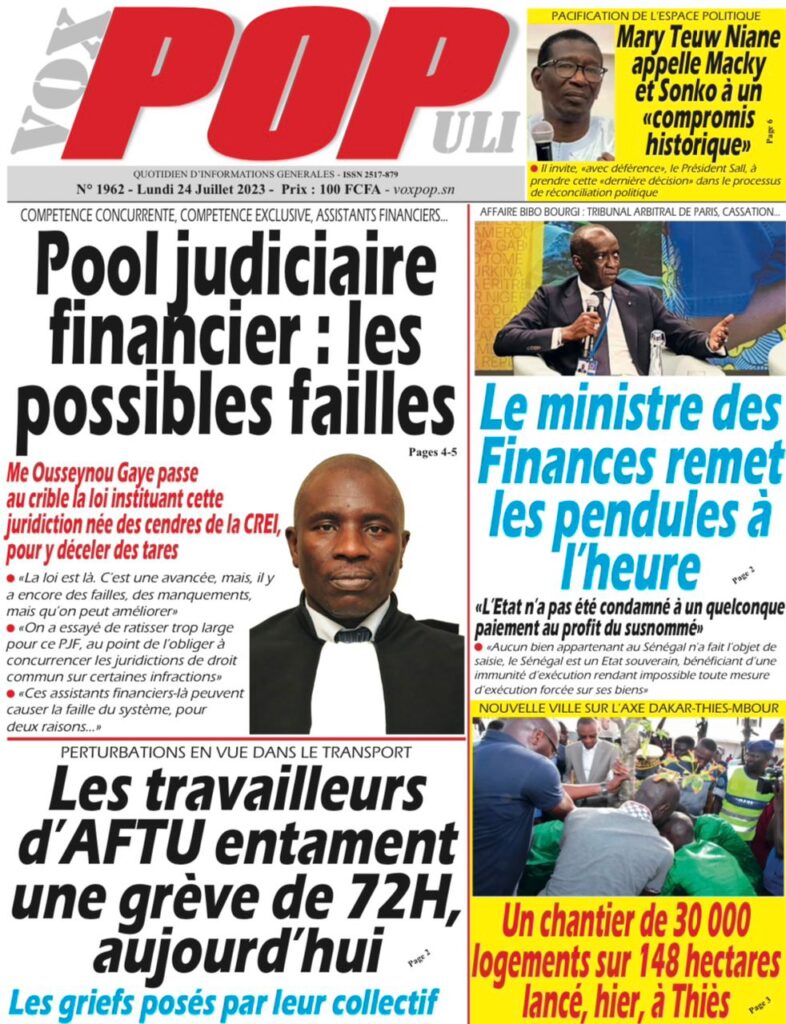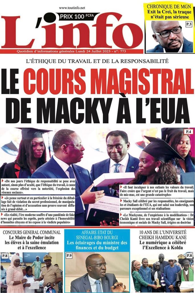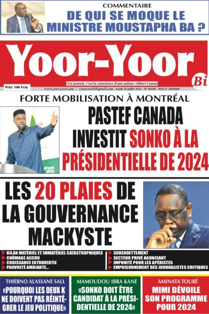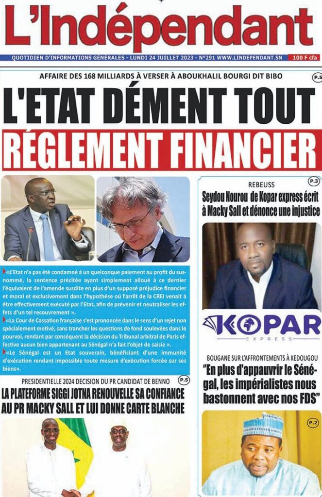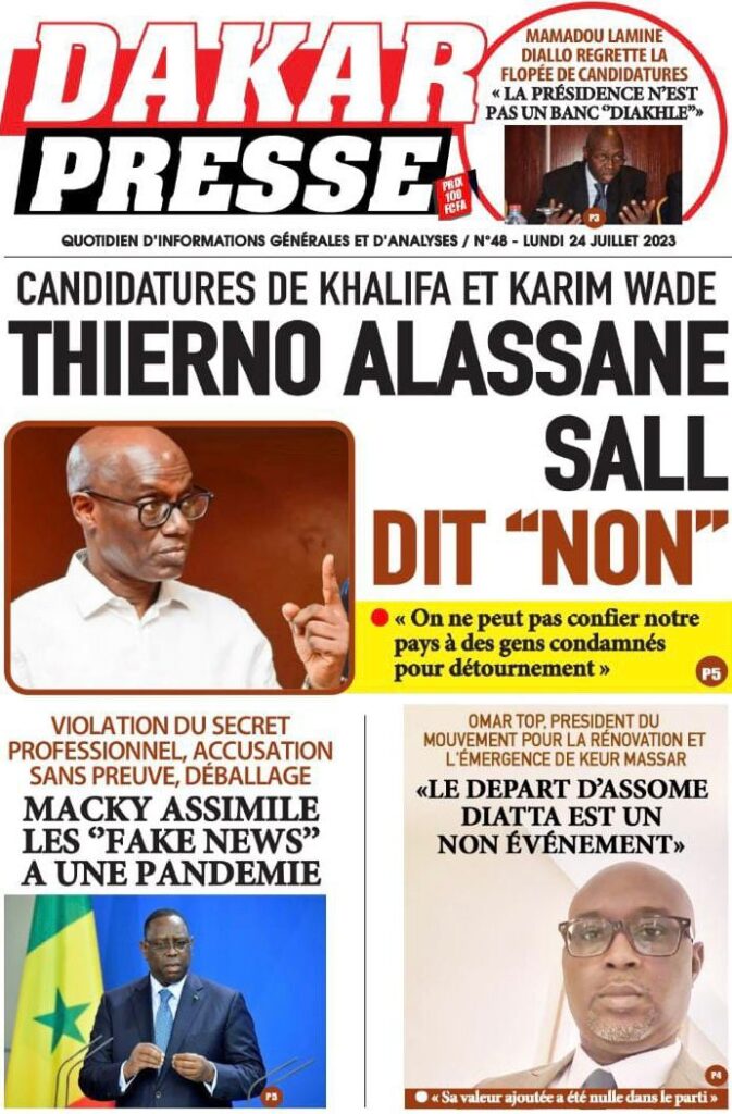 Accueil › Sénégal › Une des journaux du lundi 24 juillet 2023 Actualités Une des journaux du lundi 24 juillet 2023 Abdou Faty GUEYE 24 Juil 2023, 07:26 1 min lundi 24 juillet 2023 une des journaux Votre avis sera publié et visible par des milliers de lecteurs. Veuillez l’exprimer dans un langage respectueux. Commentaire Nom E-mail (ne sera pas visible) Enregistrer mon nom, mon e-mail et mon site web dans le navigateur pour mon prochain commentaire. Partager Partager Partager 0 Laisser un commentaire Annuler la réponseCommentaireNom E-mail (ne sera pas visible) Enregistrer mon nom, mon e-mail et mon site dans le navigateur pour mon prochain commentaire.
