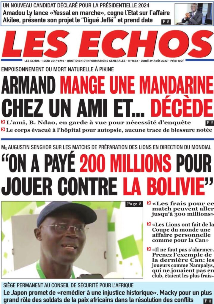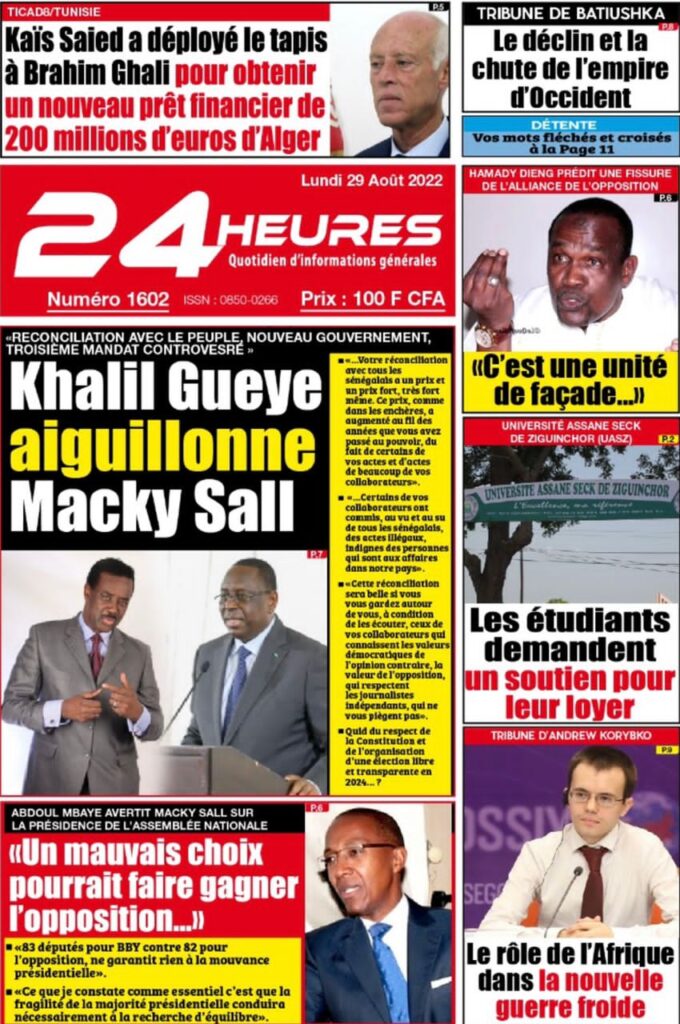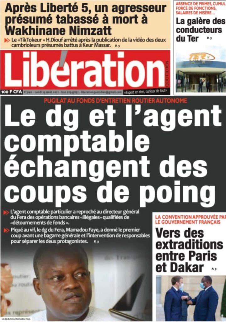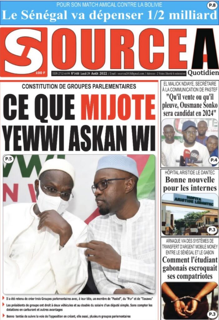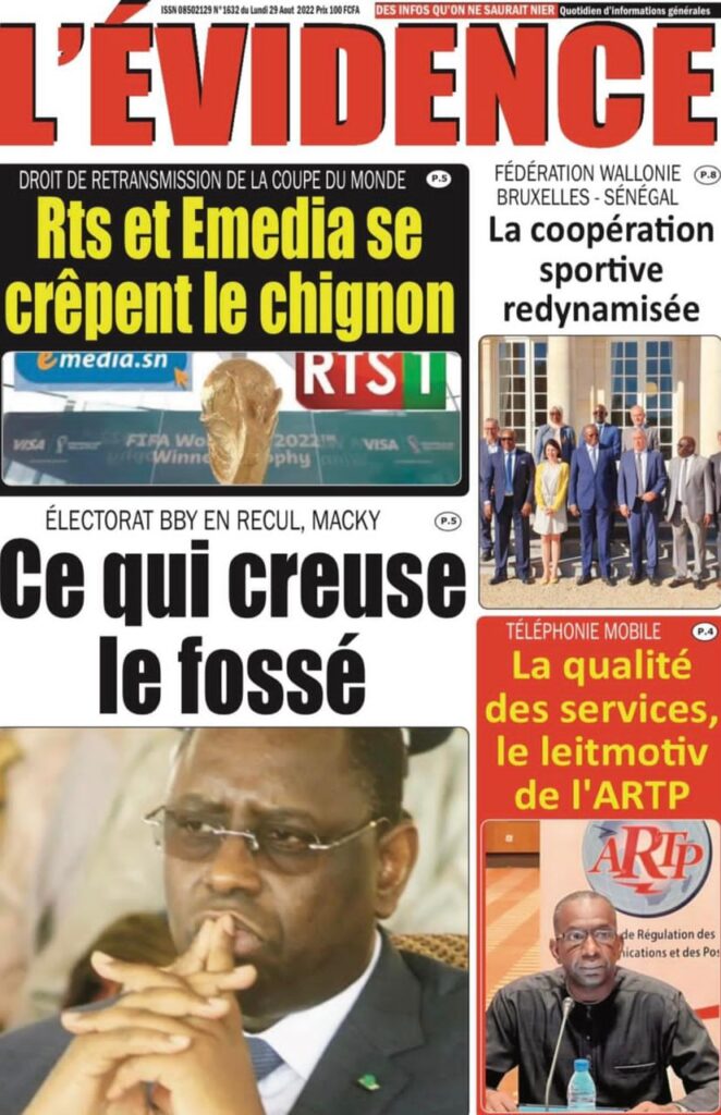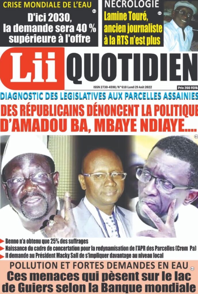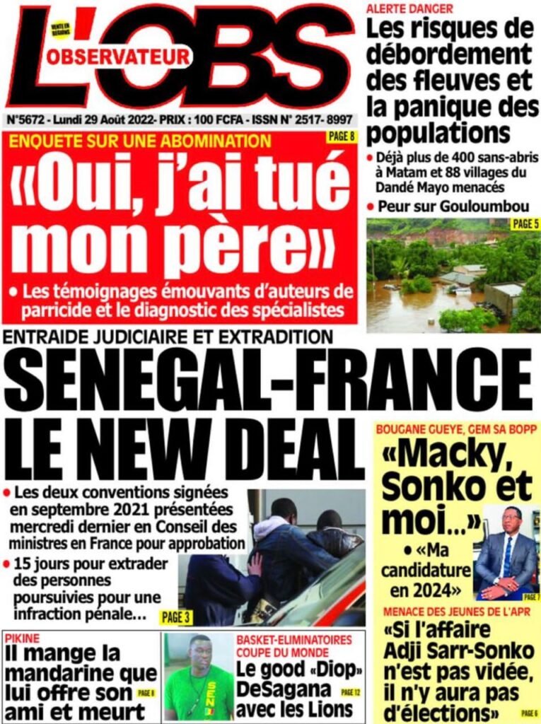 Accueil › Sénégal › Une des journaux du lundi 29 août 2022 Actualités Une des journaux du lundi 29 août 2022 Abdou Faty GUEYE 29 Août 2022, 07:25 1 min Une des journaux du lundi 29 août 2022 lundi 29 août 2022 une des journaux Votre avis sera publié et visible par des milliers de lecteurs. Veuillez l’exprimer dans un langage respectueux. Commentaire Nom E-mail (ne sera pas visible) Enregistrer mon nom, mon e-mail et mon site web dans le navigateur pour mon prochain commentaire. Partager Partager Partager 0 Laisser un commentaire Annuler la réponseCommentaireNom E-mail (ne sera pas visible) Enregistrer mon nom, mon e-mail et mon site dans le navigateur pour mon prochain commentaire.