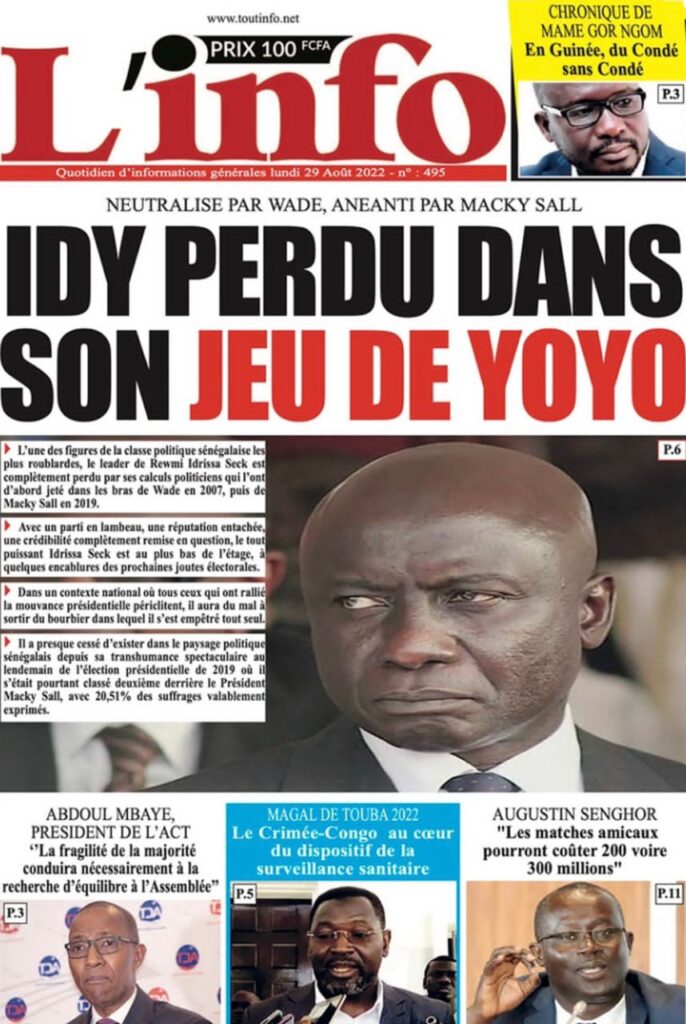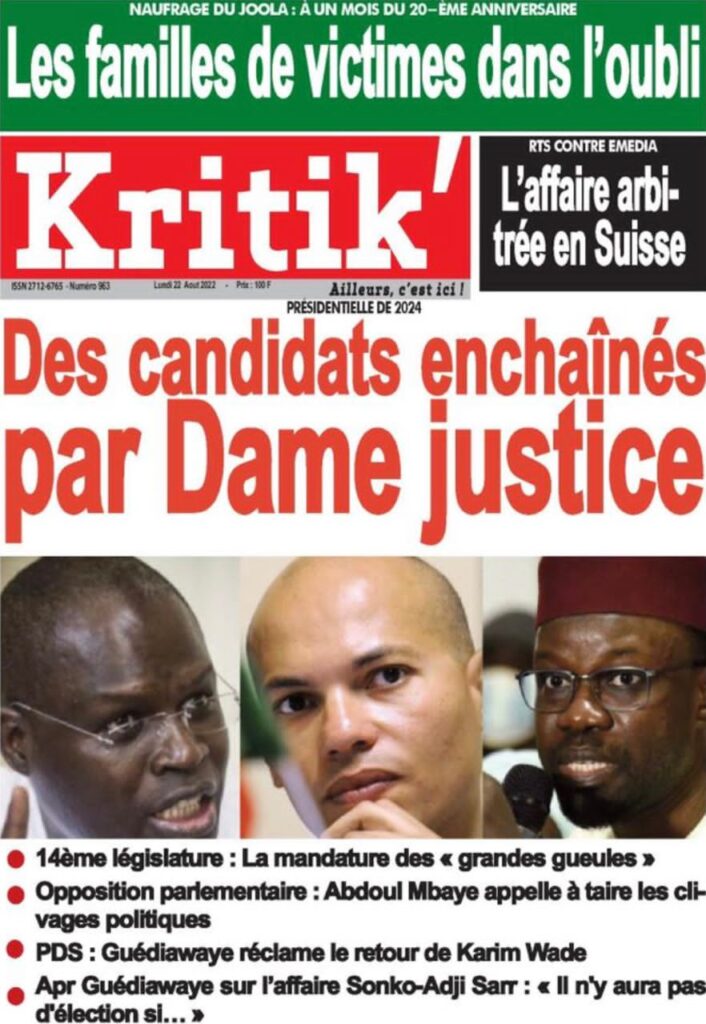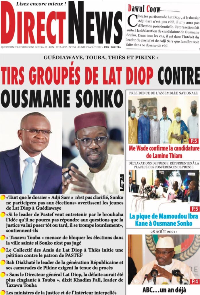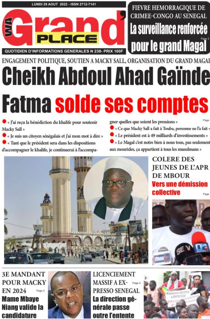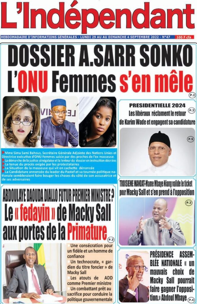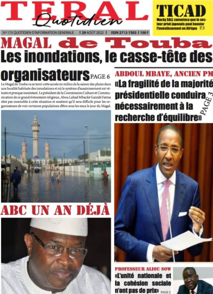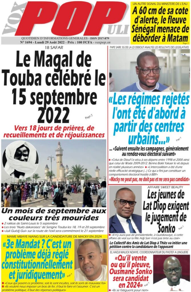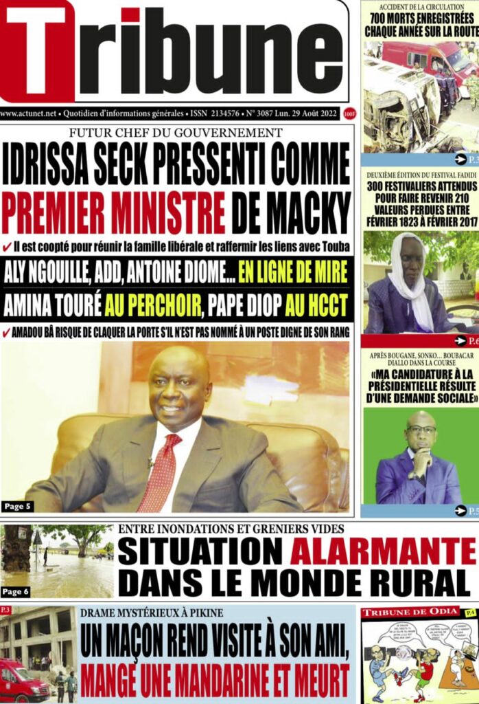 Accueil › Sénégal › Une des journaux du lundi 29 août 2022 Actualités Une des journaux du lundi 29 août 2022 Abdou Faty GUEYE 29 Août 2022, 07:25 1 min Une des journaux du lundi 29 août 2022 lundi 29 août 2022 une des journaux Votre avis sera publié et visible par des milliers de lecteurs. Veuillez l’exprimer dans un langage respectueux. Commentaire Nom E-mail (ne sera pas visible) Enregistrer mon nom, mon e-mail et mon site web dans le navigateur pour mon prochain commentaire. Partager Partager Partager 0 Laisser un commentaire Annuler la réponseCommentaireNom E-mail (ne sera pas visible) Enregistrer mon nom, mon e-mail et mon site dans le navigateur pour mon prochain commentaire.