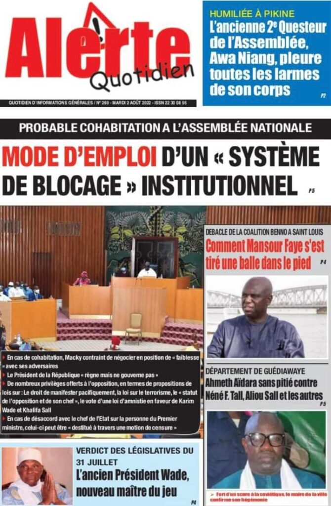 Accueil › Sénégal › Une des journaux du mardi 02 août 2022 Une des journaux du mardi 02 août 2022 Publié le 2 Août 2022, à 07:57 par Abdou Faty GUEYE Une des journaux du mardi 02 août 2022 Votre avis sera publié et visible par des milliers de lecteurs. Veuillez l’exprimer dans un langage respectueux. Commentaire Nom E-mail (ne sera pas visible) Enregistrer mon nom, mon e-mail et mon site web dans le navigateur pour mon prochain commentaire. Partager Partager Partager 0 Laisser un commentaire Annuler la réponseCommentaireNom E-mail (ne sera pas visible) Enregistrer mon nom, mon e-mail et mon site dans le navigateur pour mon prochain commentaire.