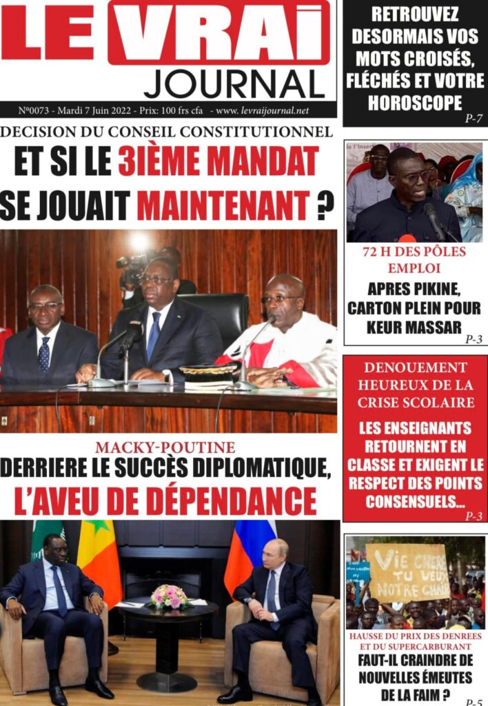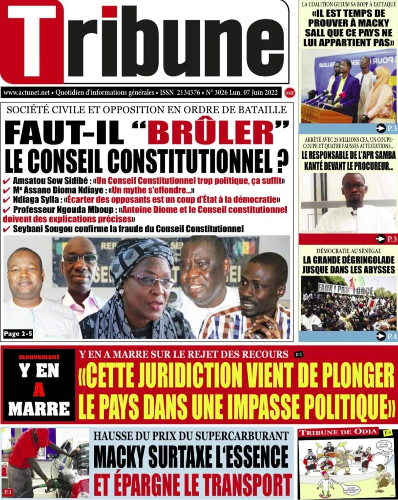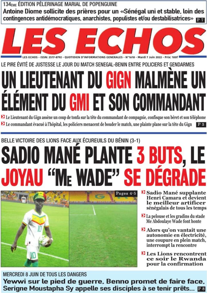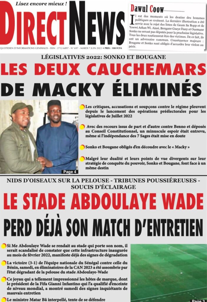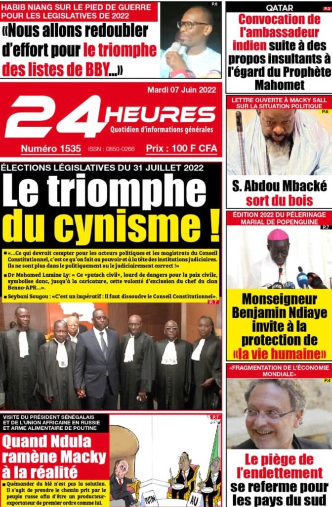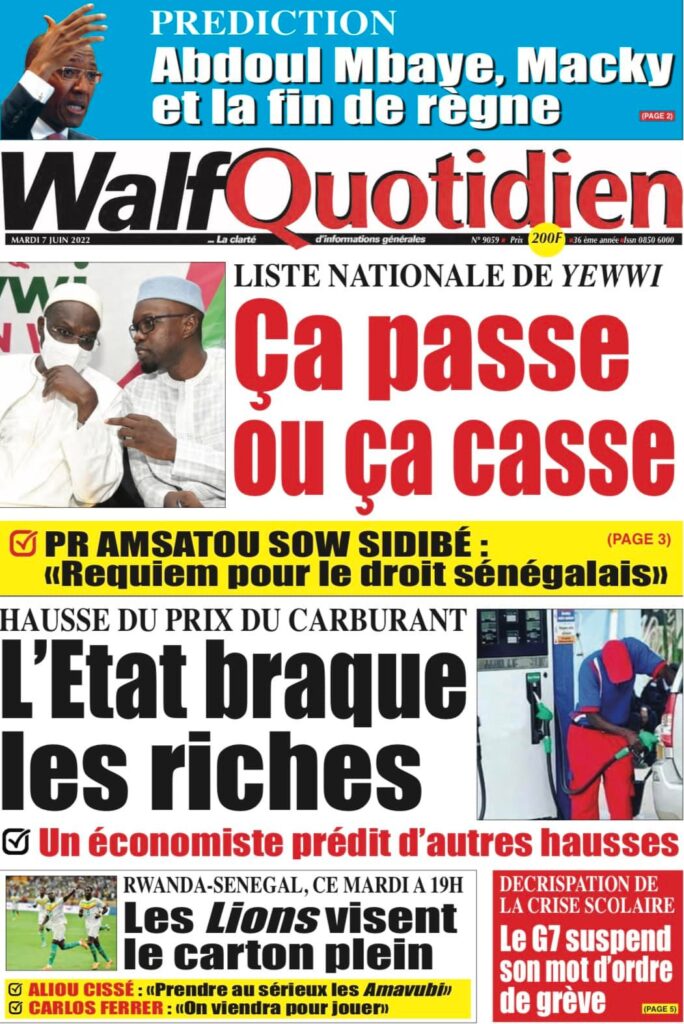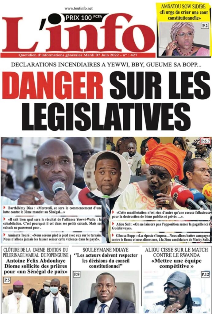 Accueil › Sénégal › Une des journaux du mardi 07 juin 2022 Une des journaux du mardi 07 juin 2022 Publié le 7 Juin 2022, à 07:07 par Abdou Faty GUEYE Votre avis sera publié et visible par des milliers de lecteurs. Veuillez l’exprimer dans un langage respectueux. Commentaire Nom E-mail (ne sera pas visible) Enregistrer mon nom, mon e-mail et mon site web dans le navigateur pour mon prochain commentaire. Partager Partager Partager 0 Laisser un commentaire Annuler la réponseCommentaireNom E-mail (ne sera pas visible) Enregistrer mon nom, mon e-mail et mon site dans le navigateur pour mon prochain commentaire.