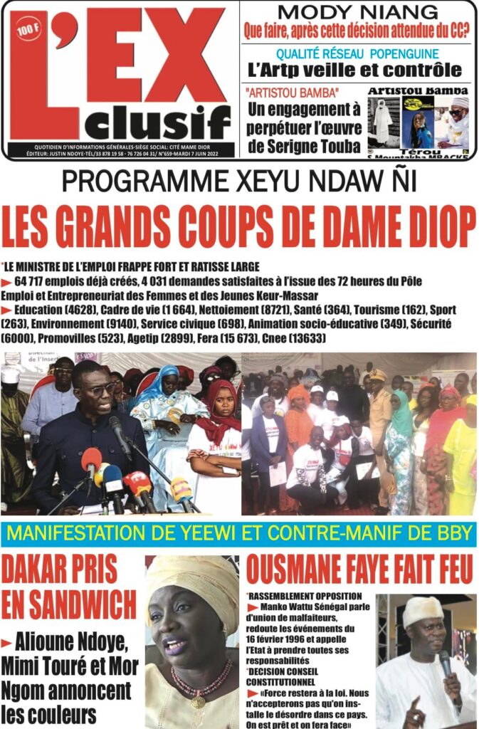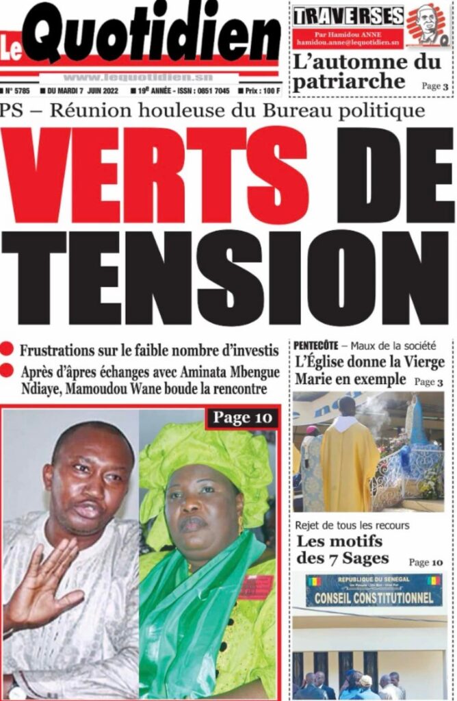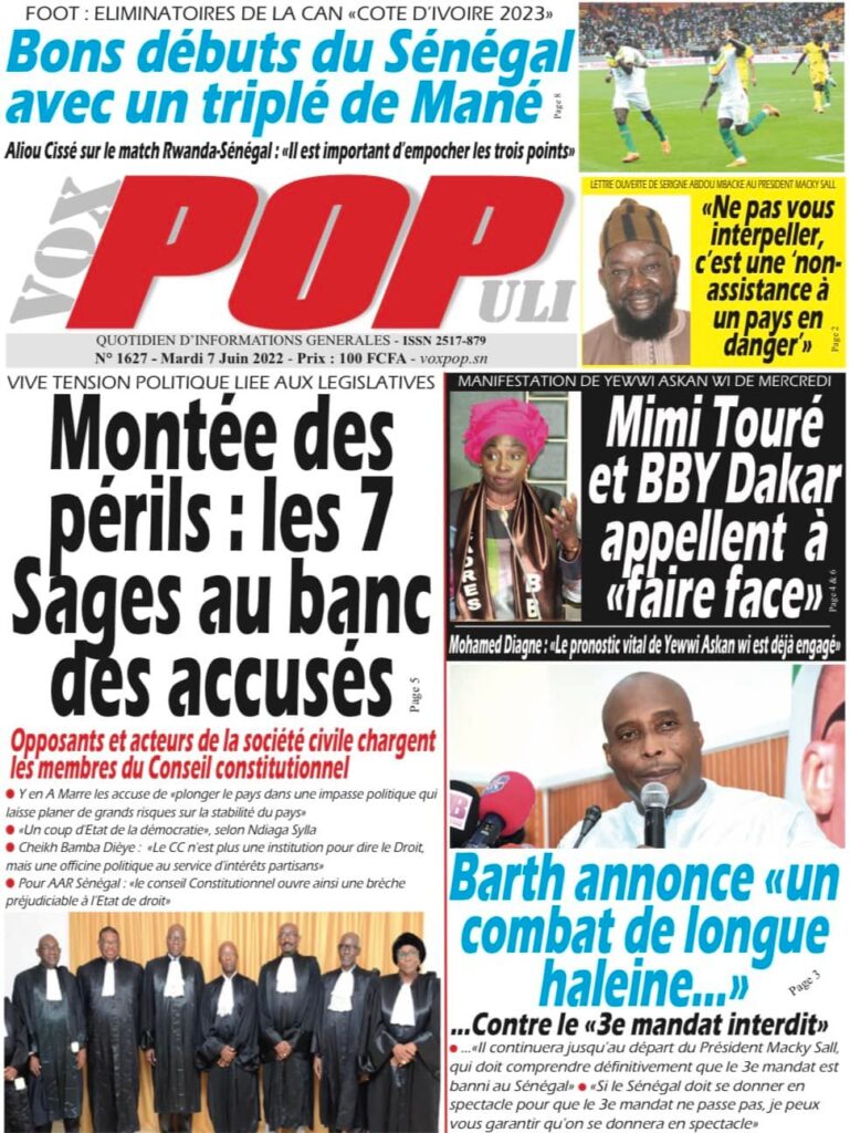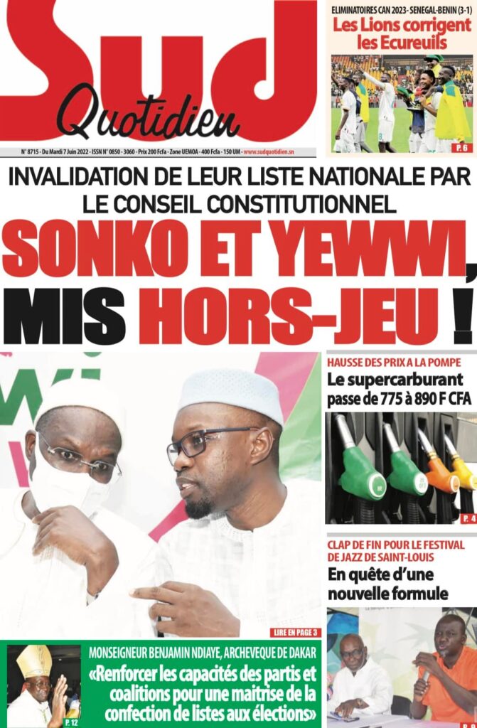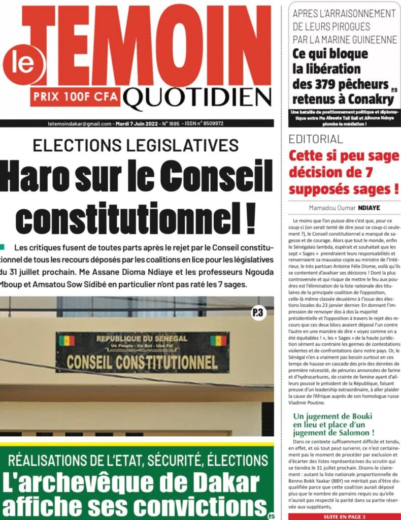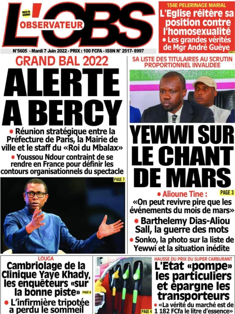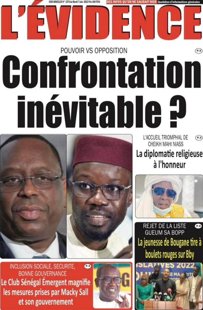 Accueil › Sénégal › Une des journaux du mardi 07 juin 2022 Une des journaux du mardi 07 juin 2022 Publié le 7 Juin 2022, à 07:07 par Abdou Faty GUEYE Votre avis sera publié et visible par des milliers de lecteurs. Veuillez l’exprimer dans un langage respectueux. Commentaire Nom E-mail (ne sera pas visible) Enregistrer mon nom, mon e-mail et mon site web dans le navigateur pour mon prochain commentaire. Partager Partager Partager 0 Laisser un commentaire Annuler la réponseCommentaireNom E-mail (ne sera pas visible) Enregistrer mon nom, mon e-mail et mon site dans le navigateur pour mon prochain commentaire.