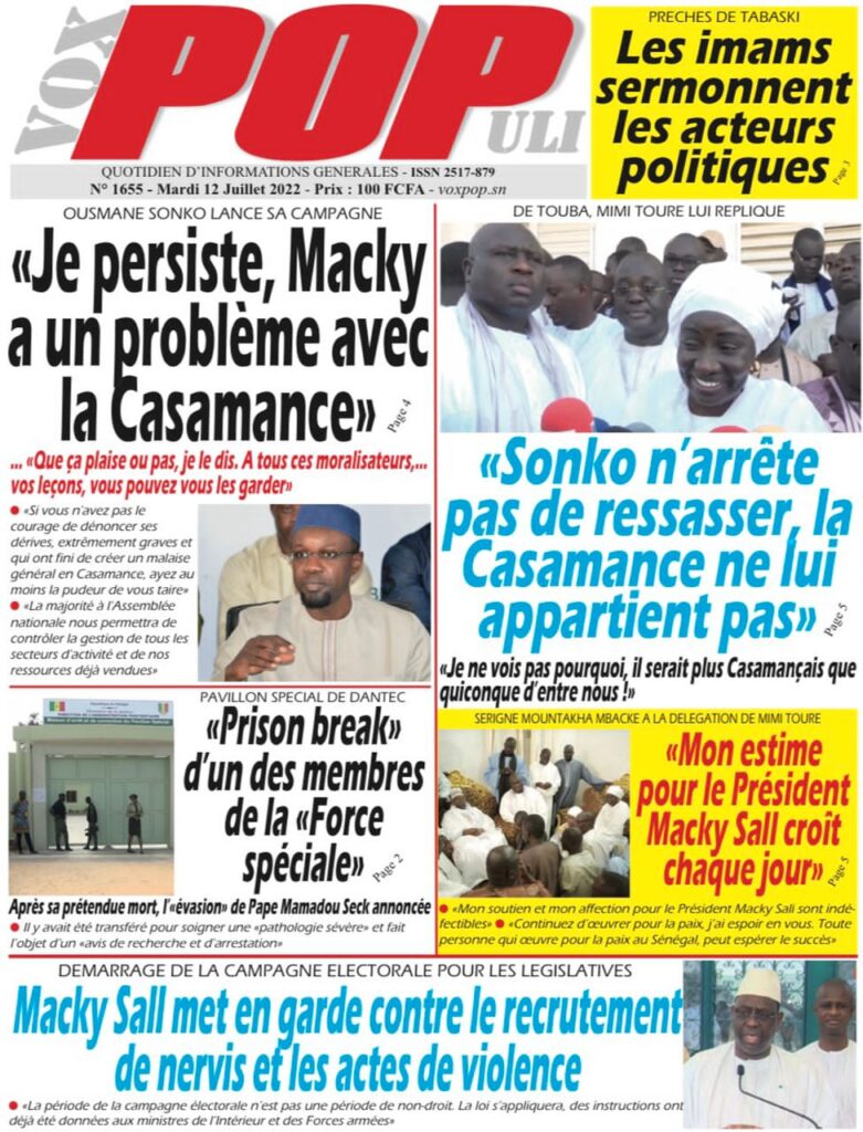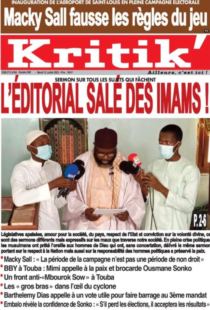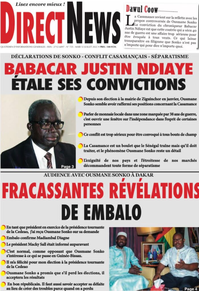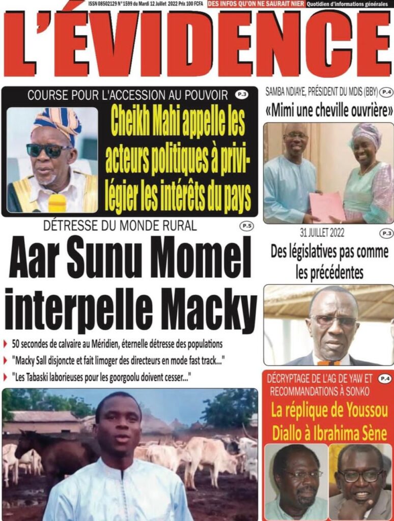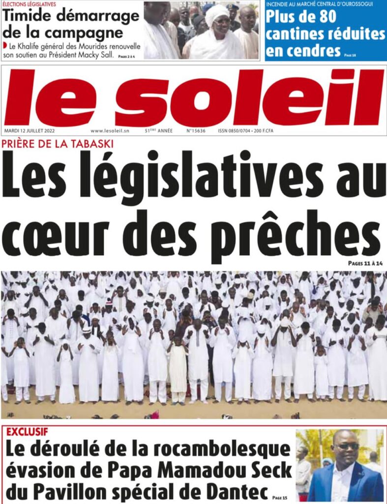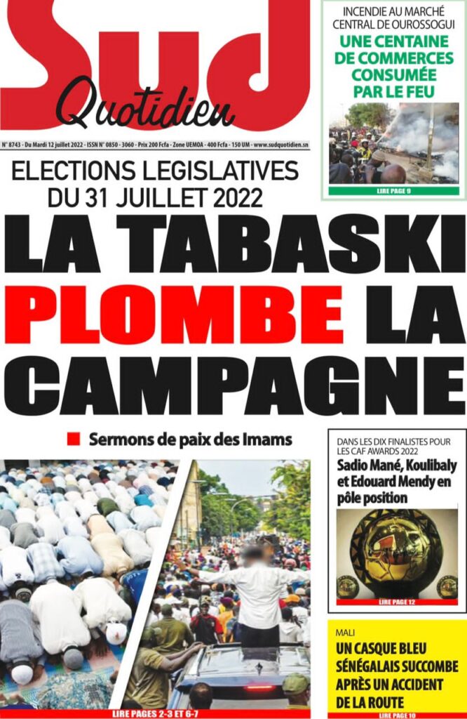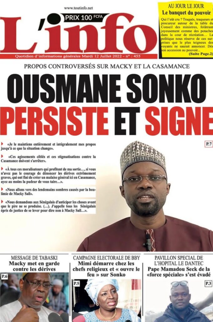 Accueil › Sénégal › Une des journaux du mardi 12 juillet 2022 Une des journaux du mardi 12 juillet 2022 Publié le 12 Juil 2022, à 09:20 par Abdou Faty GUEYE Une des journaux du mardi 12 juillet 2022 Votre avis sera publié et visible par des milliers de lecteurs. Veuillez l’exprimer dans un langage respectueux. Commentaire Nom E-mail (ne sera pas visible) Enregistrer mon nom, mon e-mail et mon site web dans le navigateur pour mon prochain commentaire. Partager Partager Partager 0 Laisser un commentaire Annuler la réponseCommentaireNom E-mail (ne sera pas visible) Enregistrer mon nom, mon e-mail et mon site dans le navigateur pour mon prochain commentaire.