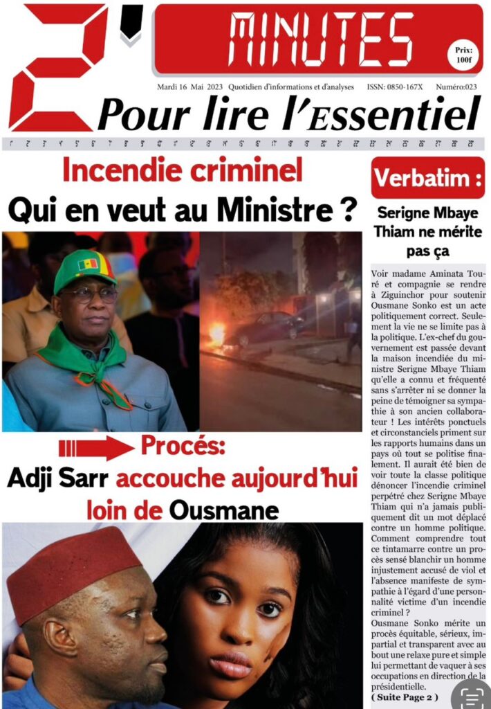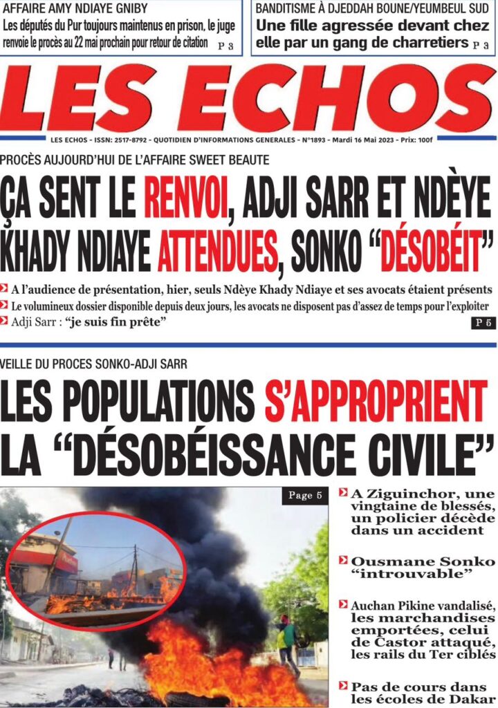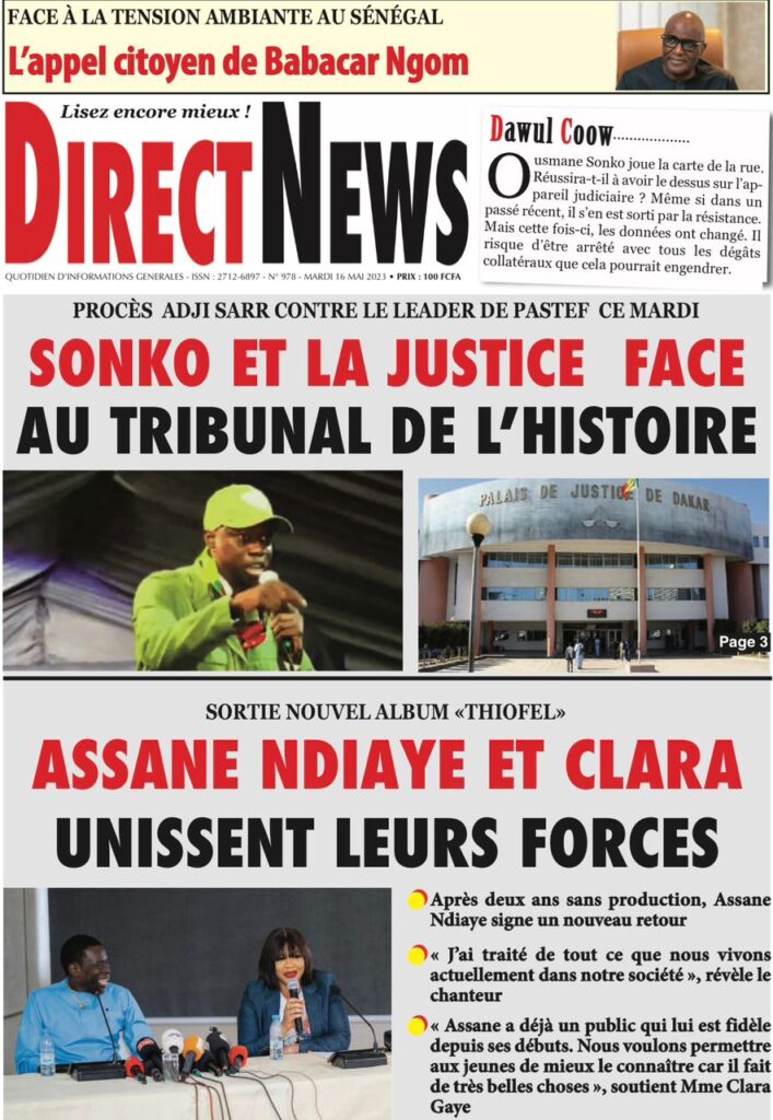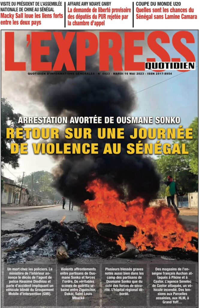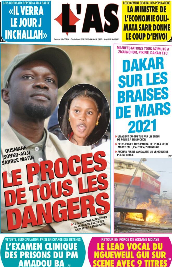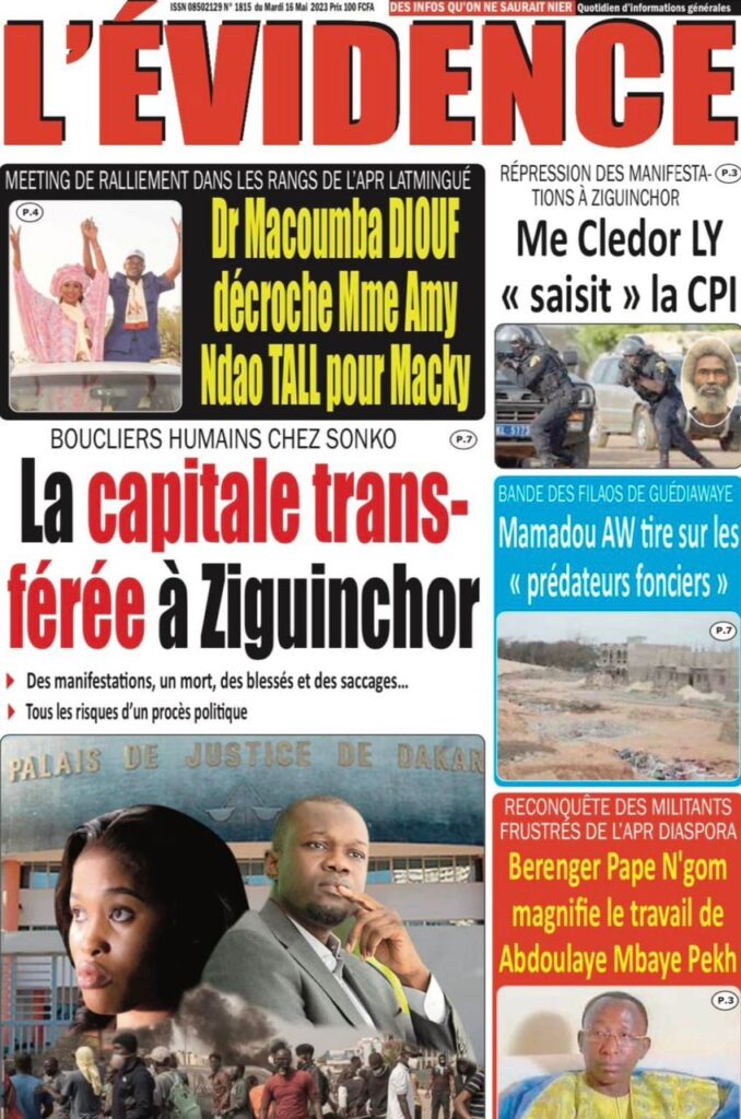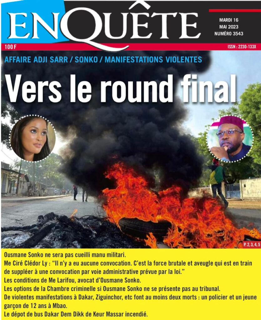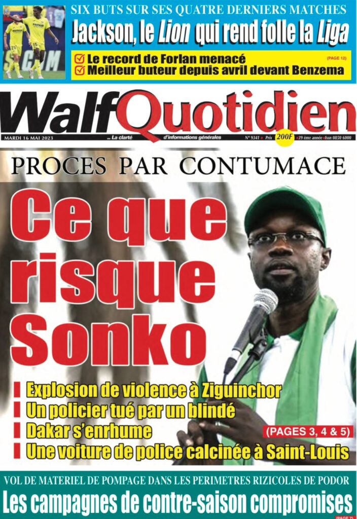 Accueil › Sénégal › Une des journaux sénégalais de ce mardi 16 mai 2023 Actualités Une des journaux sénégalais de ce mardi 16 mai 2023 Abdou Faty GUEYE 16 Mai 2023, 06:25 1 min Une des journaux du mardi 16 mai 2023 mardi 16 mai 2023 une des journaux Votre avis sera publié et visible par des milliers de lecteurs. Veuillez l’exprimer dans un langage respectueux. Commentaire Nom E-mail (ne sera pas visible) Enregistrer mon nom, mon e-mail et mon site web dans le navigateur pour mon prochain commentaire. Partager Partager Partager 0 Laisser un commentaire Annuler la réponseCommentaireNom E-mail (ne sera pas visible) Enregistrer mon nom, mon e-mail et mon site dans le navigateur pour mon prochain commentaire.