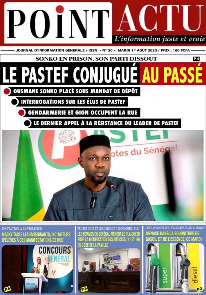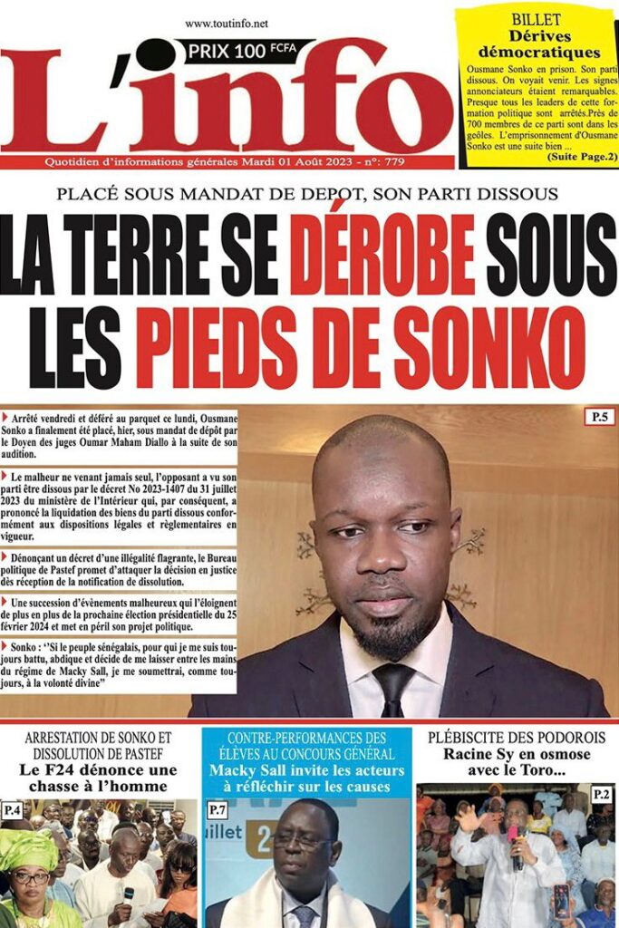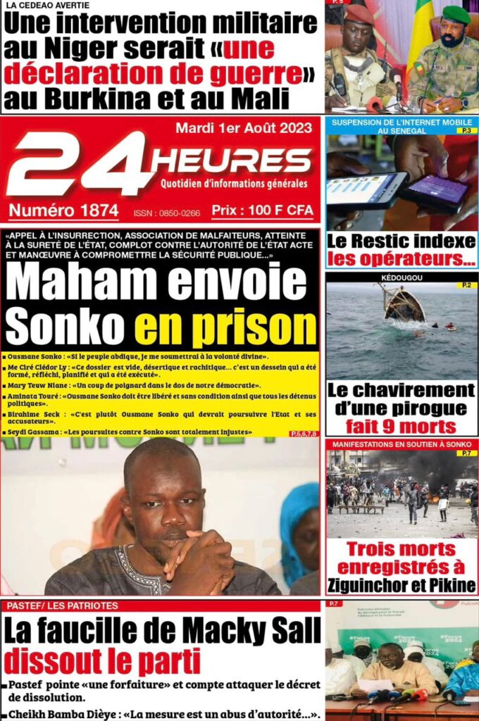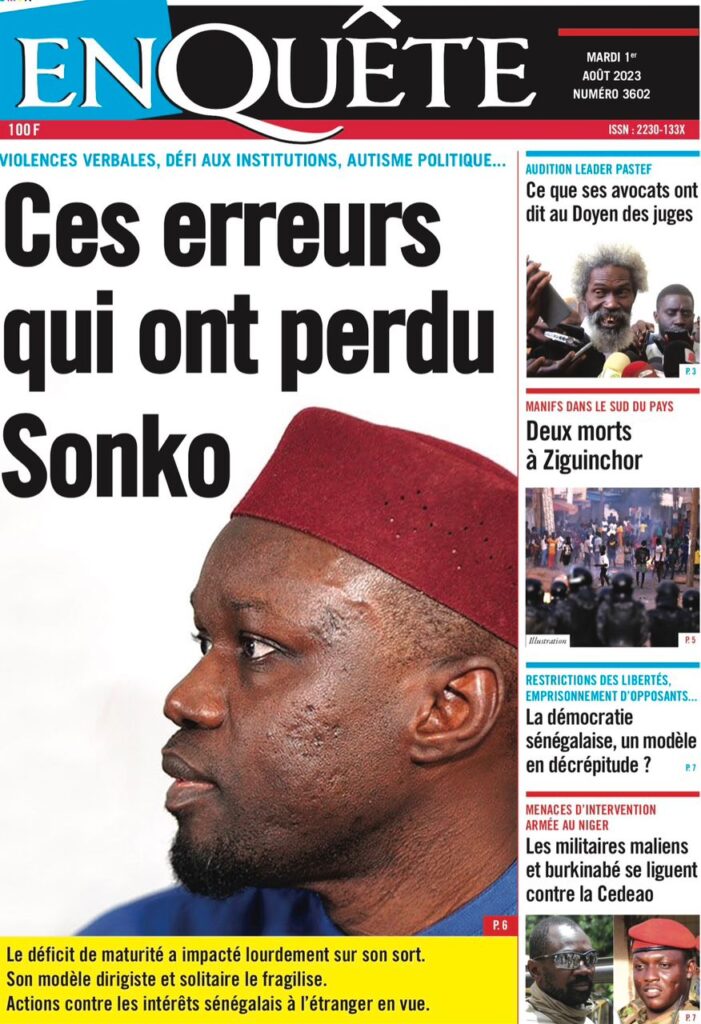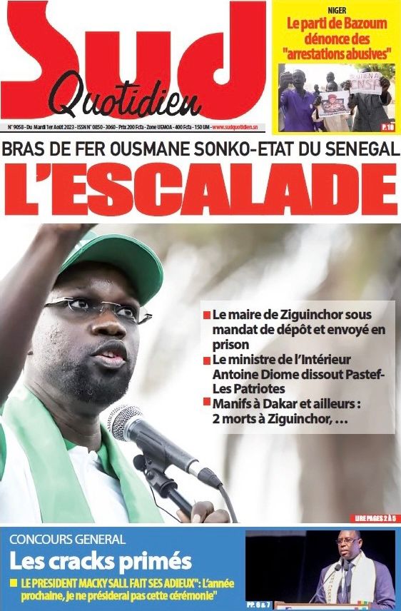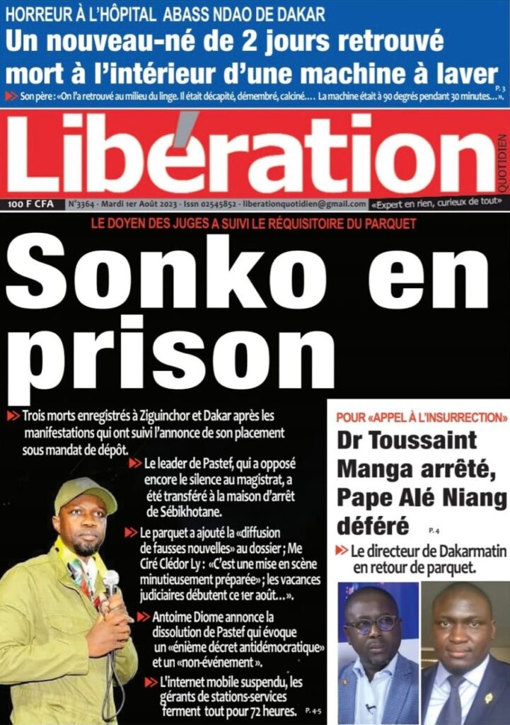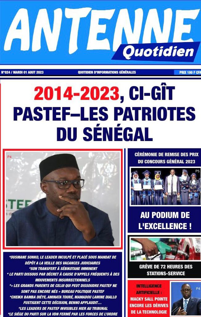 Accueil › Sénégal › Une des journaux du mardi 1er août 2023 Actualités Une des journaux du mardi 1er août 2023 Abdou Faty GUEYE 1 Août 2023, 08:20 1 min Une des journaux du mardi 1er août 2023 mardi 1er août 2023 une des journaux Votre avis sera publié et visible par des milliers de lecteurs. Veuillez l’exprimer dans un langage respectueux. Commentaire Nom E-mail (ne sera pas visible) Enregistrer mon nom, mon e-mail et mon site web dans le navigateur pour mon prochain commentaire. Partager Partager Partager 0 Laisser un commentaire Annuler la réponseCommentaireNom E-mail (ne sera pas visible) Enregistrer mon nom, mon e-mail et mon site dans le navigateur pour mon prochain commentaire.