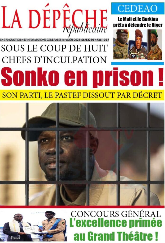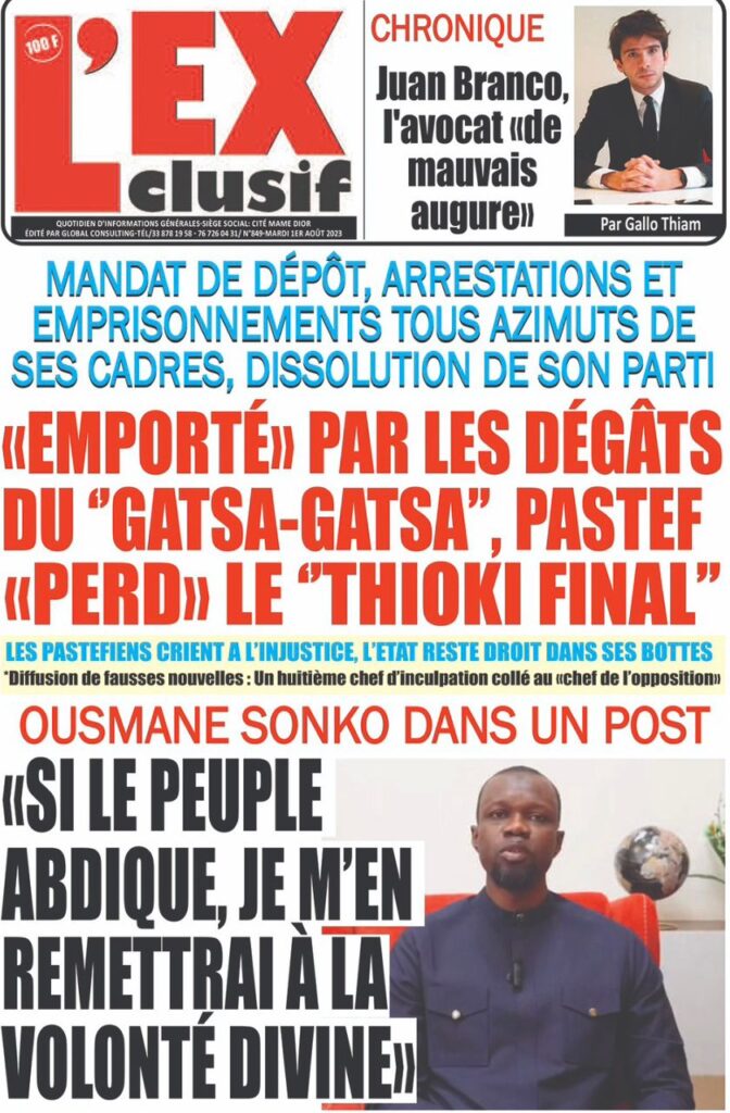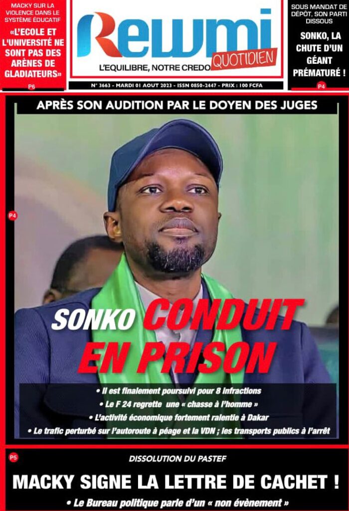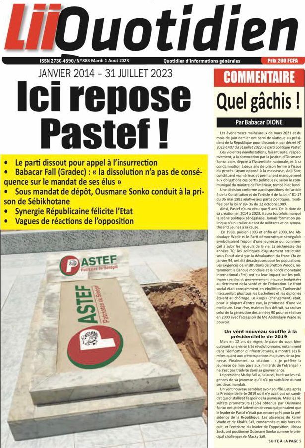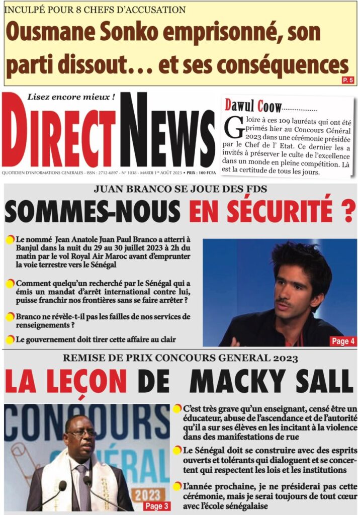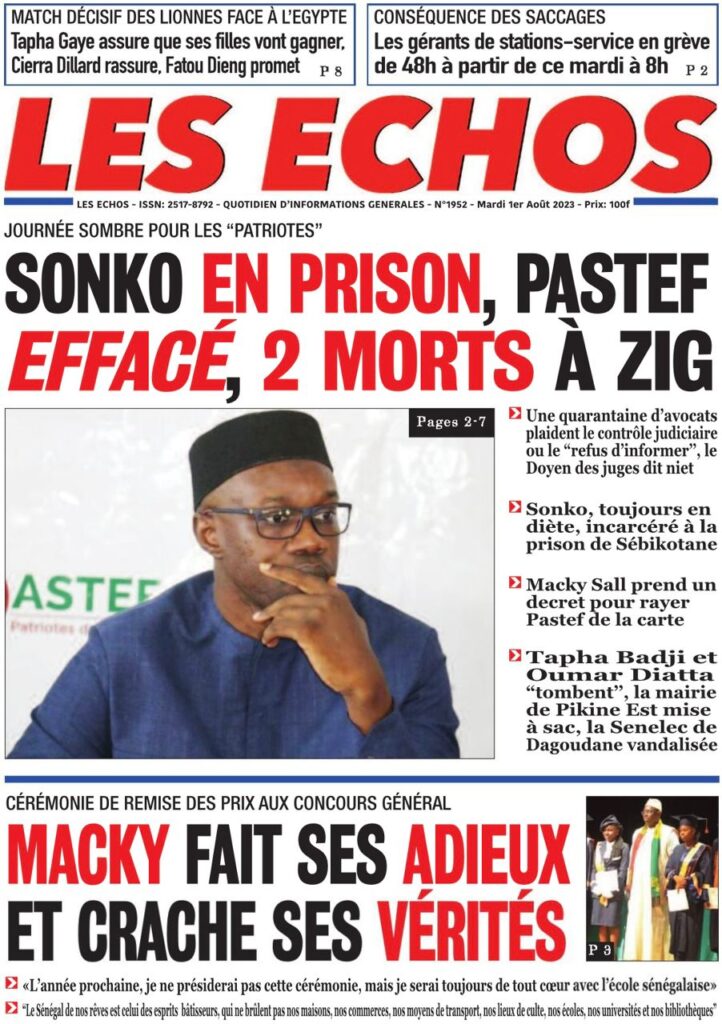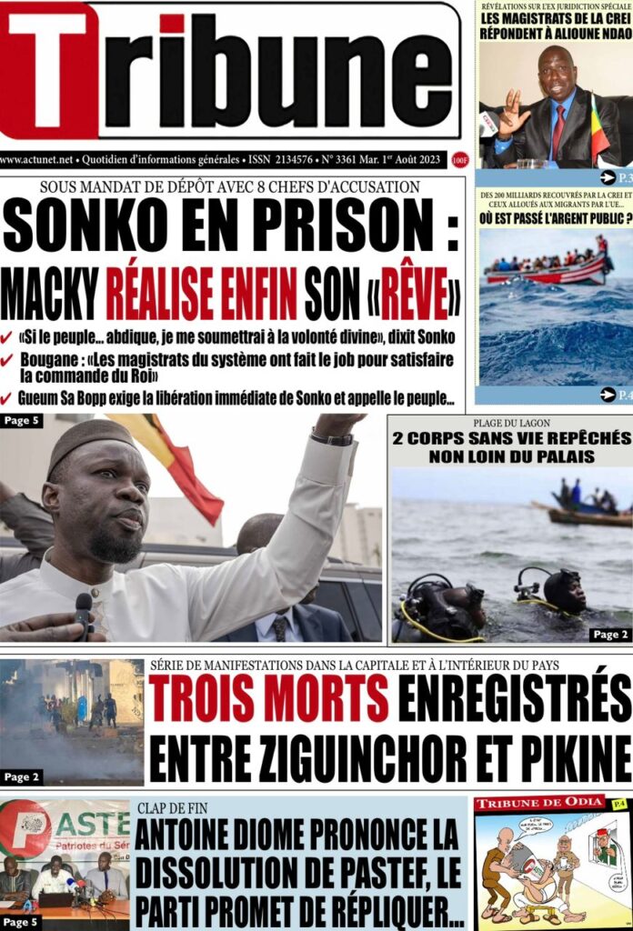 Accueil › Sénégal › Une des journaux du mardi 1er août 2023 Actualités Une des journaux du mardi 1er août 2023 Abdou Faty GUEYE 1 Août 2023, 08:20 1 min Une des journaux du mardi 1er août 2023 mardi 1er août 2023 une des journaux Votre avis sera publié et visible par des milliers de lecteurs. Veuillez l’exprimer dans un langage respectueux. Commentaire Nom E-mail (ne sera pas visible) Enregistrer mon nom, mon e-mail et mon site web dans le navigateur pour mon prochain commentaire. Partager Partager Partager 0 Laisser un commentaire Annuler la réponseCommentaireNom E-mail (ne sera pas visible) Enregistrer mon nom, mon e-mail et mon site dans le navigateur pour mon prochain commentaire.