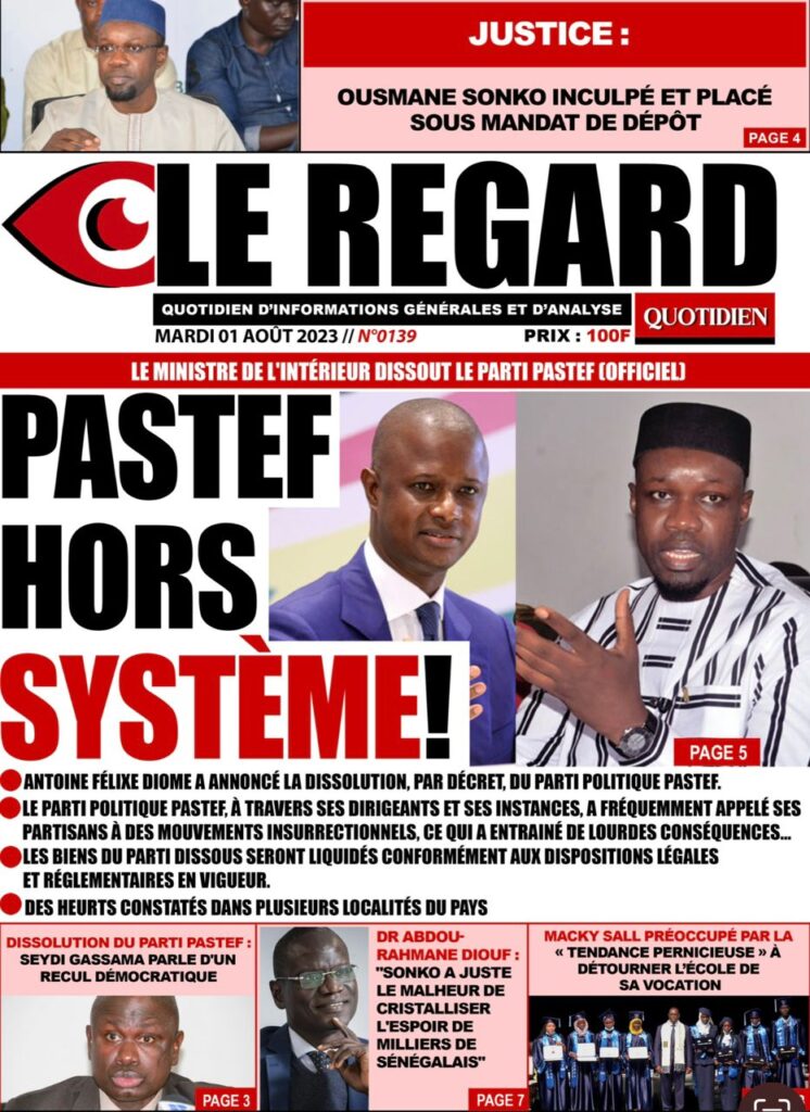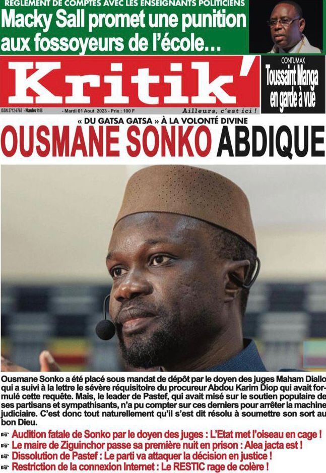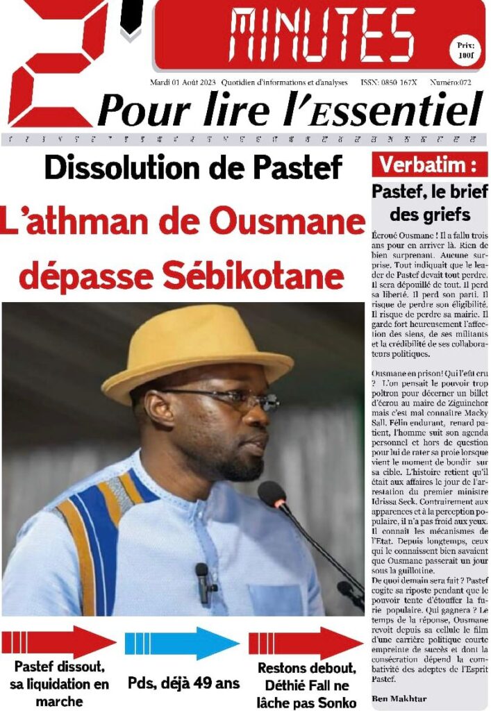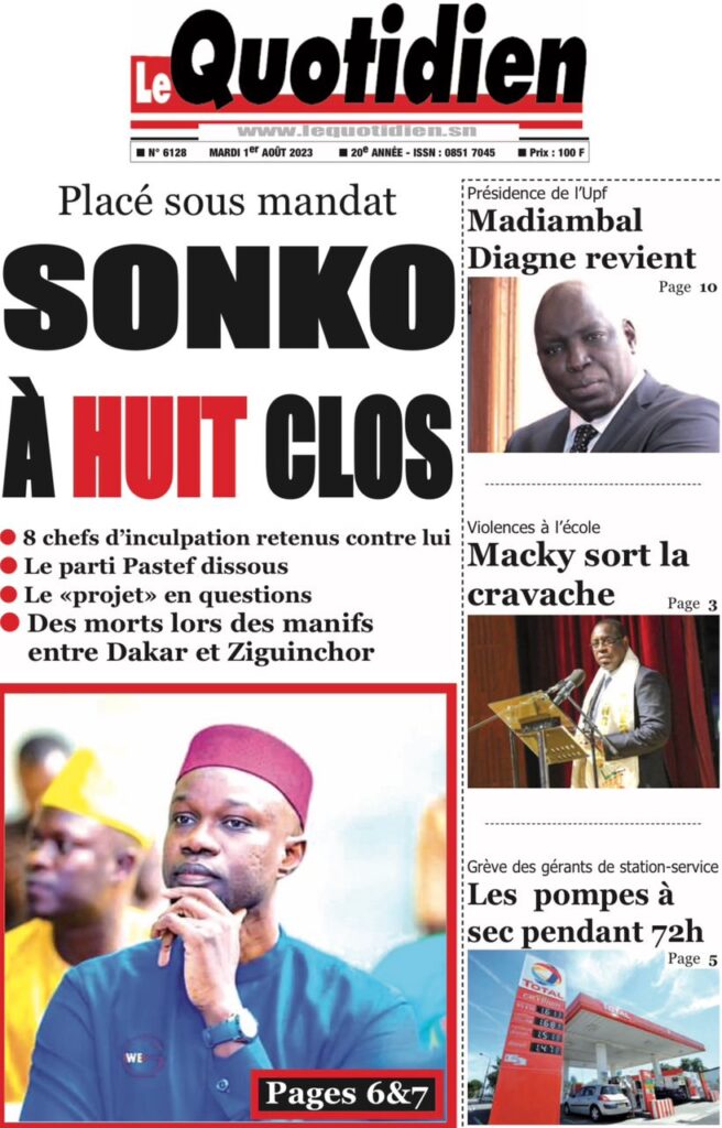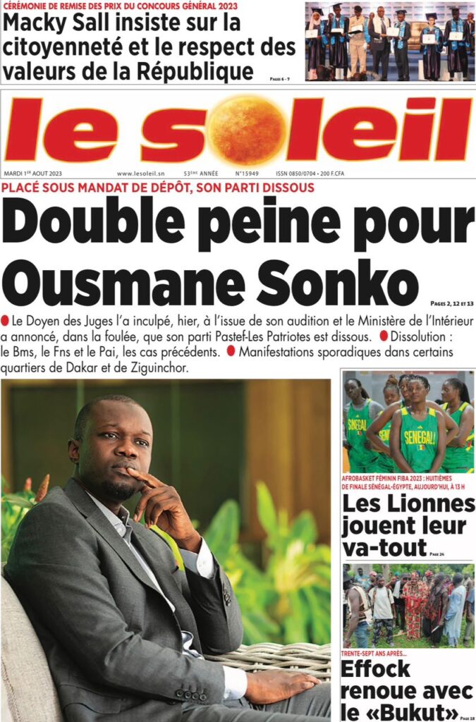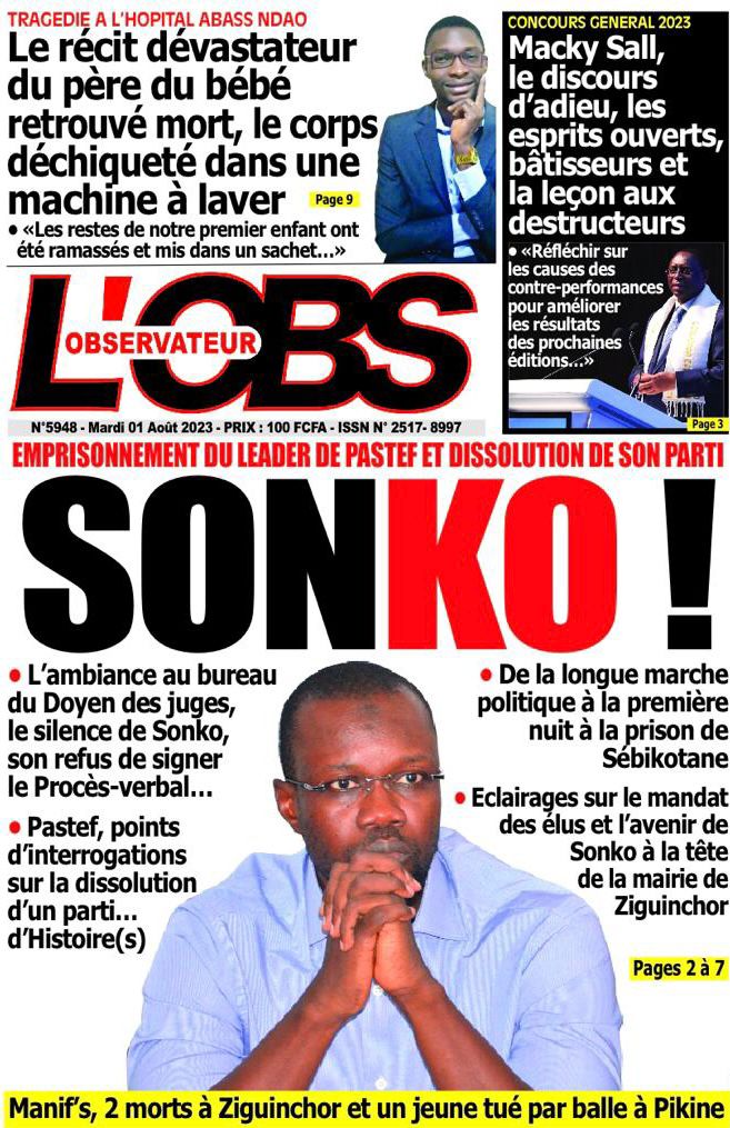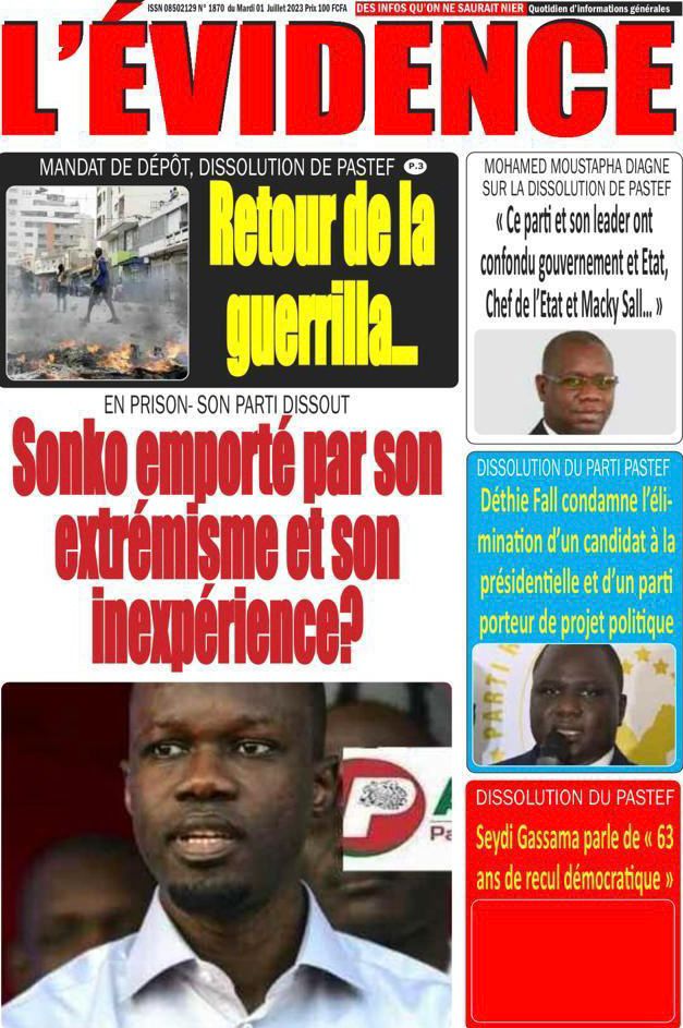 Accueil › Sénégal › Une des journaux du mardi 1er août 2023 Actualités Une des journaux du mardi 1er août 2023 Abdou Faty GUEYE 1 Août 2023, 08:20 1 min Une des journaux du mardi 1er août 2023 mardi 1er août 2023 une des journaux Votre avis sera publié et visible par des milliers de lecteurs. Veuillez l’exprimer dans un langage respectueux. Commentaire Nom E-mail (ne sera pas visible) Enregistrer mon nom, mon e-mail et mon site web dans le navigateur pour mon prochain commentaire. Partager Partager Partager 0 Laisser un commentaire Annuler la réponseCommentaireNom E-mail (ne sera pas visible) Enregistrer mon nom, mon e-mail et mon site dans le navigateur pour mon prochain commentaire.
