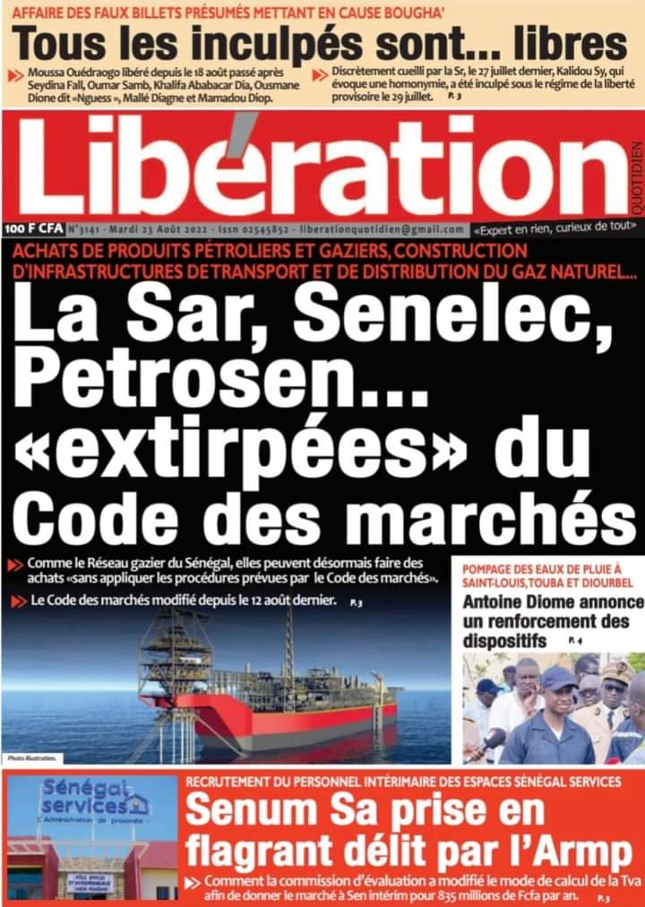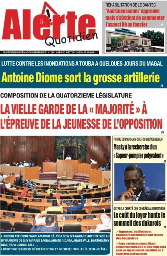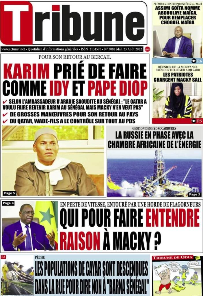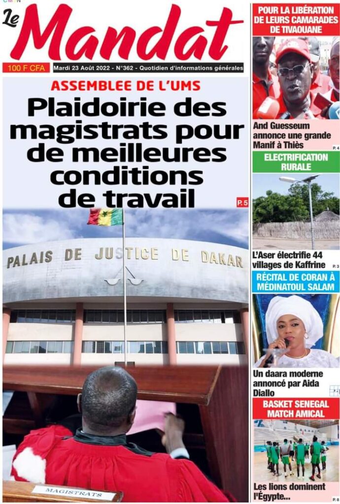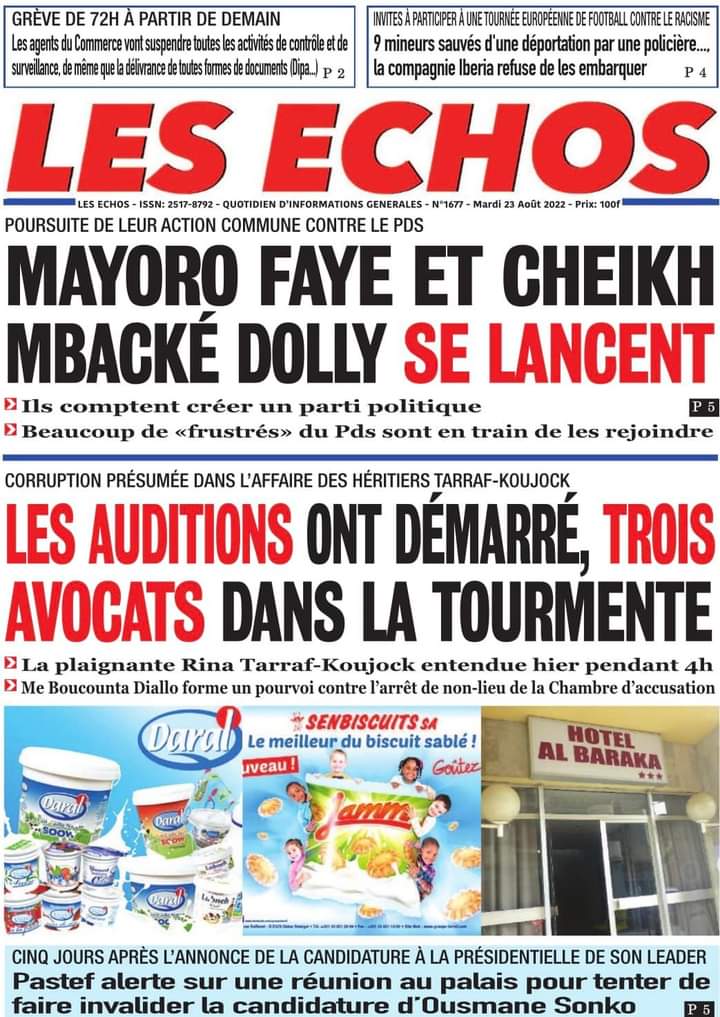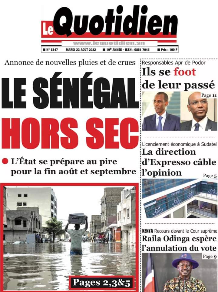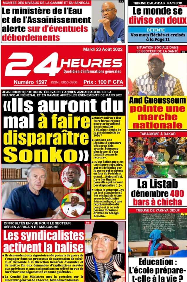 Accueil › Sénégal › Une des journaux du mardi 23 août 2022 Actualités Une des journaux du mardi 23 août 2022 Abdou Faty GUEYE 23 Août 2022, 07:13 1 min Une des journaux du mardi 23 août 2022 mardi 23 août 2022 une des journaux Votre avis sera publié et visible par des milliers de lecteurs. Veuillez l’exprimer dans un langage respectueux. Commentaire Nom E-mail (ne sera pas visible) Enregistrer mon nom, mon e-mail et mon site web dans le navigateur pour mon prochain commentaire. Partager Partager Partager 0 Laisser un commentaire Annuler la réponseCommentaireNom E-mail (ne sera pas visible) Enregistrer mon nom, mon e-mail et mon site dans le navigateur pour mon prochain commentaire.