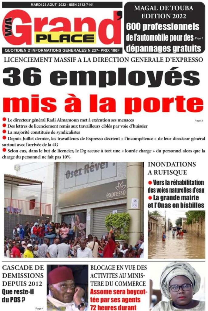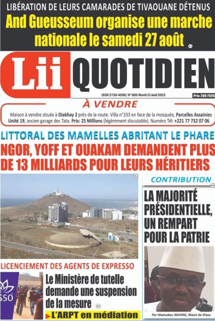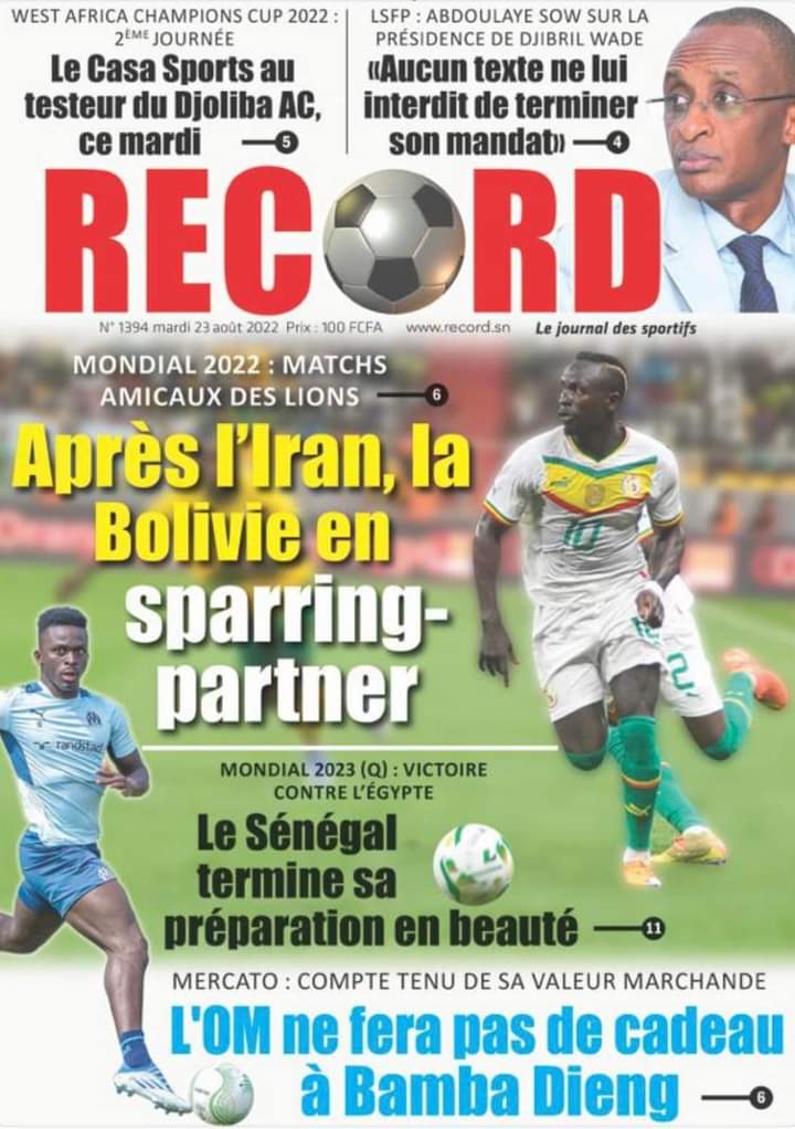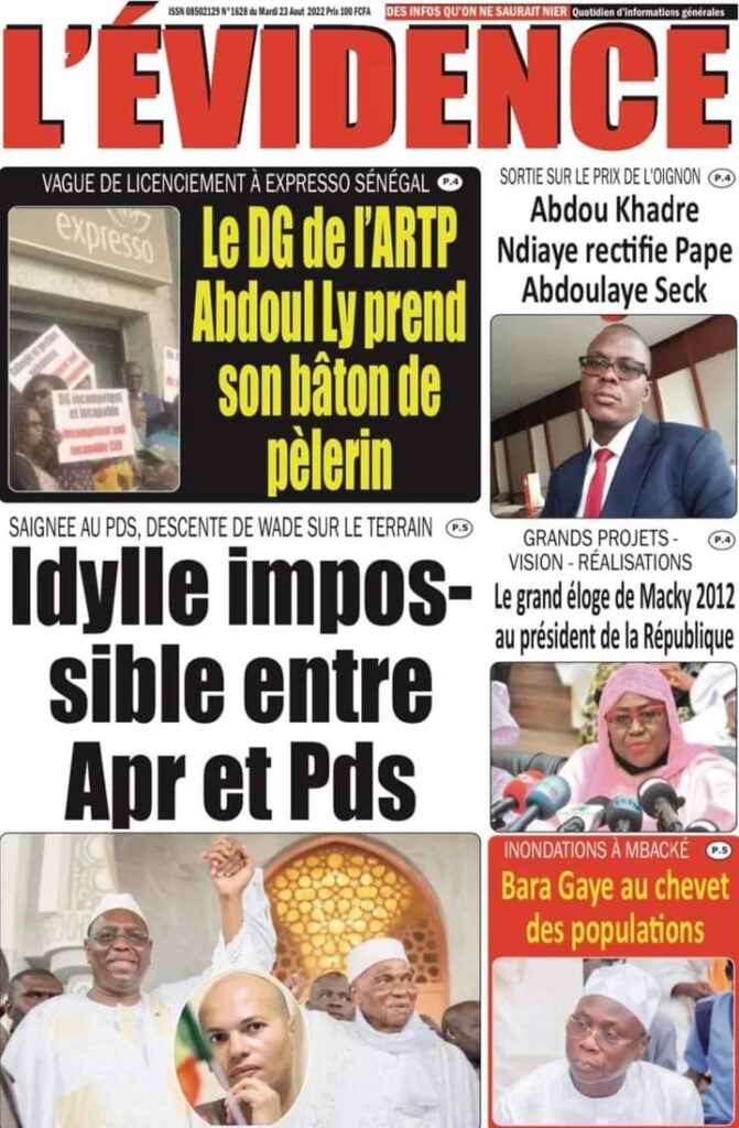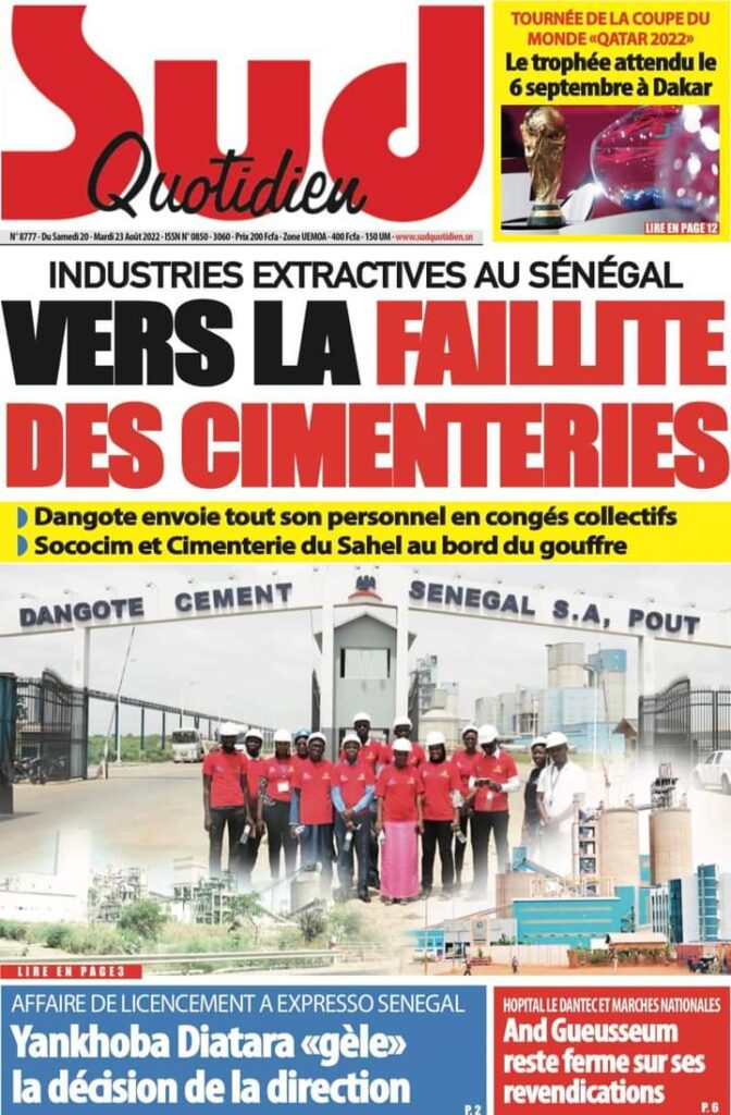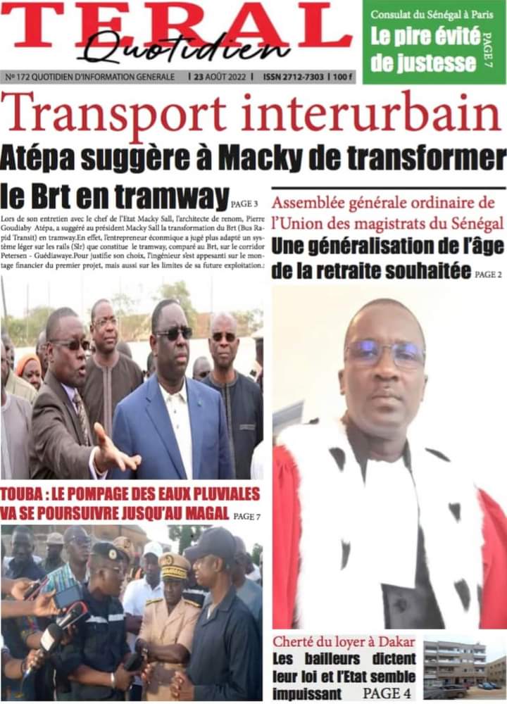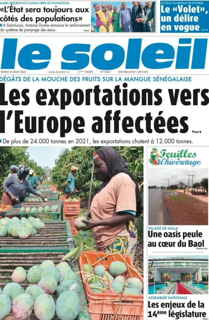 Accueil › Sénégal › Une des journaux du mardi 23 août 2022 Actualités Une des journaux du mardi 23 août 2022 Abdou Faty GUEYE 23 Août 2022, 07:13 1 min Une des journaux du mardi 23 août 2022 mardi 23 août 2022 une des journaux Votre avis sera publié et visible par des milliers de lecteurs. Veuillez l’exprimer dans un langage respectueux. Commentaire Nom E-mail (ne sera pas visible) Enregistrer mon nom, mon e-mail et mon site web dans le navigateur pour mon prochain commentaire. Partager Partager Partager 0 Laisser un commentaire Annuler la réponseCommentaireNom E-mail (ne sera pas visible) Enregistrer mon nom, mon e-mail et mon site dans le navigateur pour mon prochain commentaire.