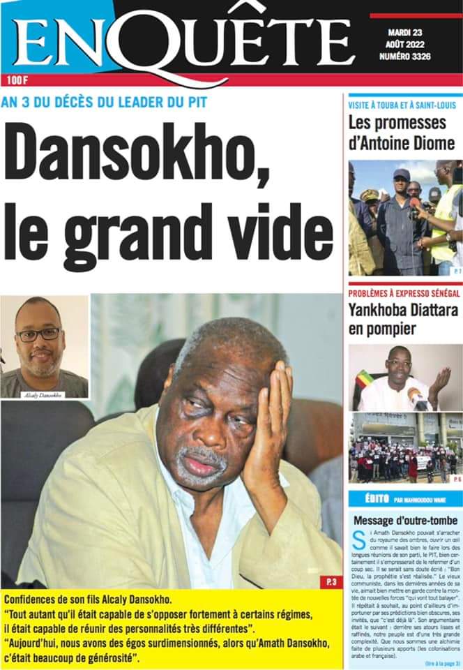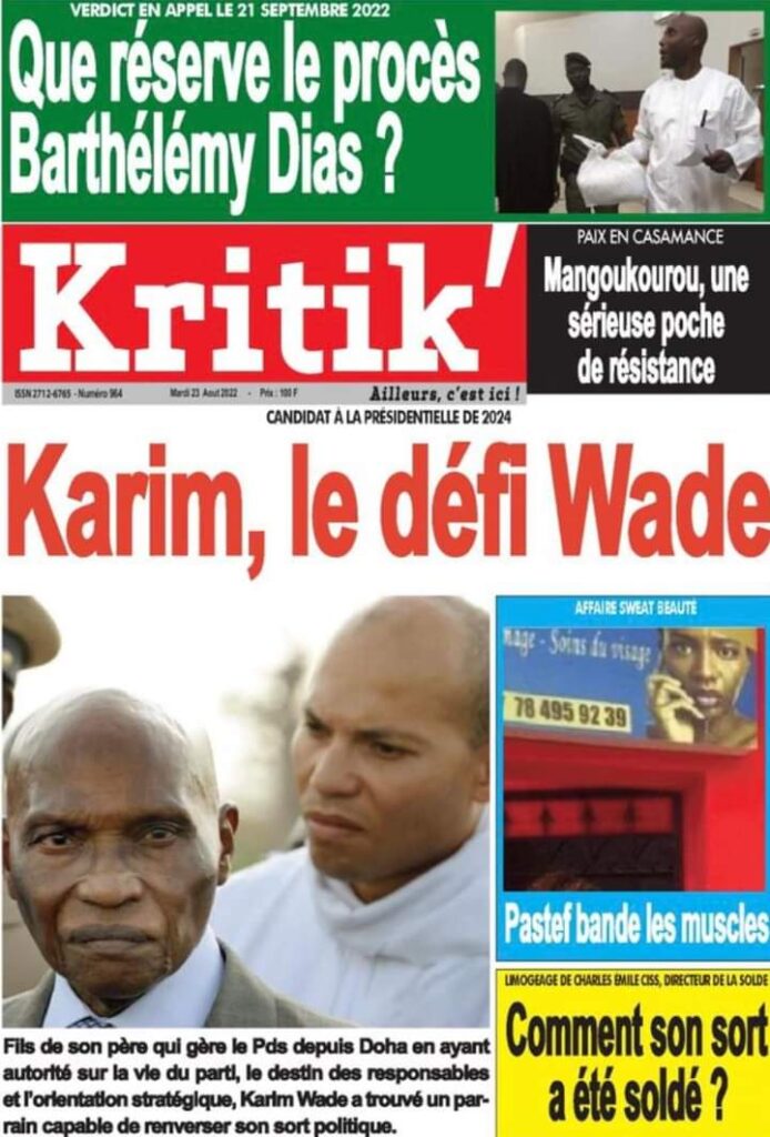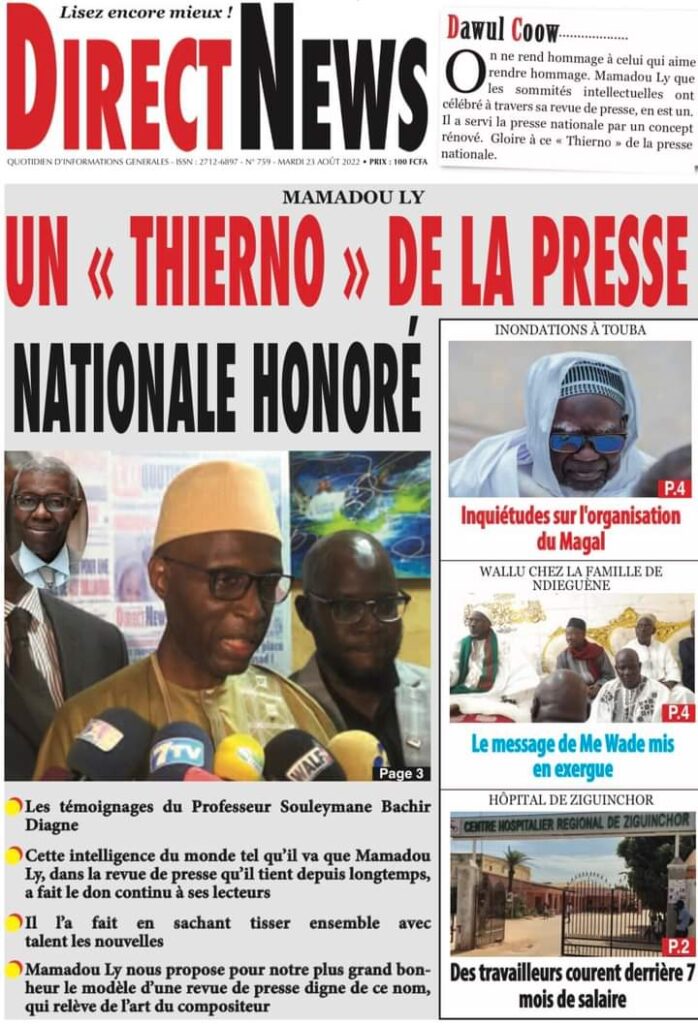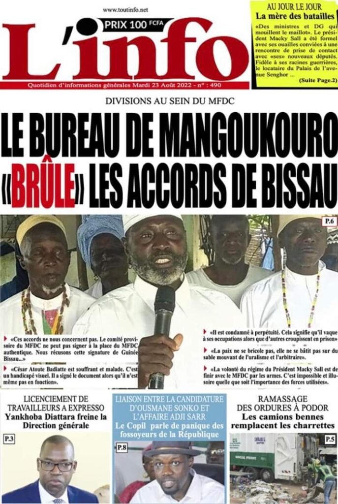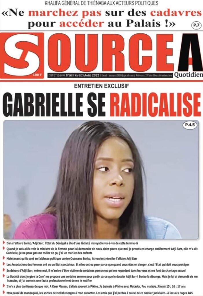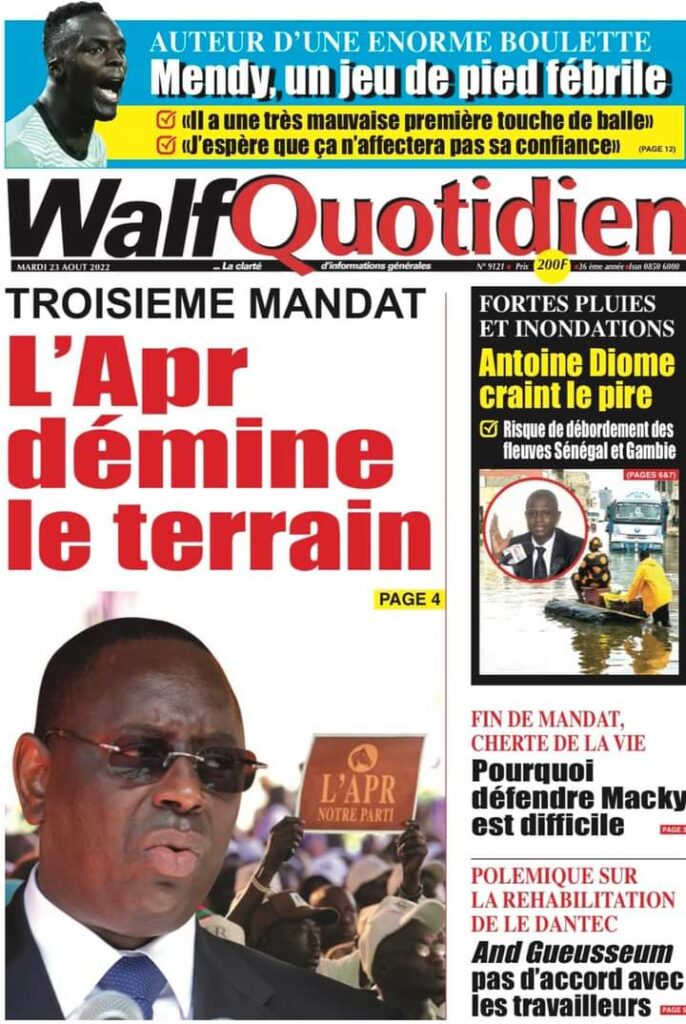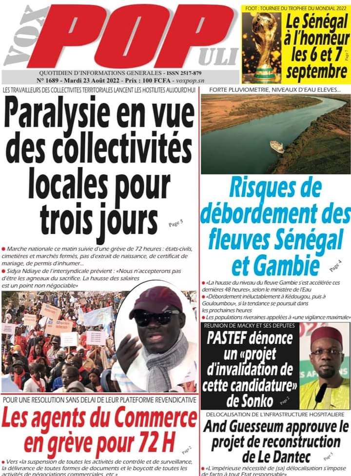 Accueil › Sénégal › Une des journaux du mardi 23 août 2022 Actualités Une des journaux du mardi 23 août 2022 Abdou Faty GUEYE 23 Août 2022, 07:13 1 min Une des journaux du mardi 23 août 2022 mardi 23 août 2022 une des journaux Votre avis sera publié et visible par des milliers de lecteurs. Veuillez l’exprimer dans un langage respectueux. Commentaire Nom E-mail (ne sera pas visible) Enregistrer mon nom, mon e-mail et mon site web dans le navigateur pour mon prochain commentaire. Partager Partager Partager 0 Laisser un commentaire Annuler la réponseCommentaireNom E-mail (ne sera pas visible) Enregistrer mon nom, mon e-mail et mon site dans le navigateur pour mon prochain commentaire.