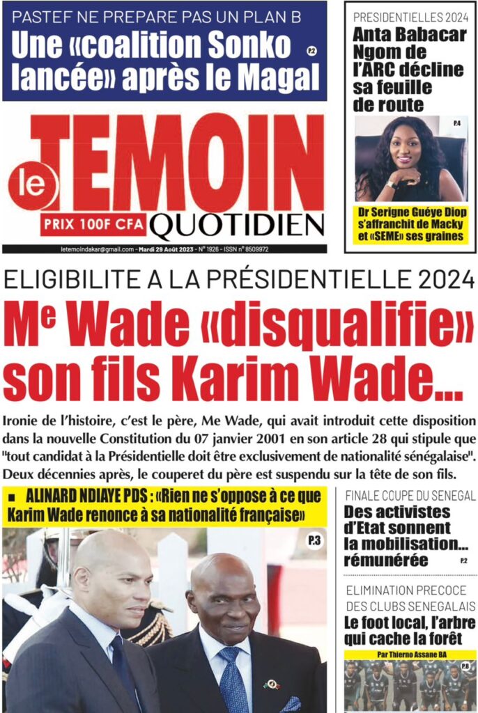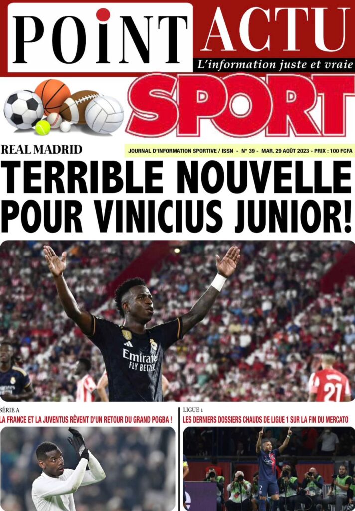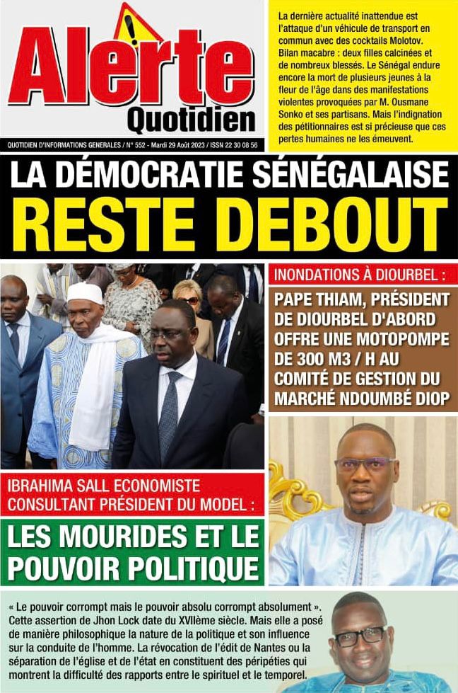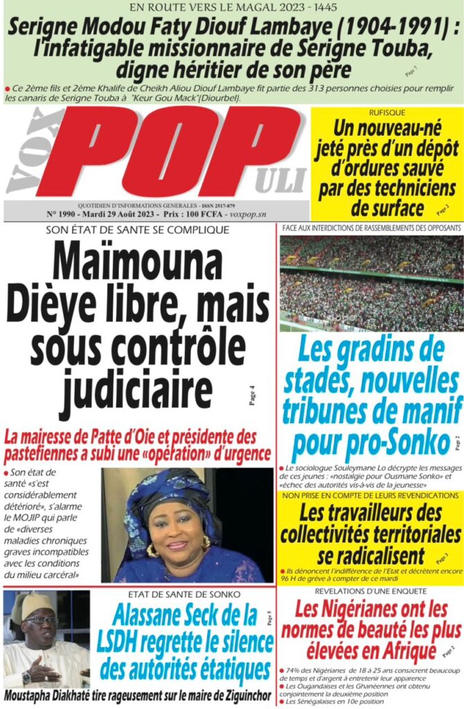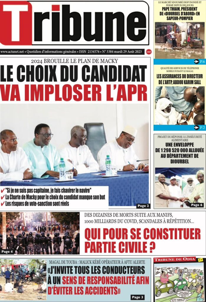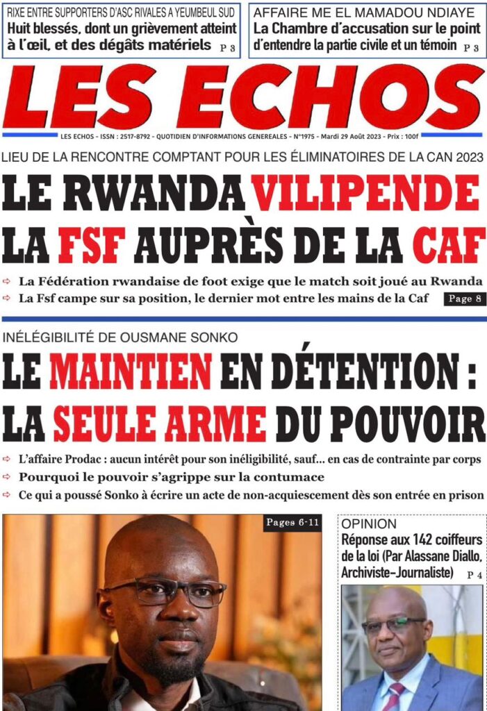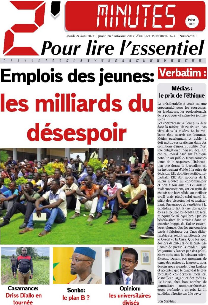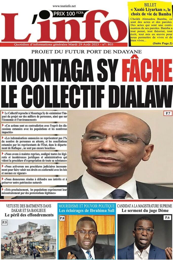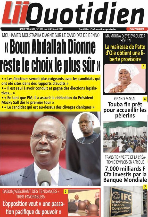 Accueil › Sénégal › Une des journaux du mardi 29 août 2023 Actualités Une des journaux du mardi 29 août 2023 Abdou Faty GUEYE 29 Août 2023, 07:14 1 min mardi 29 août 2023 une des journaux Votre avis sera publié et visible par des milliers de lecteurs. Veuillez l’exprimer dans un langage respectueux. Commentaire Nom E-mail (ne sera pas visible) Enregistrer mon nom, mon e-mail et mon site web dans le navigateur pour mon prochain commentaire. Partager Partager Partager 0 Laisser un commentaire Annuler la réponseCommentaireNom E-mail (ne sera pas visible) Enregistrer mon nom, mon e-mail et mon site dans le navigateur pour mon prochain commentaire.
