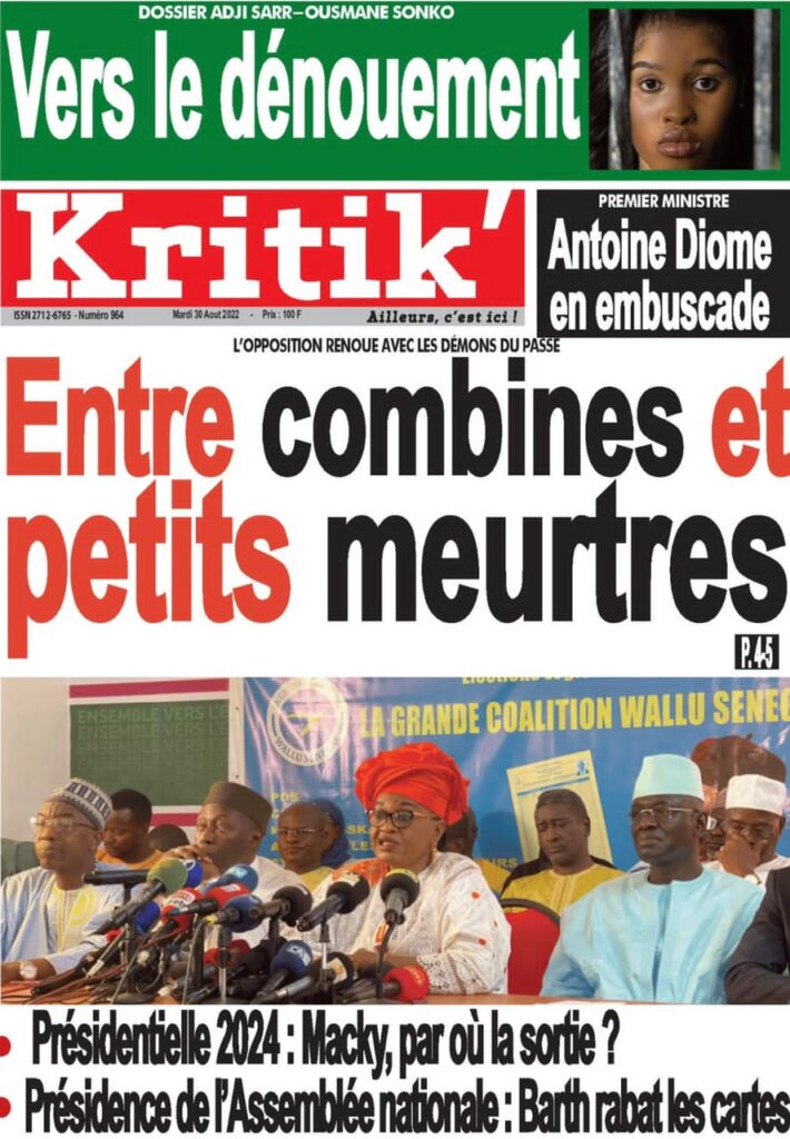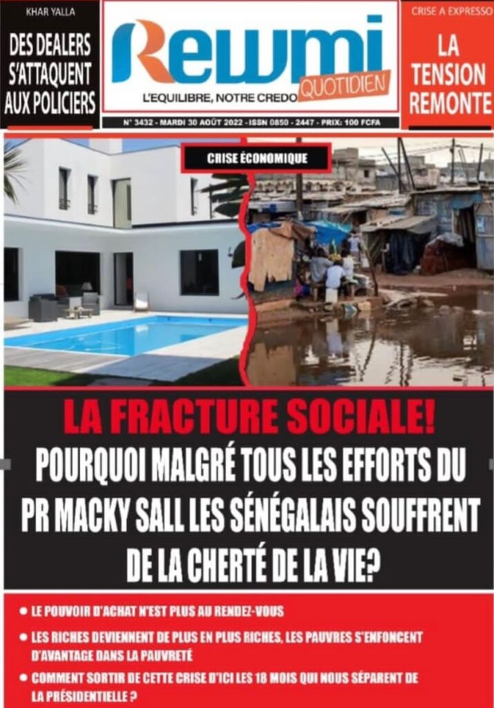 Accueil › Sénégal › Une des journaux du mardi 30 août 2022 Actualités Une des journaux du mardi 30 août 2022 Abdou Faty GUEYE 30 Août 2022, 07:07 1 min Une des journaux du mardi 30 août 2022 mardi 30 août 2022 une des journaux Votre avis sera publié et visible par des milliers de lecteurs. Veuillez l’exprimer dans un langage respectueux. Commentaire Nom E-mail (ne sera pas visible) Enregistrer mon nom, mon e-mail et mon site web dans le navigateur pour mon prochain commentaire. Partager Partager Partager 0 Laisser un commentaire Annuler la réponseCommentaireNom E-mail (ne sera pas visible) Enregistrer mon nom, mon e-mail et mon site dans le navigateur pour mon prochain commentaire.