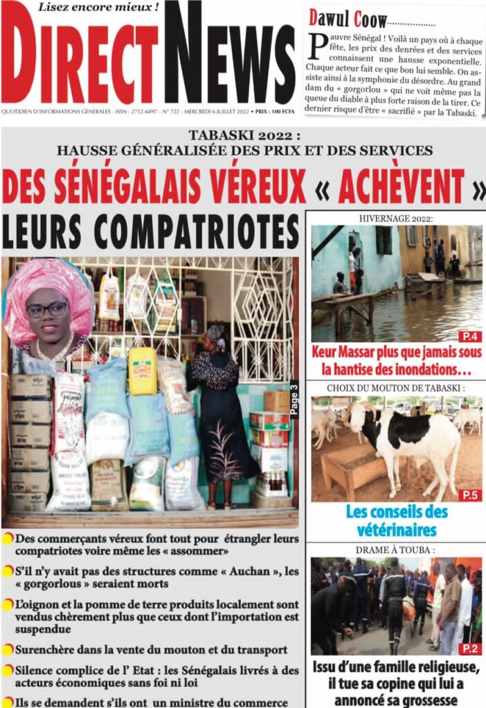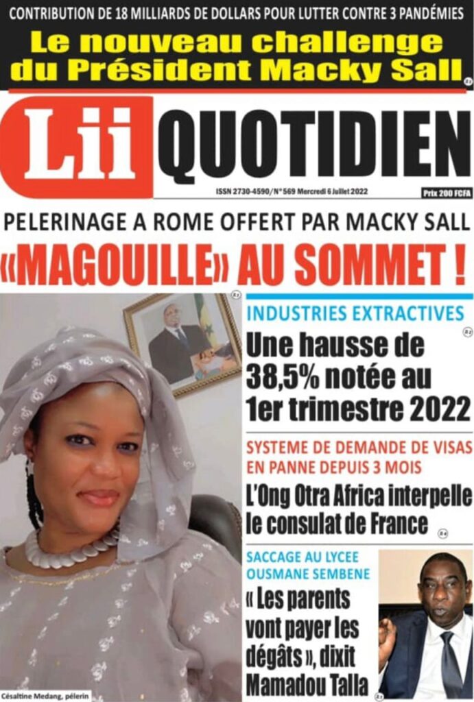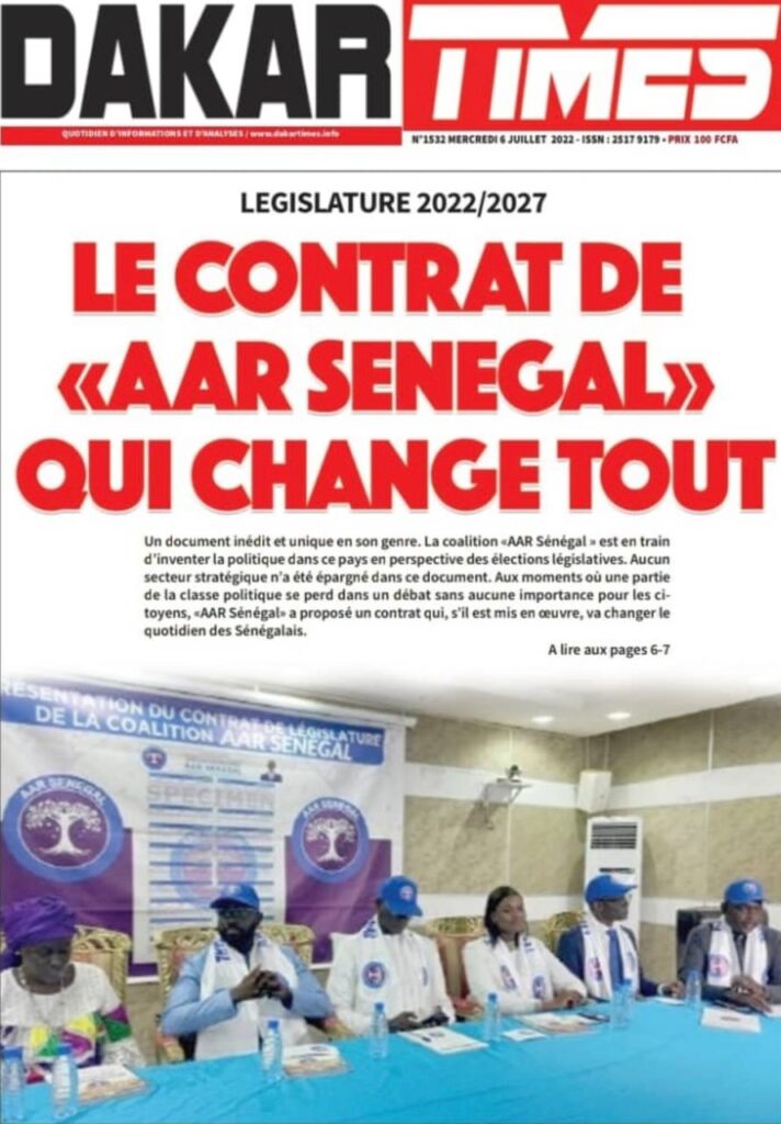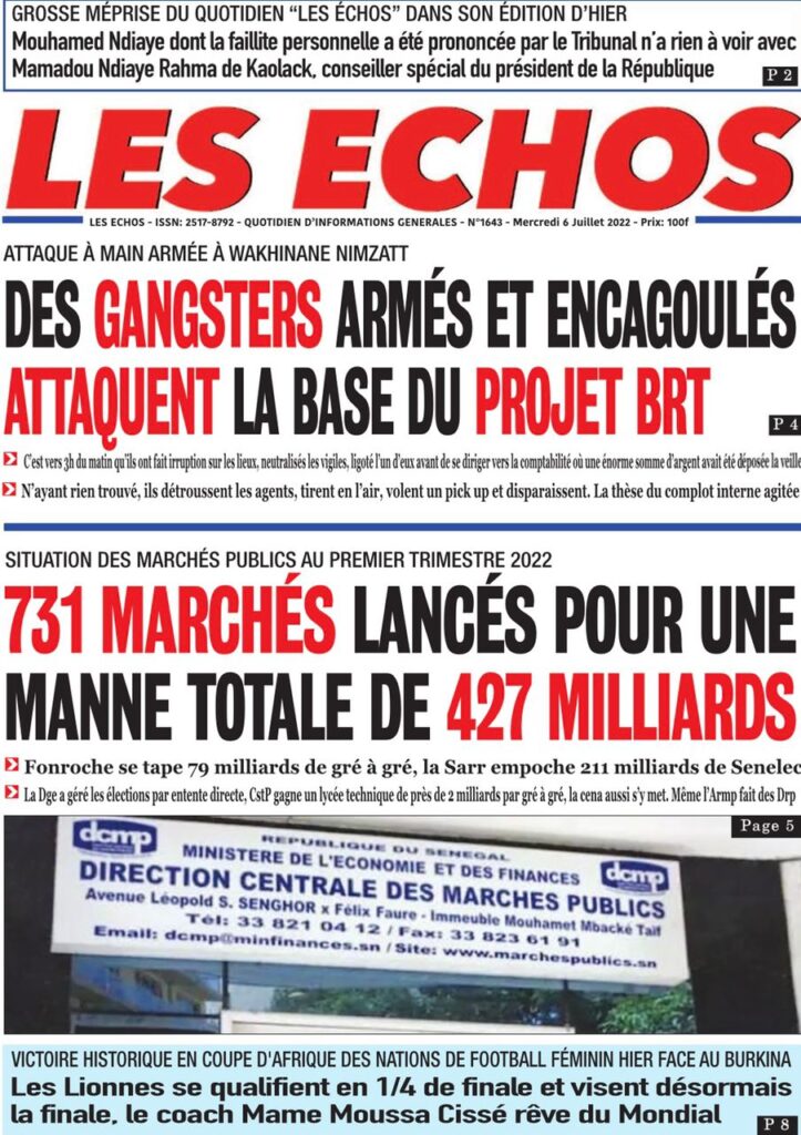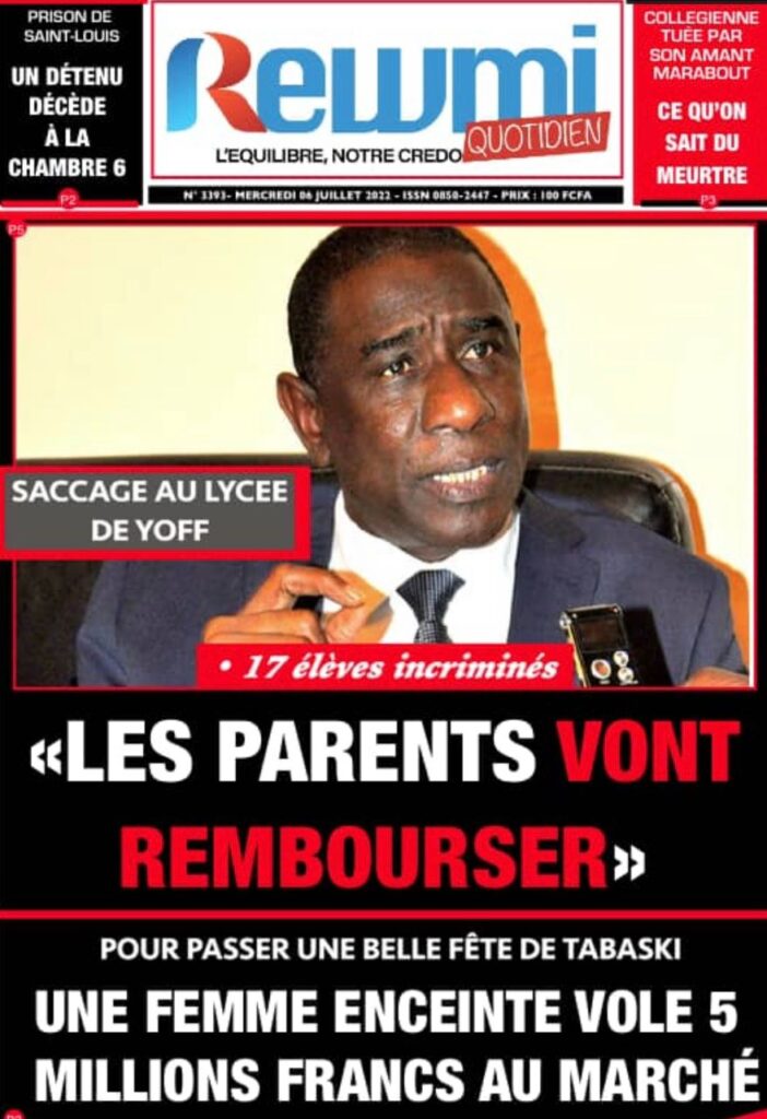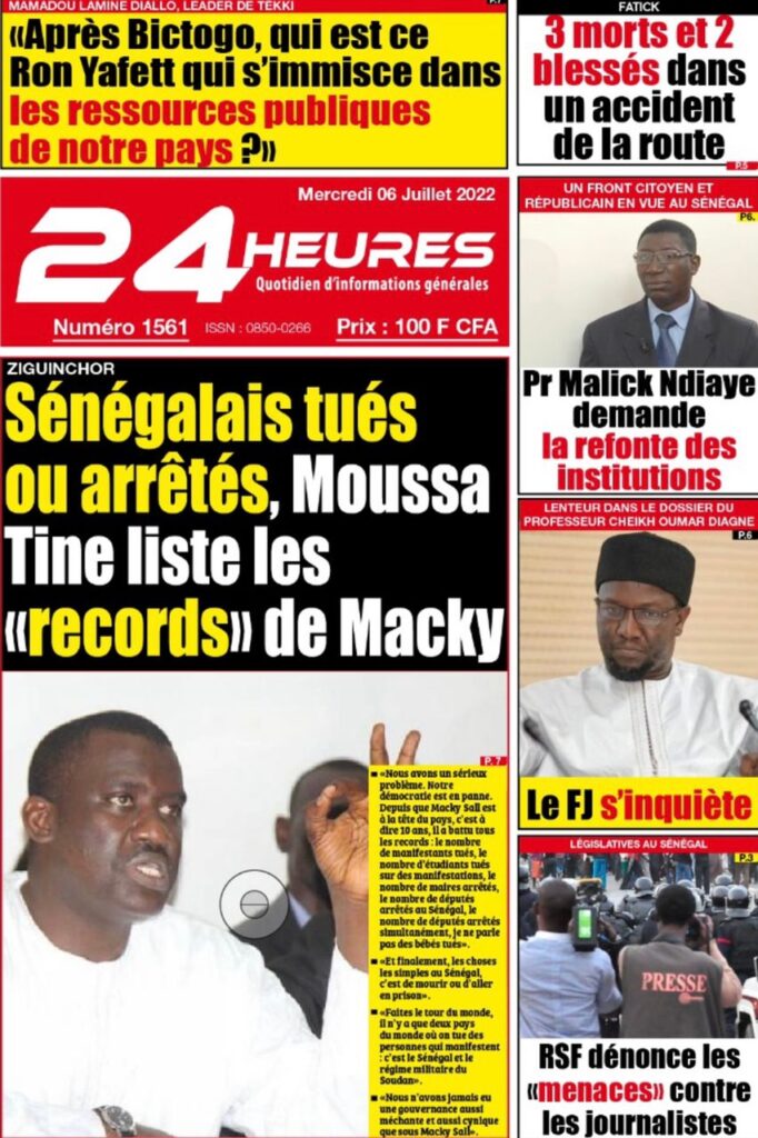 Accueil ›Sénégal ›Une des journaux du mercredi 06 juillet 2022Une des journaux du mercredi 06 juillet 2022 Publié le 6 Juil 2022, à 06:34 par Abdou Faty GUEYE Une des journaux du mercredi 06 juillet 2022Votre avis sera publié et visible par des milliers de lecteurs. Veuillez l’exprimer dans un langage respectueux. Commentaire Nom E-mail (ne sera pas visible) Enregistrer mon nom, mon e-mail et mon site web dans le navigateur pour mon prochain commentaire. Partager Partager Partager 0 Laisser un commentaire Annuler la réponseCommentaireNom E-mail (ne sera pas visible) Enregistrer mon nom, mon e-mail et mon site dans le navigateur pour mon prochain commentaire.