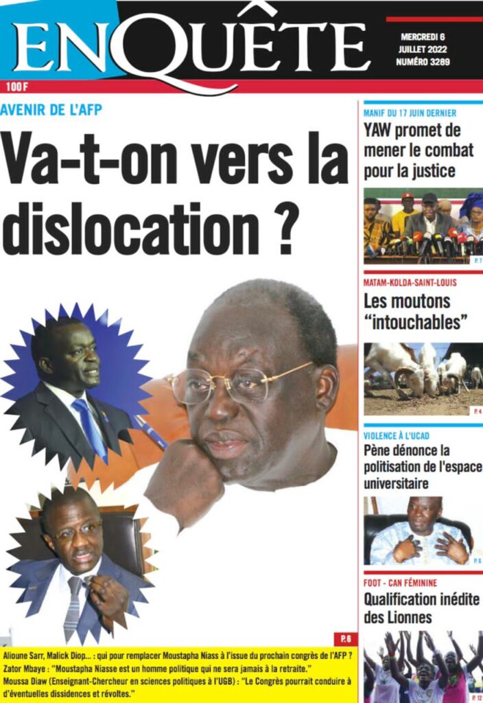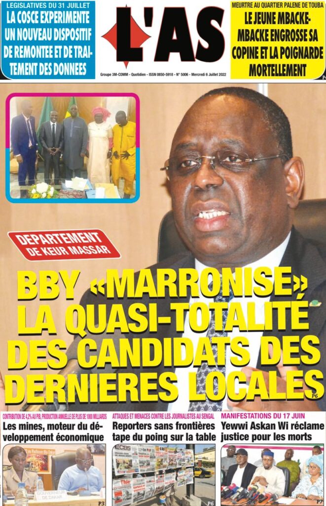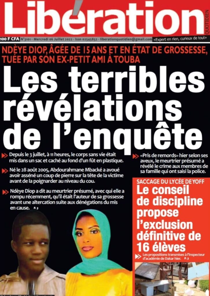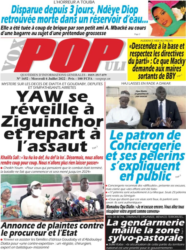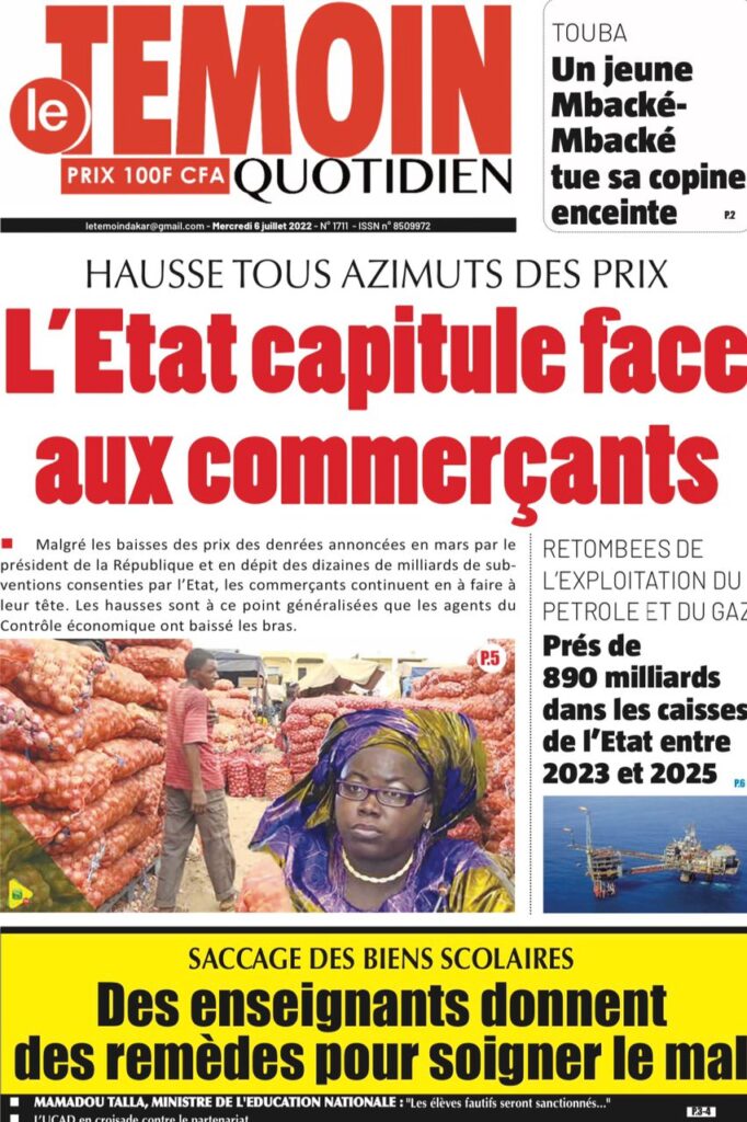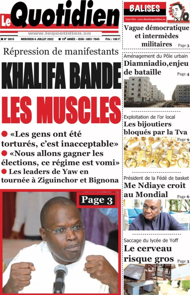 Accueil ›Sénégal ›Une des journaux du mercredi 06 juillet 2022Une des journaux du mercredi 06 juillet 2022 Publié le 6 Juil 2022, à 06:34 par Abdou Faty GUEYE Une des journaux du mercredi 06 juillet 2022Votre avis sera publié et visible par des milliers de lecteurs. Veuillez l’exprimer dans un langage respectueux. Commentaire Nom E-mail (ne sera pas visible) Enregistrer mon nom, mon e-mail et mon site web dans le navigateur pour mon prochain commentaire. Partager Partager Partager 0 Laisser un commentaire Annuler la réponseCommentaireNom E-mail (ne sera pas visible) Enregistrer mon nom, mon e-mail et mon site dans le navigateur pour mon prochain commentaire.