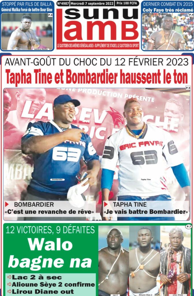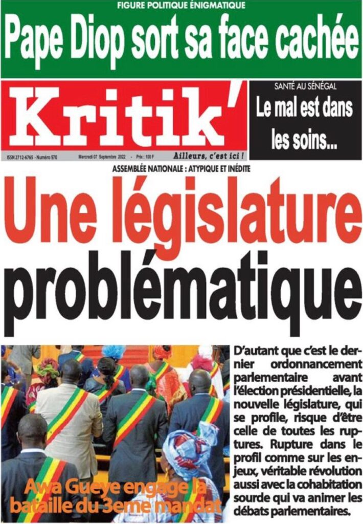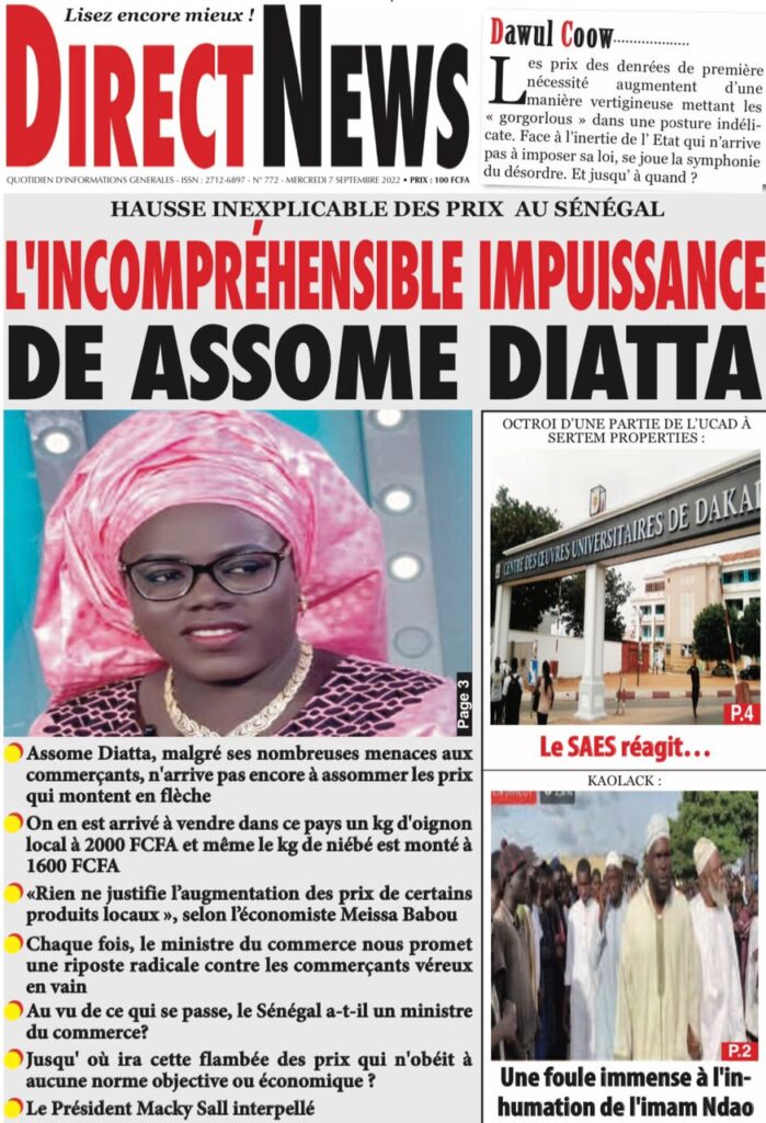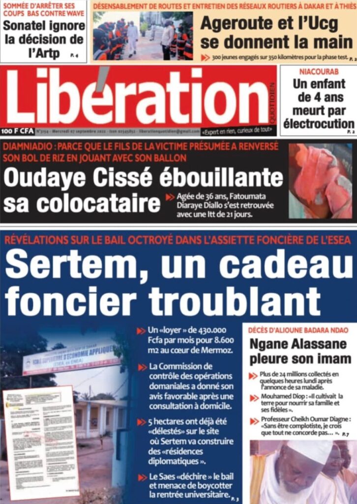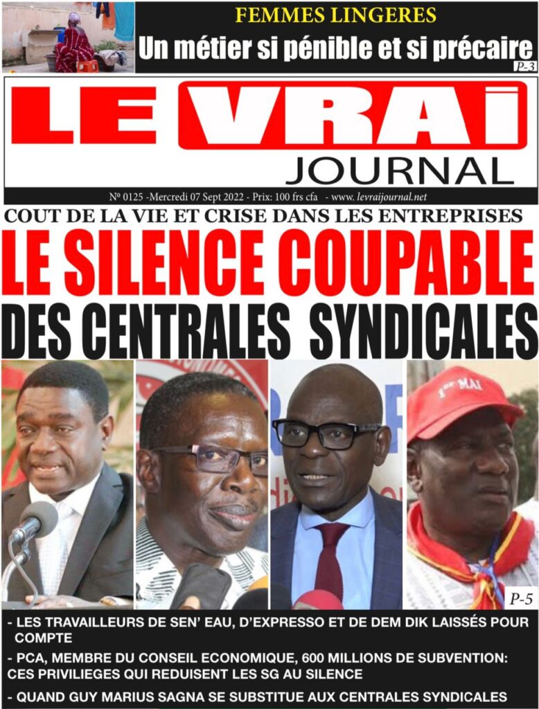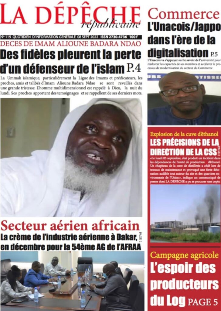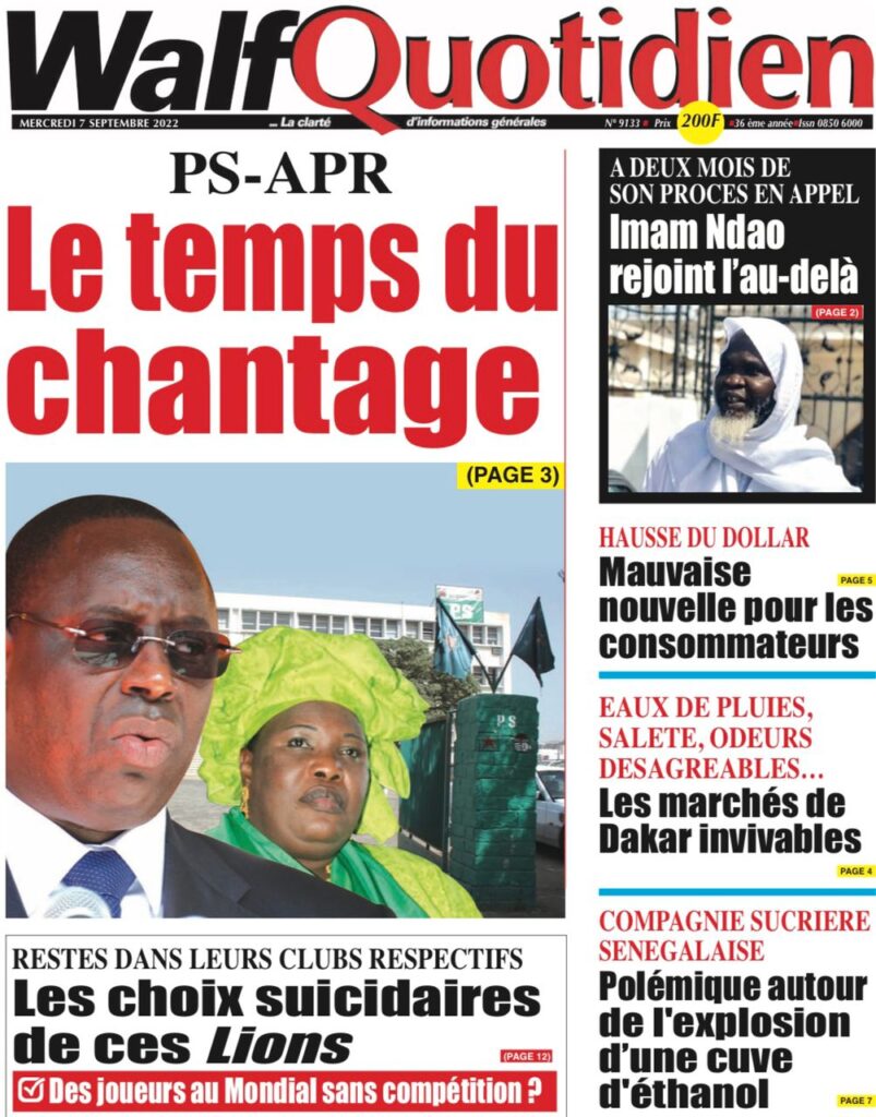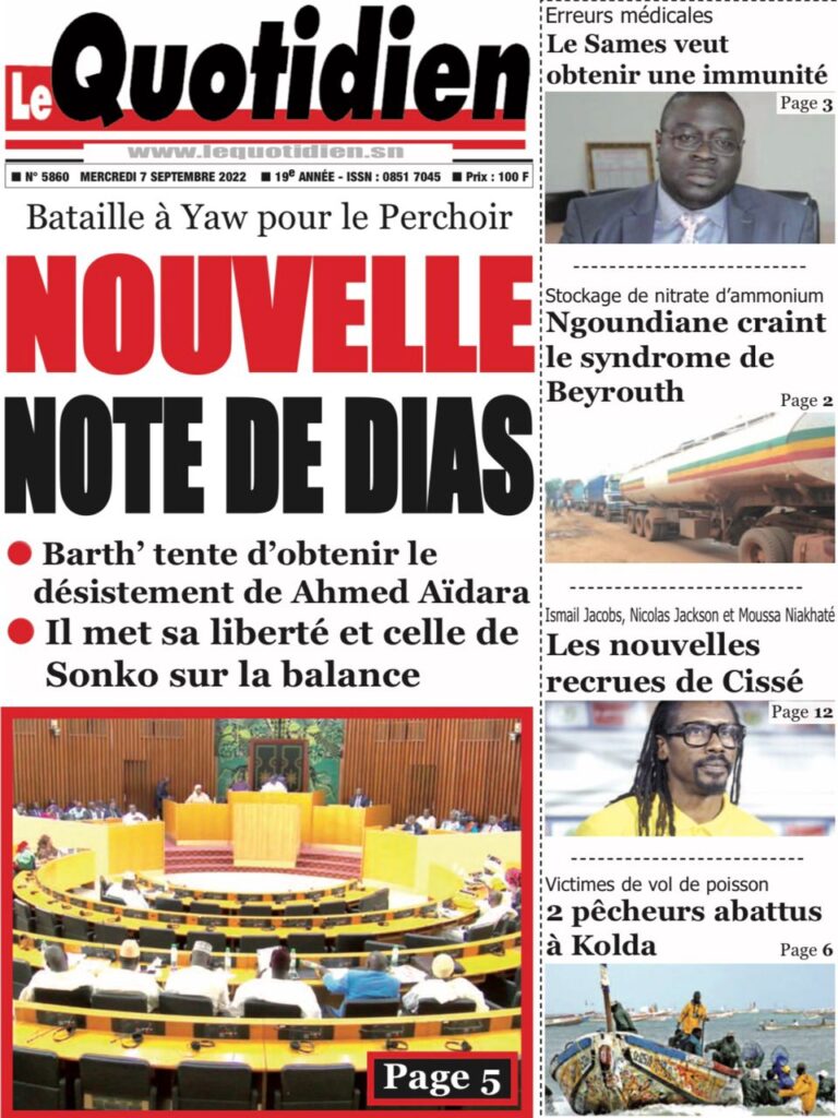 Accueil › Sénégal › Une des journaux du mercredi 07 septembre 2022 Actualités Une des journaux du mercredi 07 septembre 2022 Abdou Faty GUEYE 7 Sep 2022, 07:27 1 min 2 Une des journaux du mercredi 07 septembre 2022 mercredi 07 septembre 2022 une des journaux Votre avis sera publié et visible par des milliers de lecteurs. Veuillez l’exprimer dans un langage respectueux. Commentaire Nom E-mail (ne sera pas visible) Enregistrer mon nom, mon e-mail et mon site web dans le navigateur pour mon prochain commentaire. Partager Partager Partager 2 2 commentaires africain Soleil de merde, ils n ont même pas parlé du décès de imam Le sage C est Macky qui a tué Imam Ndao Le Soleil ne peut en parler Laisser un commentaire Annuler la réponseCommentaireNom E-mail (ne sera pas visible) Enregistrer mon nom, mon e-mail et mon site dans le navigateur pour mon prochain commentaire.