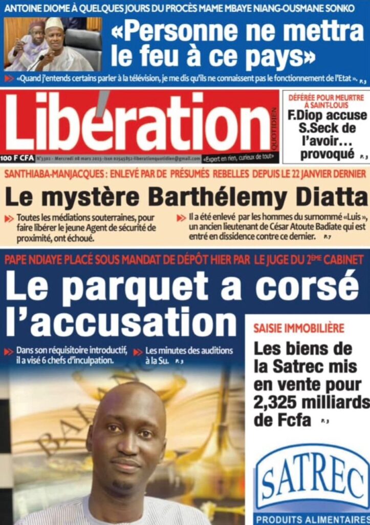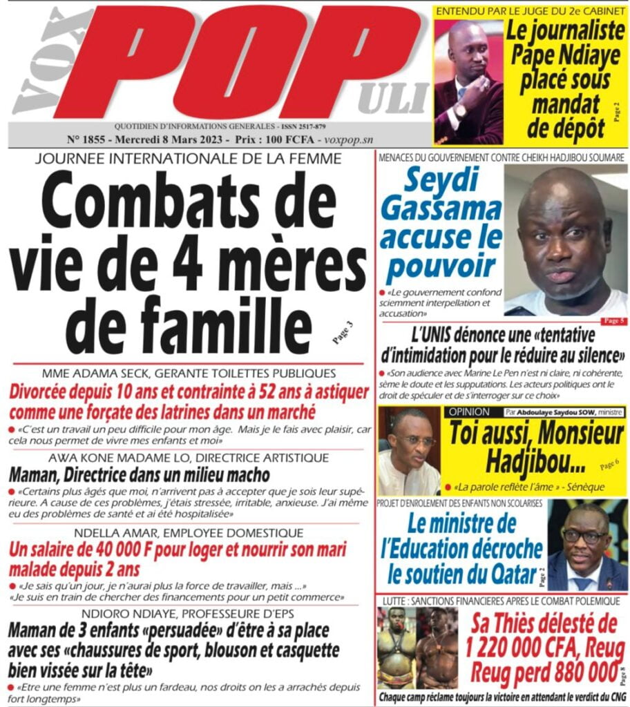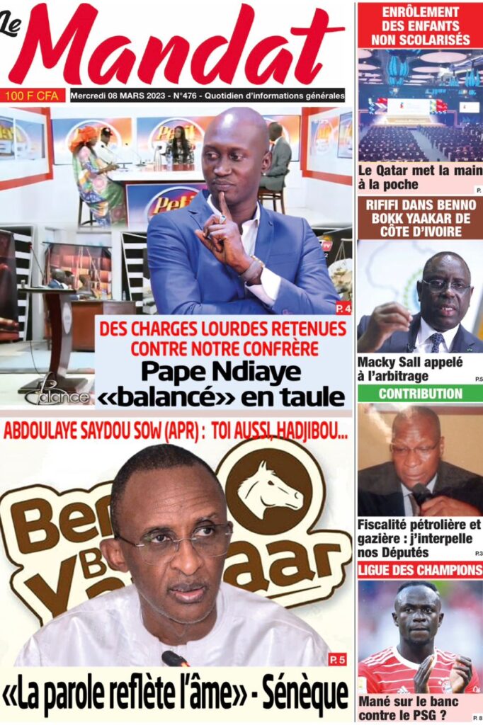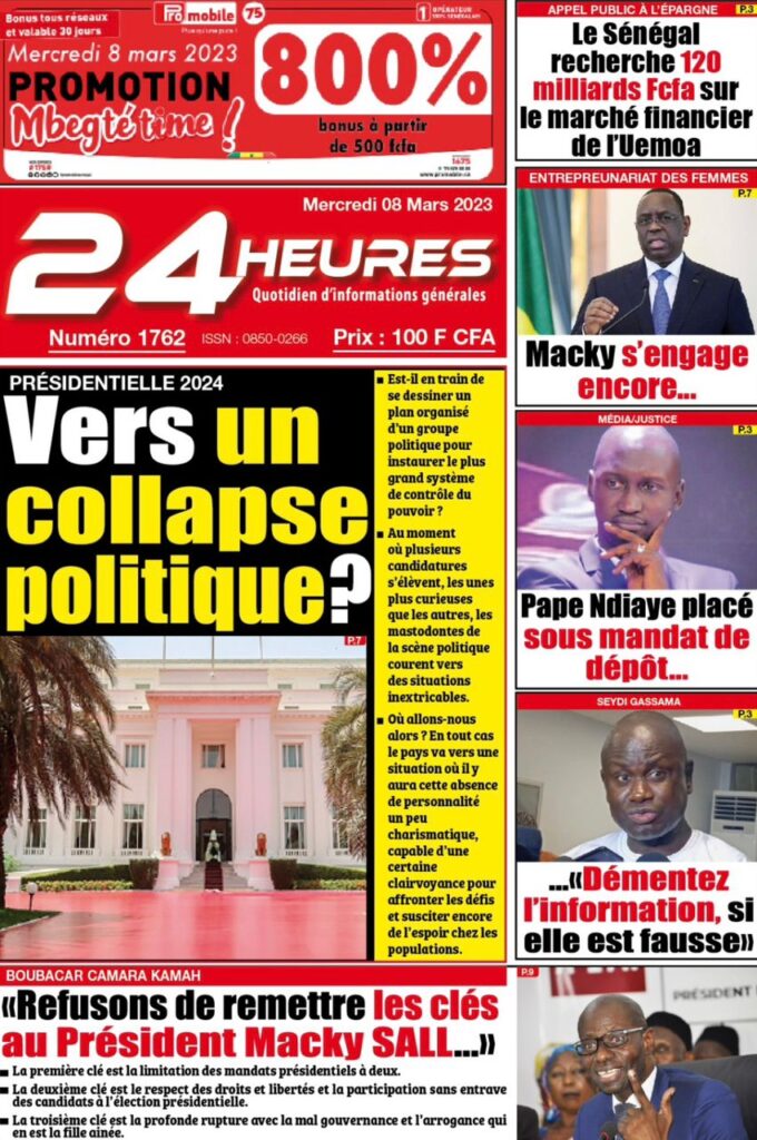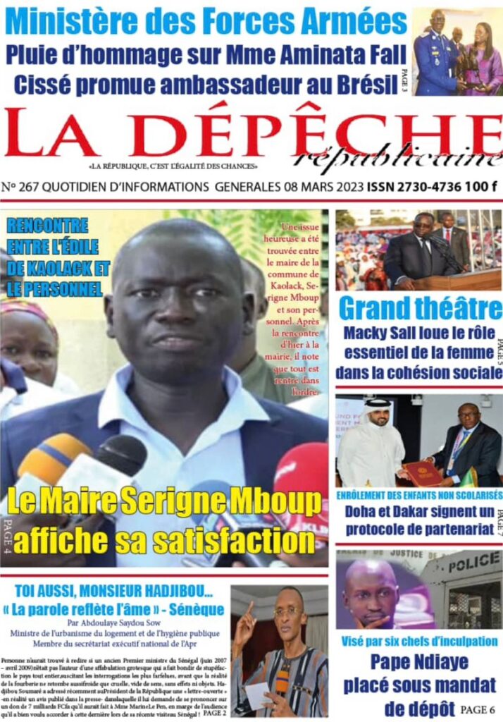 Accueil › Sénégal › Une des journaux du mercredi 08 mars 2023 Actualités Une des journaux du mercredi 08 mars 2023 Abdou Faty GUEYE 8 Mar 2023, 08:36 1 min Une des journaux du mercredi 08 mars 2023 mercredi 08 mars 2023 une des journaux Votre avis sera publié et visible par des milliers de lecteurs. Veuillez l’exprimer dans un langage respectueux. Commentaire Nom E-mail (ne sera pas visible) Enregistrer mon nom, mon e-mail et mon site web dans le navigateur pour mon prochain commentaire. Partager Partager Partager 0 Laisser un commentaire Annuler la réponseCommentaireNom E-mail (ne sera pas visible) Enregistrer mon nom, mon e-mail et mon site dans le navigateur pour mon prochain commentaire.