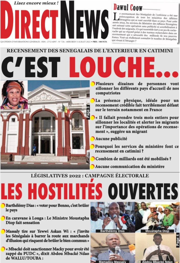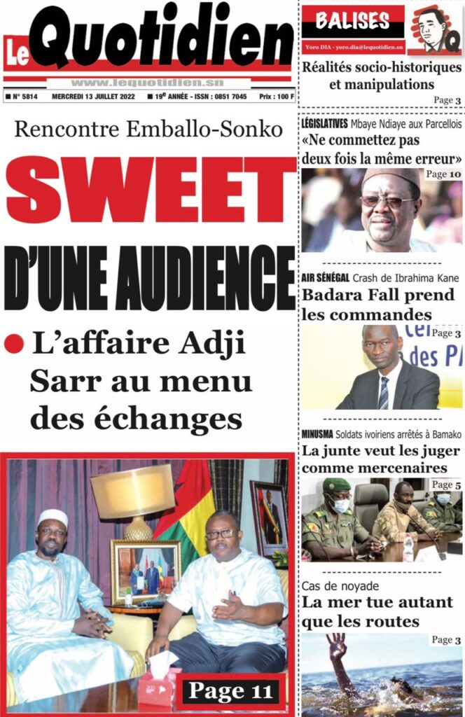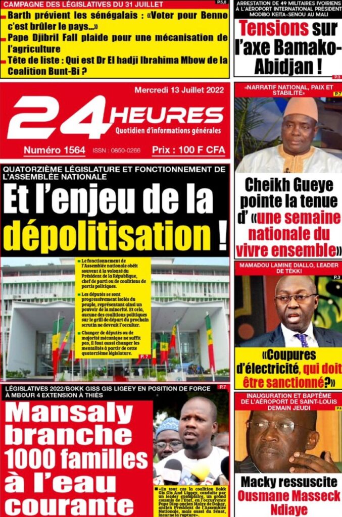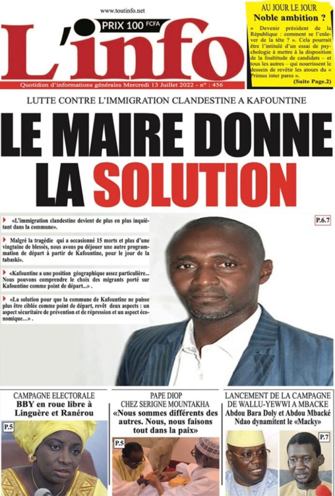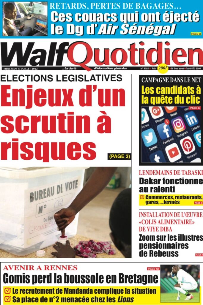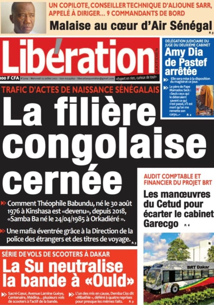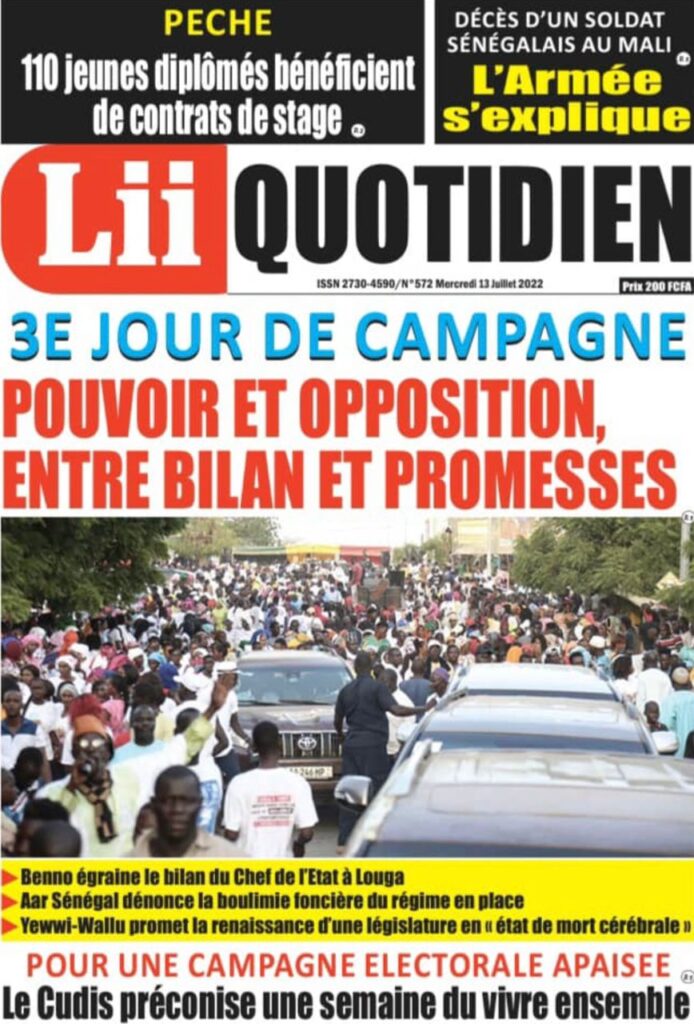 Accueil › Sénégal › Une des journaux du mercredi 13 juillet 2022 Actualités Une des journaux du mercredi 13 juillet 2022 Abdou Faty GUEYE 13 Juil 2022, 09:00 1 min Une des journaux du mercredi 13 juillet 2022 Une des journaux du mercredi 13 juillet 2022 Votre avis sera publié et visible par des milliers de lecteurs. Veuillez l’exprimer dans un langage respectueux. Commentaire Nom E-mail (ne sera pas visible) Enregistrer mon nom, mon e-mail et mon site web dans le navigateur pour mon prochain commentaire. Partager Partager Partager 0 Laisser un commentaire Annuler la réponseCommentaireNom E-mail (ne sera pas visible) Enregistrer mon nom, mon e-mail et mon site dans le navigateur pour mon prochain commentaire.