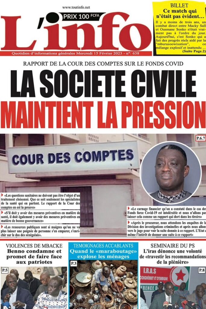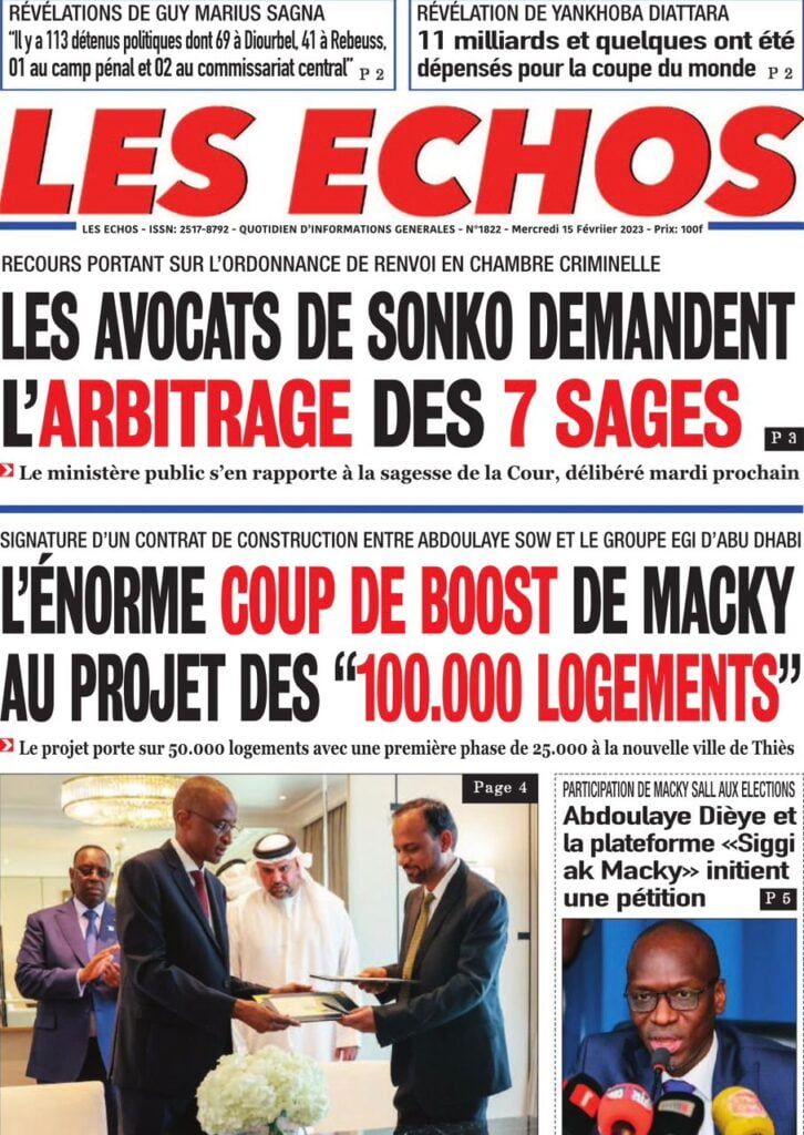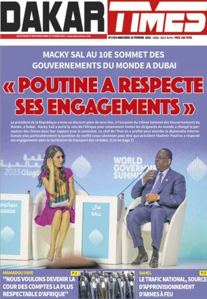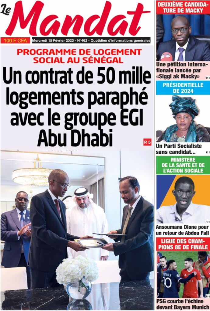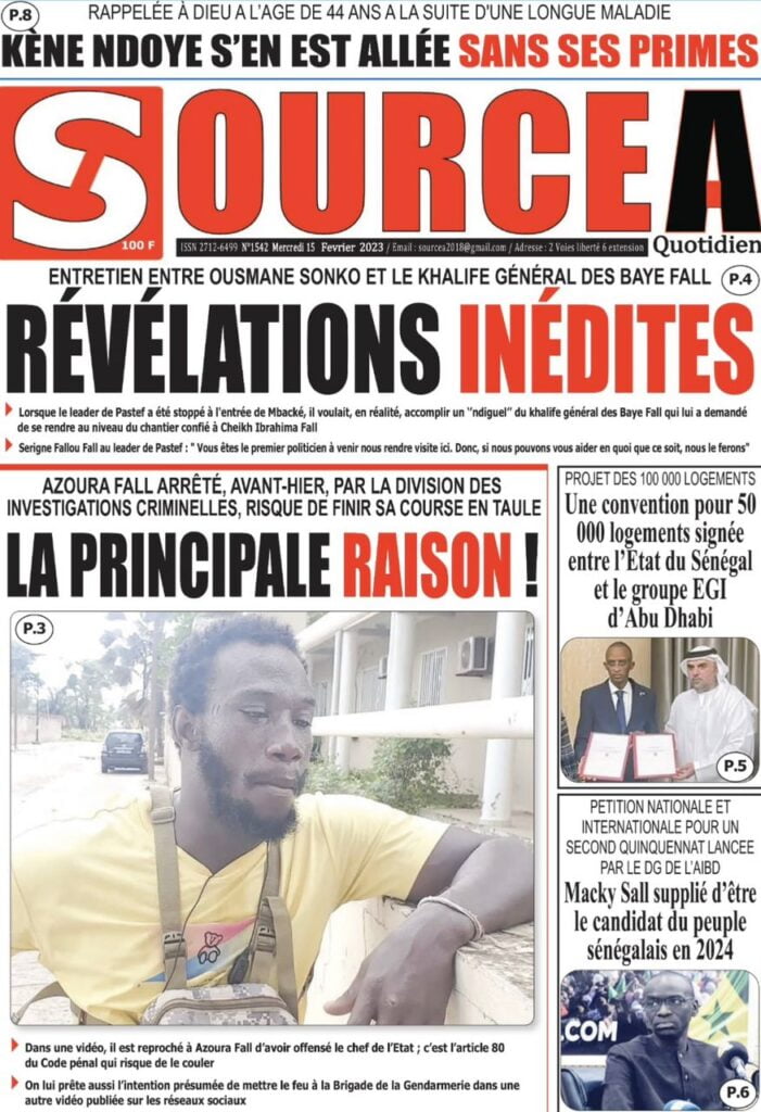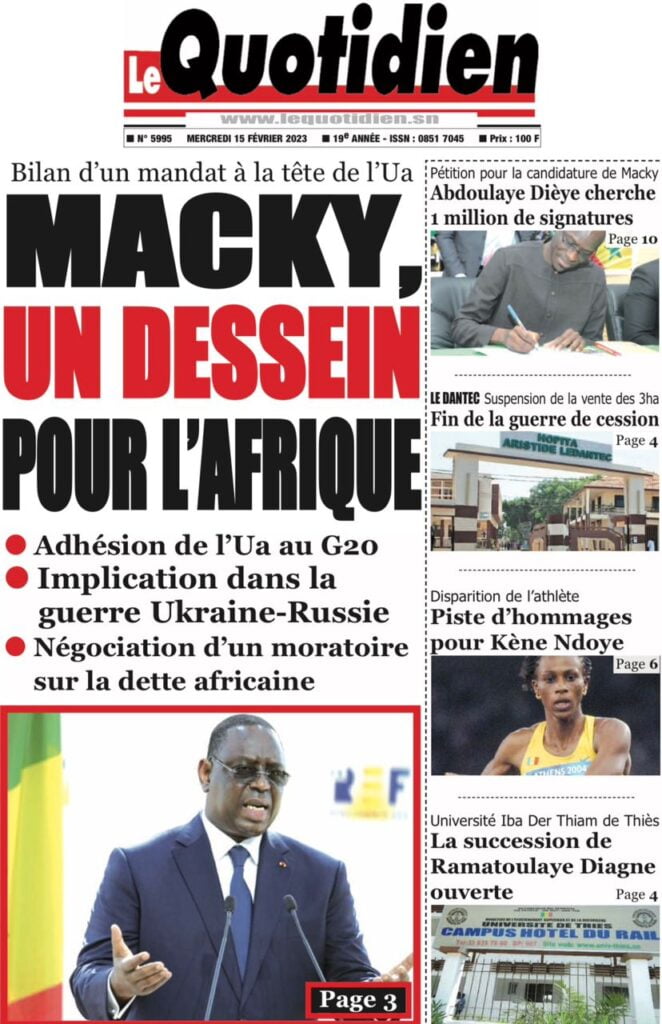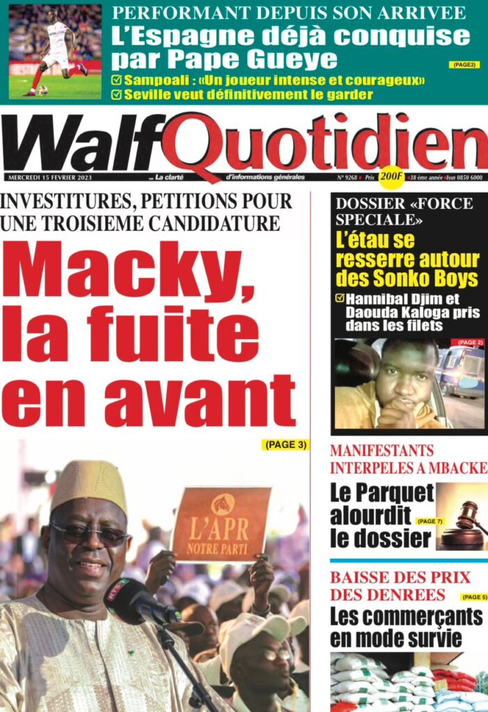 Accueil › Sénégal › Une des journaux du mercredi 15 février 2023 Actualités Une des journaux du mercredi 15 février 2023 Abdou Faty GUEYE 15 Fév 2023, 08:22 1 min Une des journaux du mercredi 15 février 2023 mercredi 15 février 2023 une des journaux Votre avis sera publié et visible par des milliers de lecteurs. Veuillez l’exprimer dans un langage respectueux. Commentaire Nom E-mail (ne sera pas visible) Enregistrer mon nom, mon e-mail et mon site web dans le navigateur pour mon prochain commentaire. Partager Partager Partager 0 Laisser un commentaire Annuler la réponseCommentaireNom E-mail (ne sera pas visible) Enregistrer mon nom, mon e-mail et mon site dans le navigateur pour mon prochain commentaire.
