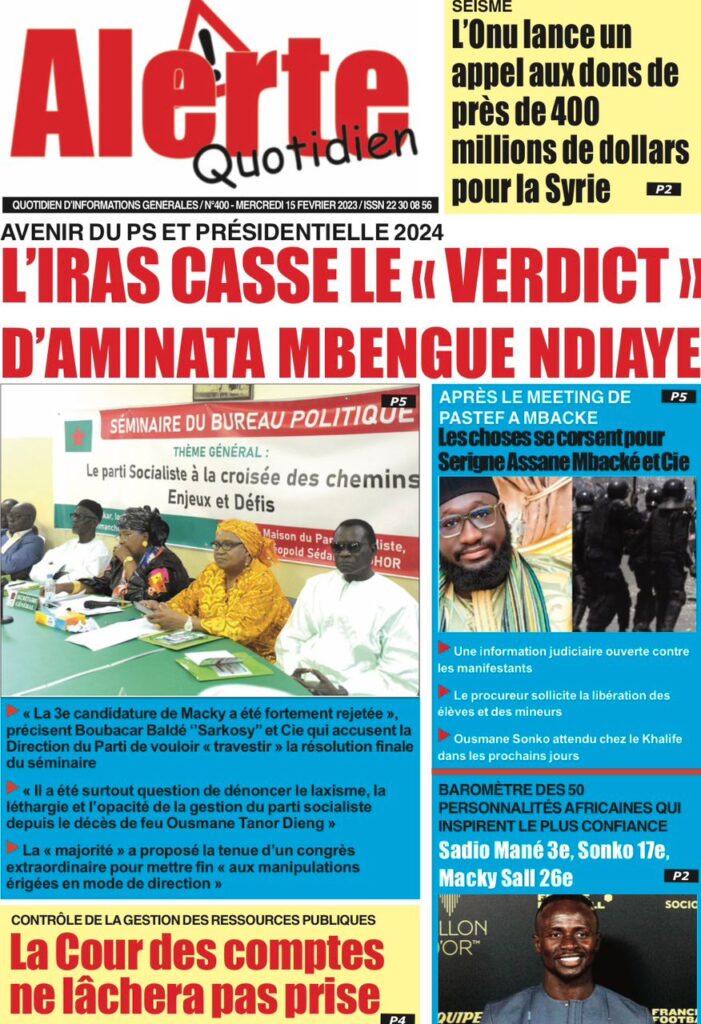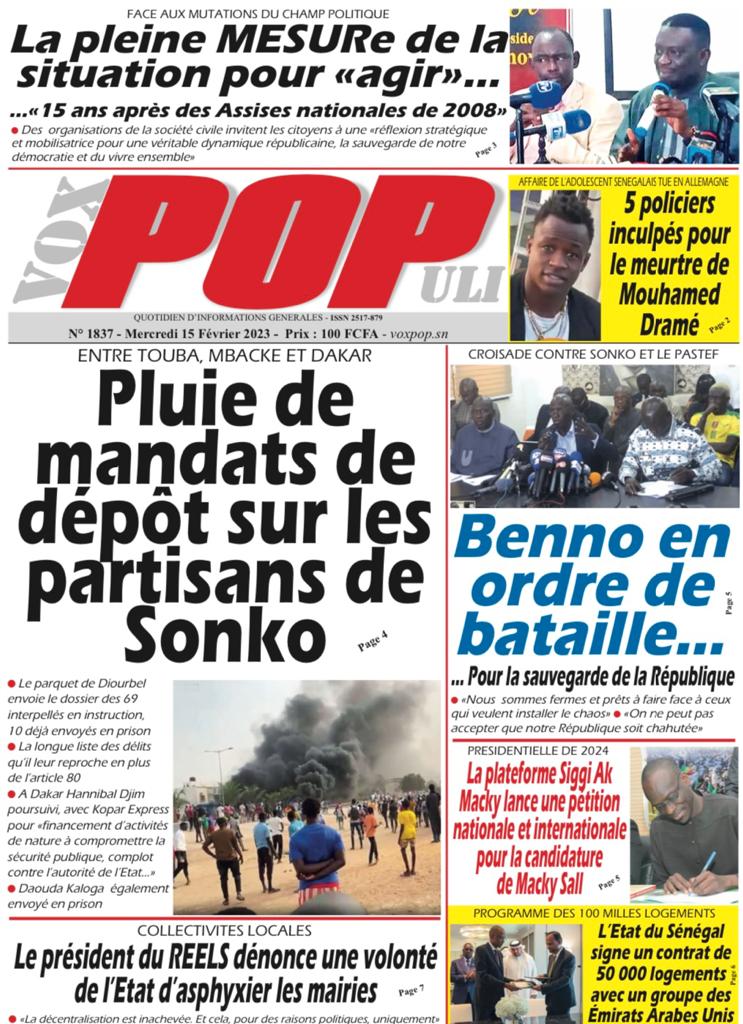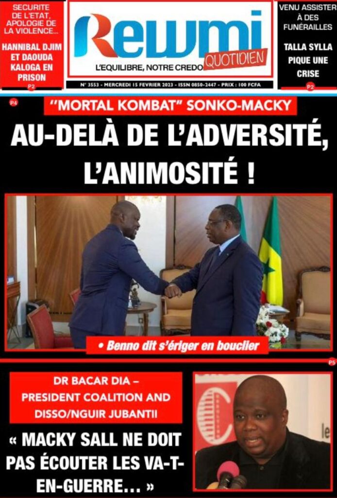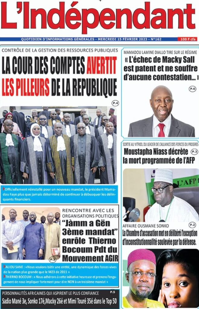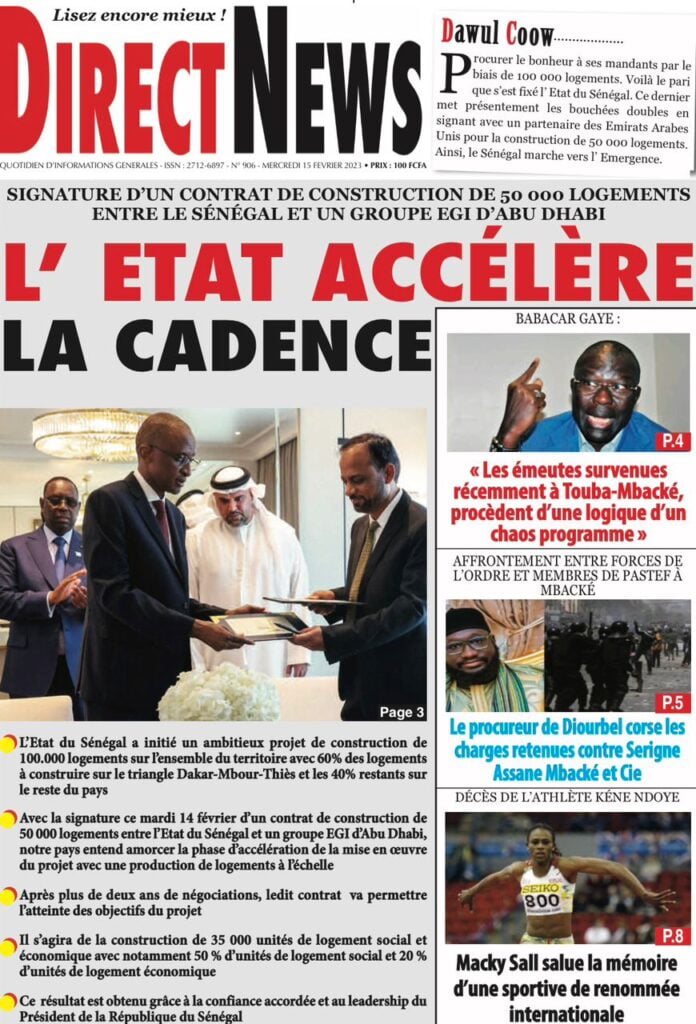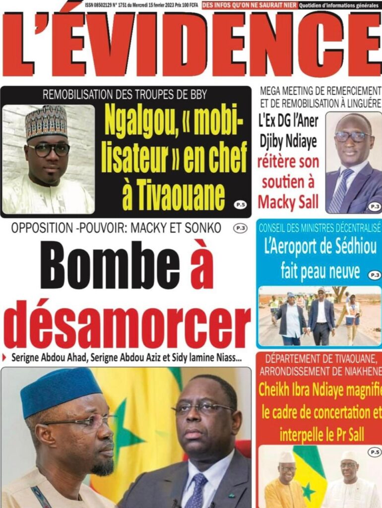 Accueil › Sénégal › Une des journaux du mercredi 15 février 2023 Actualités Une des journaux du mercredi 15 février 2023 Abdou Faty GUEYE 15 Fév 2023, 08:22 1 min Une des journaux du mercredi 15 février 2023 mercredi 15 février 2023 une des journaux Votre avis sera publié et visible par des milliers de lecteurs. Veuillez l’exprimer dans un langage respectueux. Commentaire Nom E-mail (ne sera pas visible) Enregistrer mon nom, mon e-mail et mon site web dans le navigateur pour mon prochain commentaire. Partager Partager Partager 0 Laisser un commentaire Annuler la réponseCommentaireNom E-mail (ne sera pas visible) Enregistrer mon nom, mon e-mail et mon site dans le navigateur pour mon prochain commentaire.