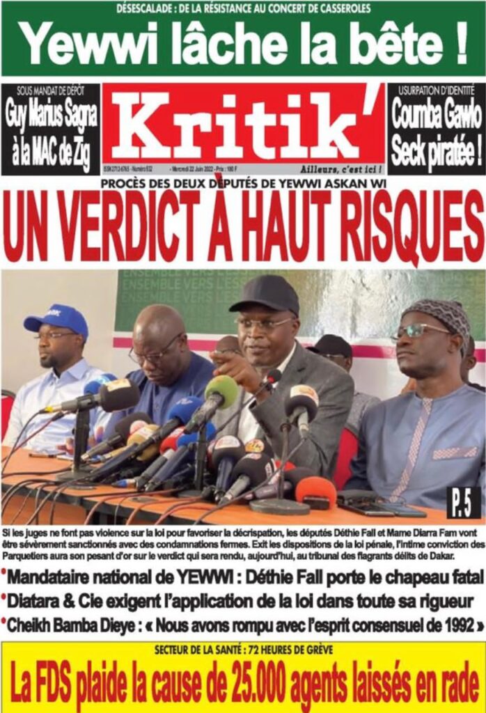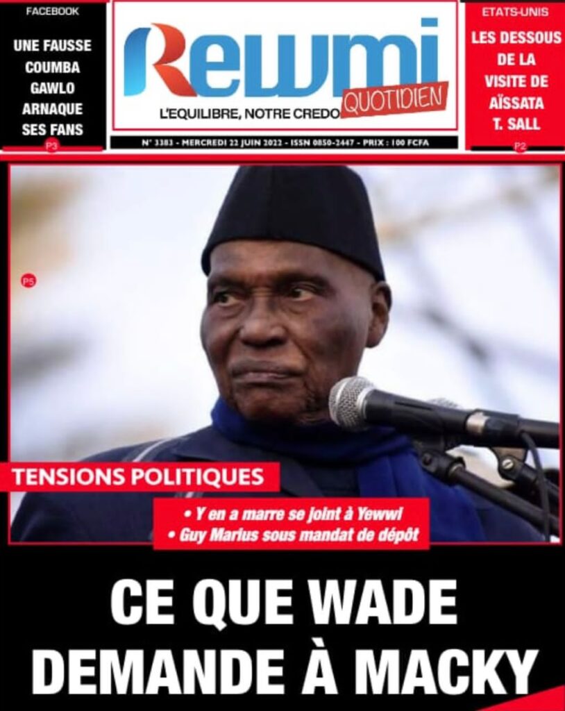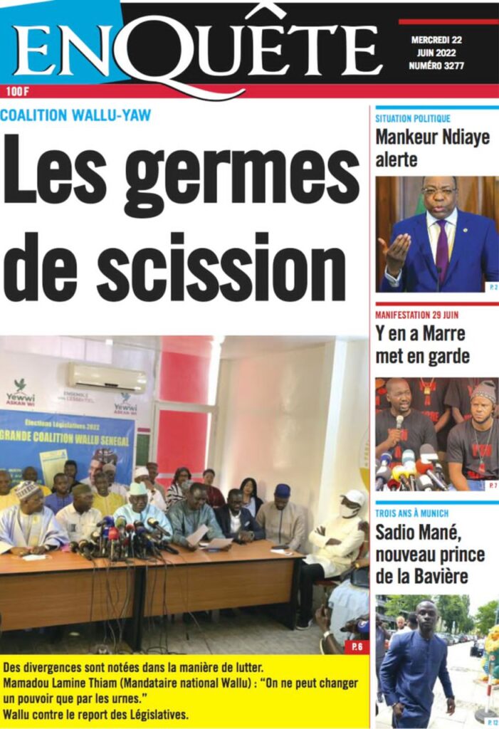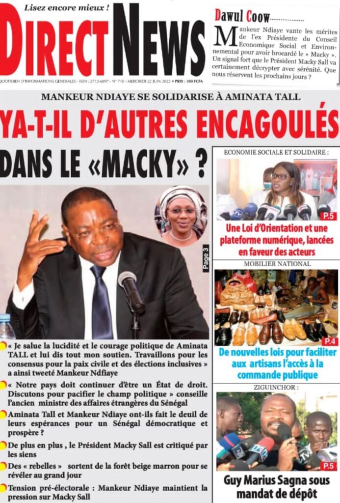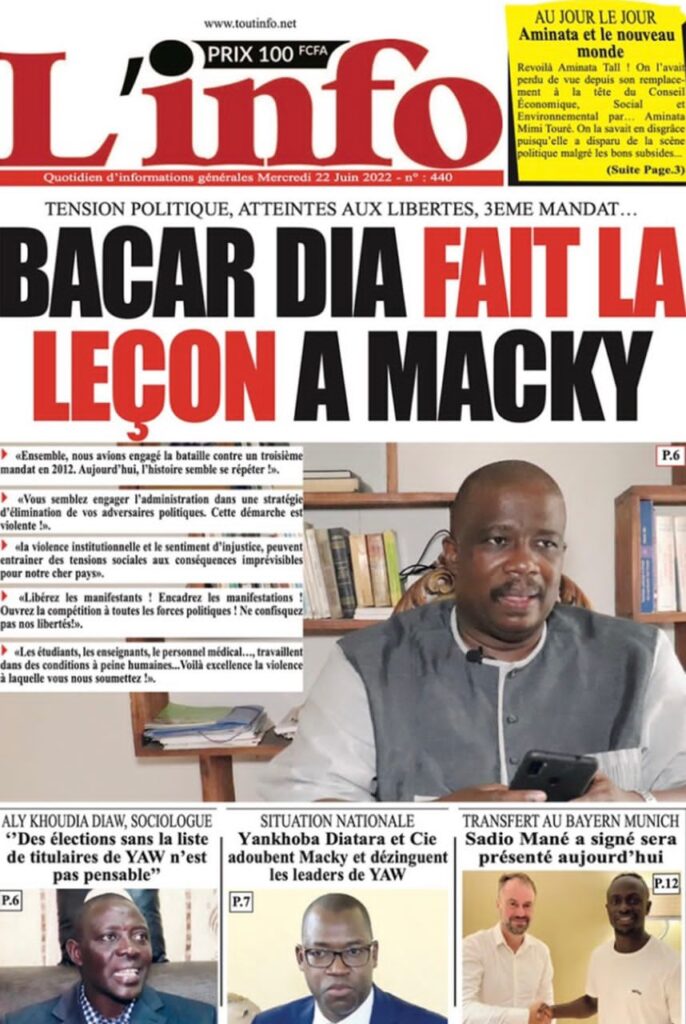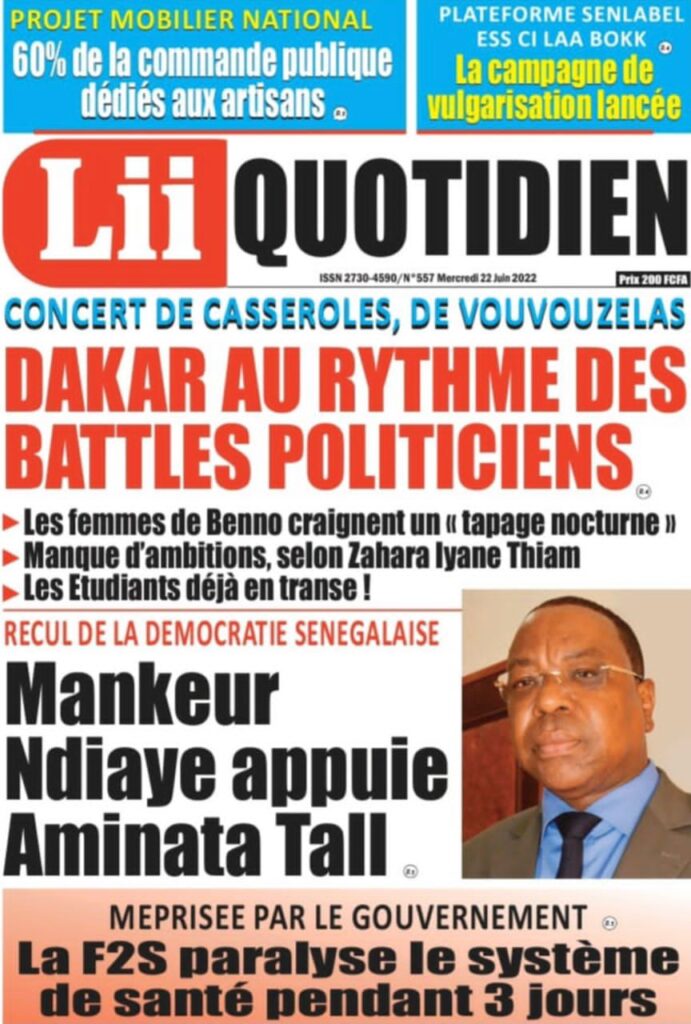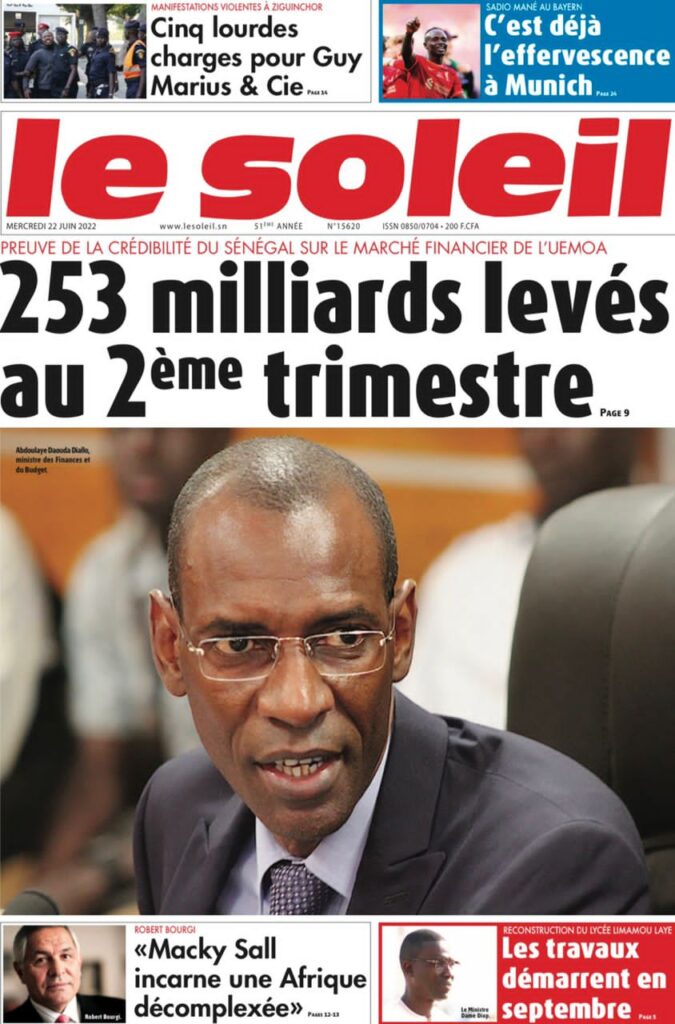 Accueil ›Sénégal ›Une des journaux du mercredi 22 juin 2022Une des journaux du mercredi 22 juin 2022 Publié le 22 Juin 2022, à 08:25 par Abdou Faty GUEYE Votre avis sera publié et visible par des milliers de lecteurs. Veuillez l’exprimer dans un langage respectueux. Commentaire Nom E-mail (ne sera pas visible) Enregistrer mon nom, mon e-mail et mon site web dans le navigateur pour mon prochain commentaire. Partager Partager Partager 0 Laisser un commentaire Annuler la réponseCommentaireNom E-mail (ne sera pas visible) Enregistrer mon nom, mon e-mail et mon site dans le navigateur pour mon prochain commentaire.