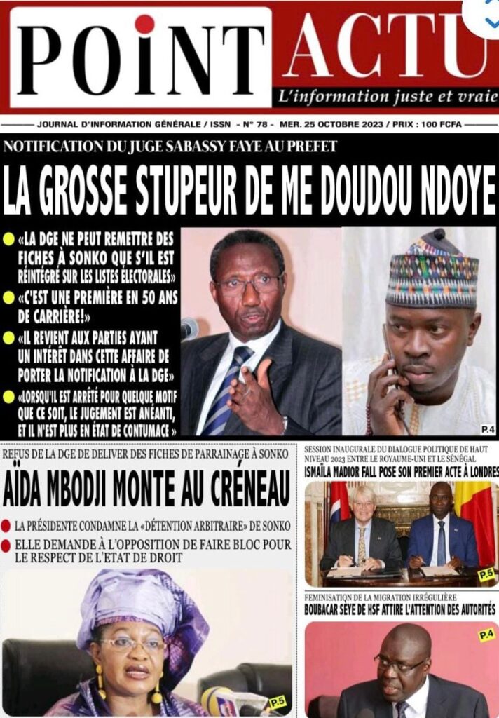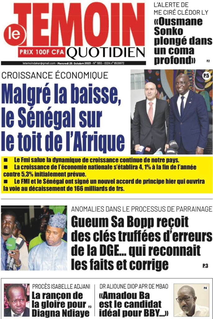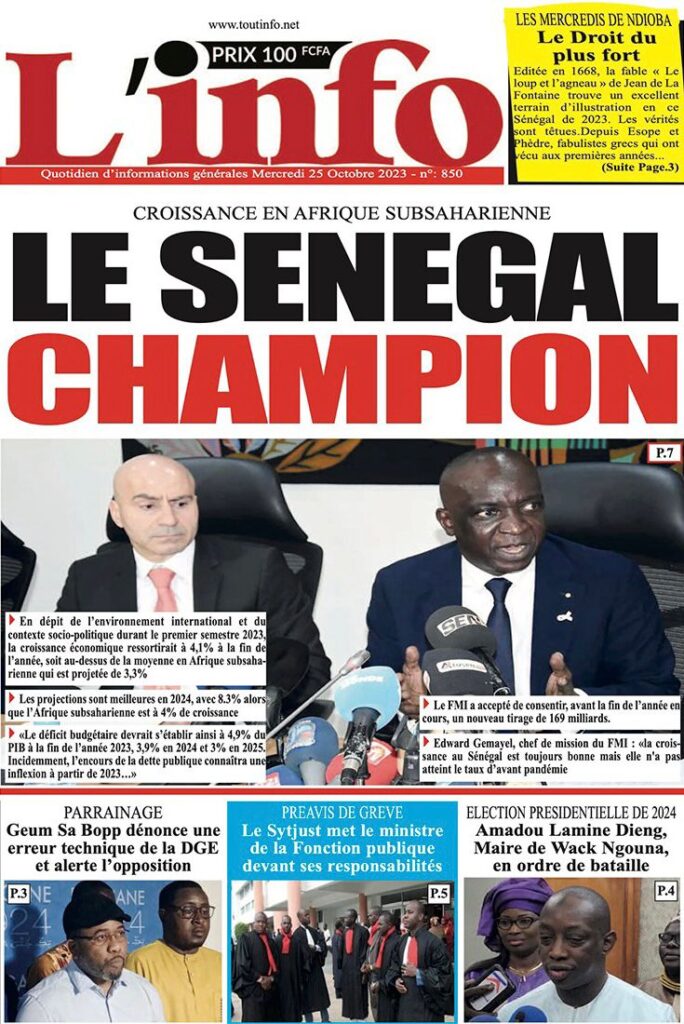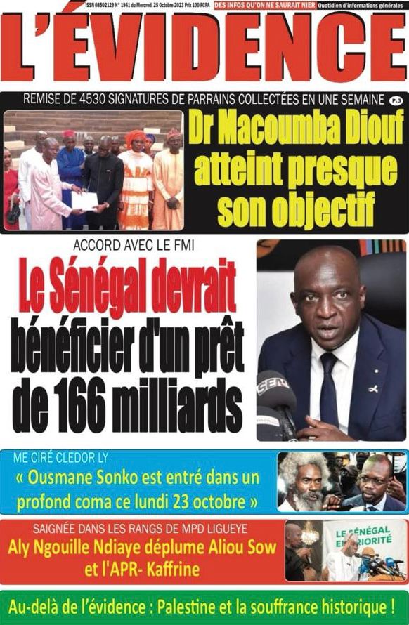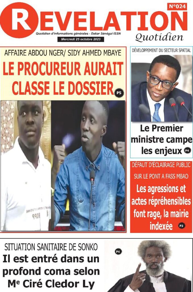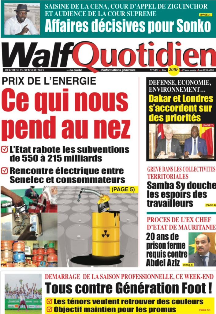 Accueil › Sénégal › Une des journaux du mercredi 25 octobre 2023 Une des journaux du mercredi 25 octobre 2023 Publié le 25 Oct 2023, à 05:42 par Abdou Faty GUEYE Votre avis sera publié et visible par des milliers de lecteurs. Veuillez l’exprimer dans un langage respectueux. Commentaire Nom E-mail (ne sera pas visible) Enregistrer mon nom, mon e-mail et mon site web dans le navigateur pour mon prochain commentaire. Partager Partager Partager 0 Laisser un commentaire Annuler la réponseCommentaireNom E-mail (ne sera pas visible) Enregistrer mon nom, mon e-mail et mon site dans le navigateur pour mon prochain commentaire.
