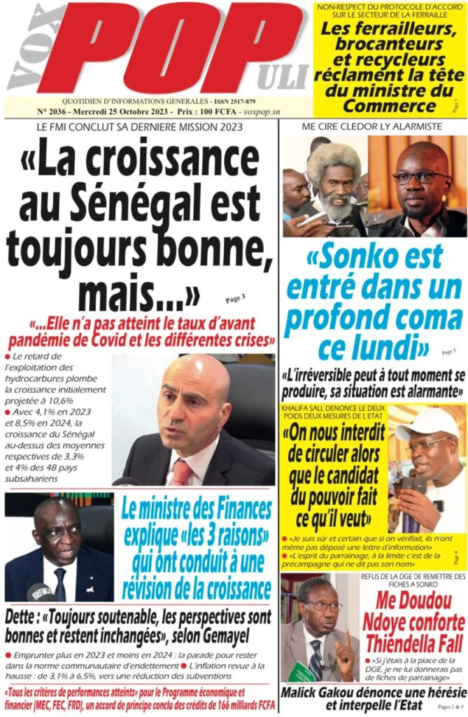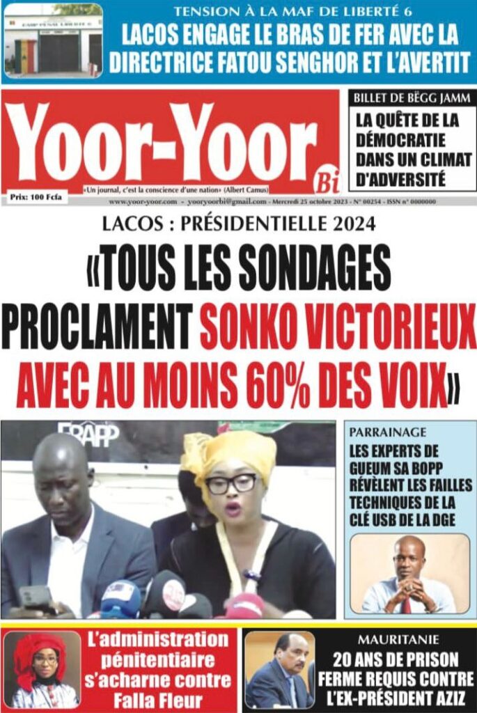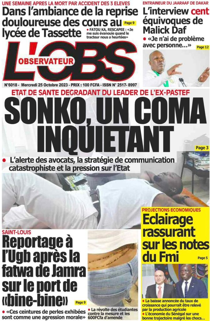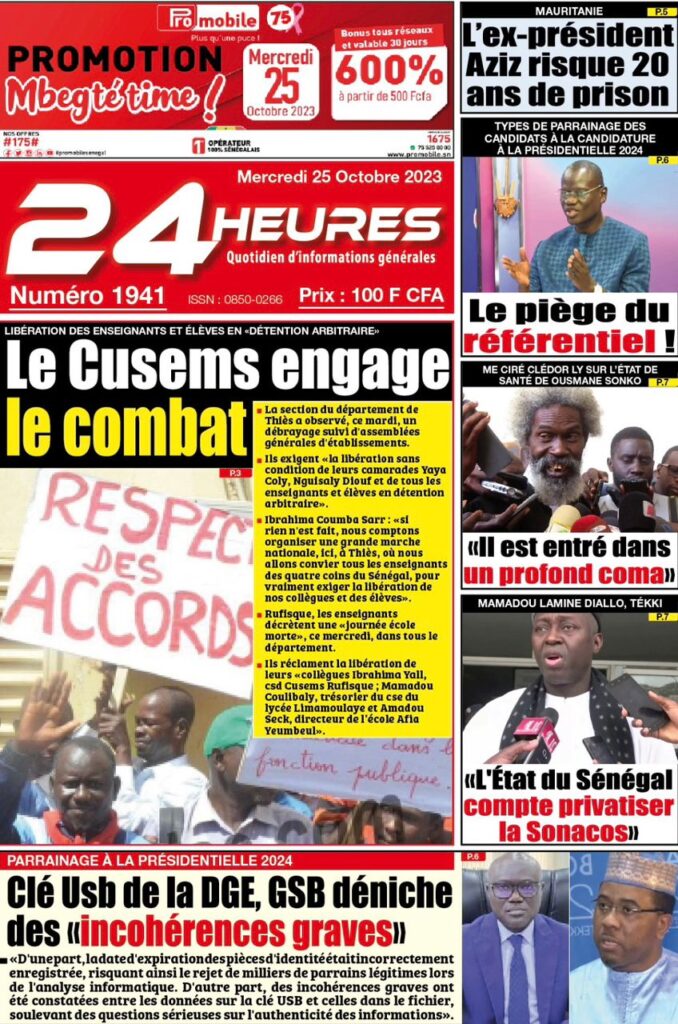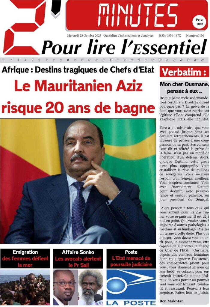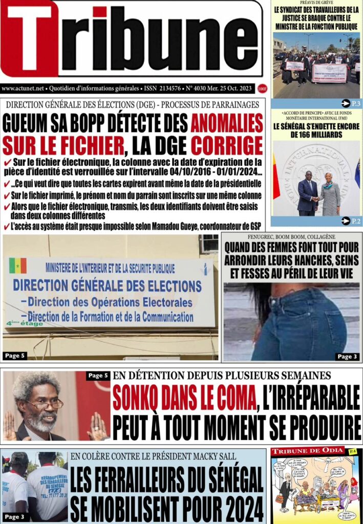 Accueil › Sénégal › Une des journaux du mercredi 25 octobre 2023 Une des journaux du mercredi 25 octobre 2023 Publié le 25 Oct 2023, à 05:42 par Abdou Faty GUEYE Votre avis sera publié et visible par des milliers de lecteurs. Veuillez l’exprimer dans un langage respectueux. Commentaire Nom E-mail (ne sera pas visible) Enregistrer mon nom, mon e-mail et mon site web dans le navigateur pour mon prochain commentaire. Partager Partager Partager 0 Laisser un commentaire Annuler la réponseCommentaireNom E-mail (ne sera pas visible) Enregistrer mon nom, mon e-mail et mon site dans le navigateur pour mon prochain commentaire.