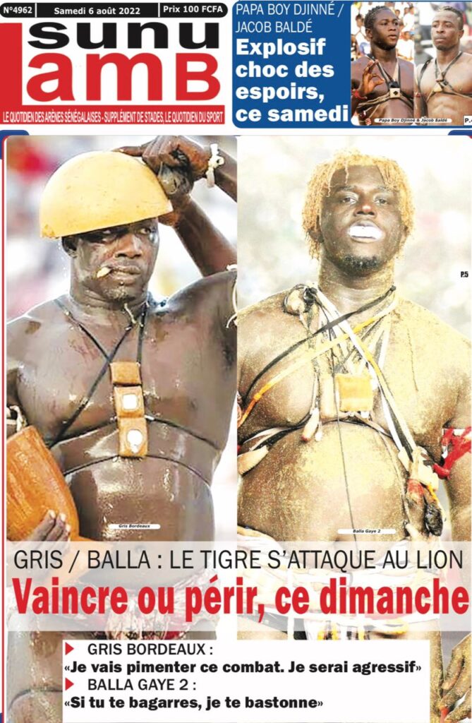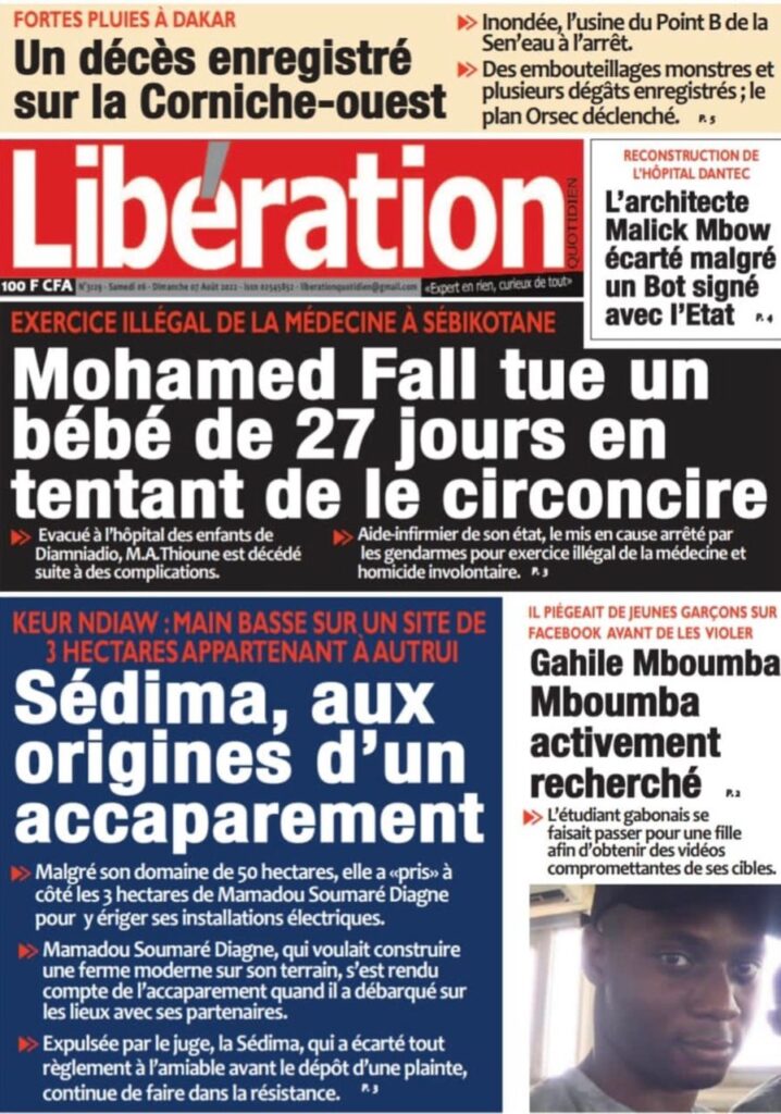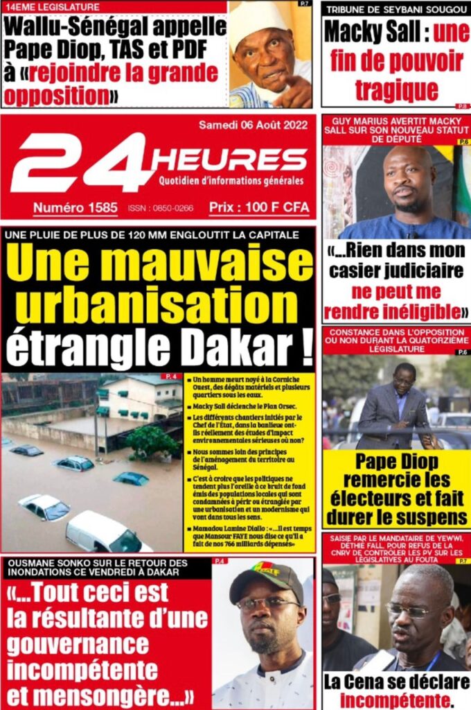 Accueil ›Sénégal ›Une des journaux du samedi 06 août 2022Une des journaux du samedi 06 août 2022 Publié le 6 Août 2022, à 08:42 par Abdou Faty GUEYE Une des journaux du samedi 06 août 2022Votre avis sera publié et visible par des milliers de lecteurs. Veuillez l’exprimer dans un langage respectueux. Commentaire Nom E-mail (ne sera pas visible) Enregistrer mon nom, mon e-mail et mon site web dans le navigateur pour mon prochain commentaire. Partager Partager Partager 0 Laisser un commentaire Annuler la réponseCommentaireNom E-mail (ne sera pas visible) Enregistrer mon nom, mon e-mail et mon site dans le navigateur pour mon prochain commentaire.