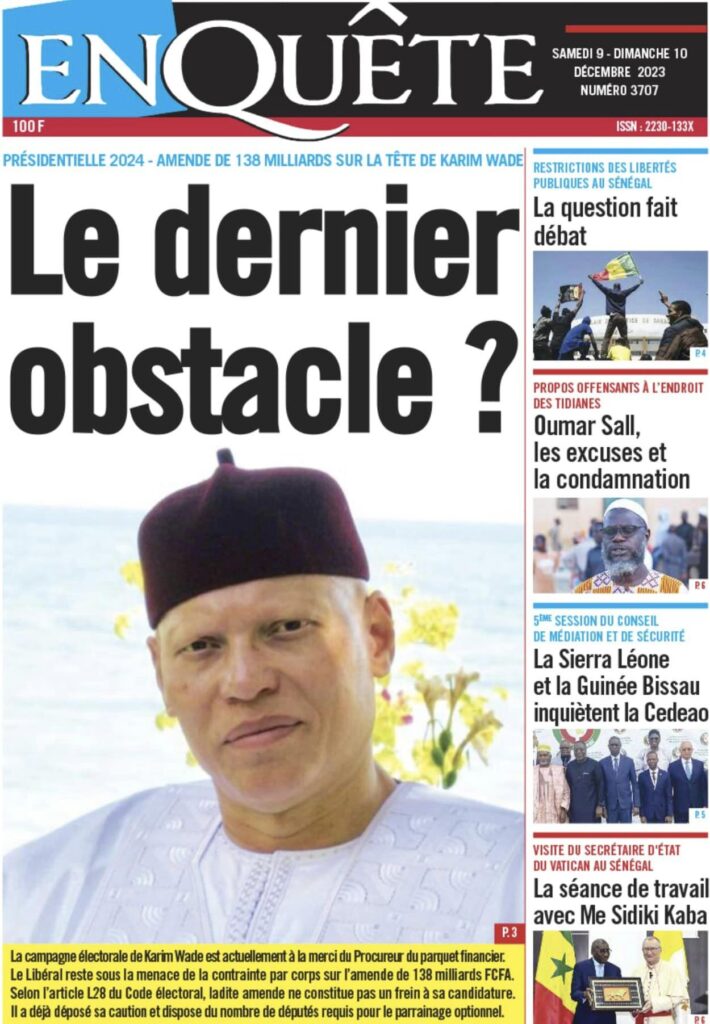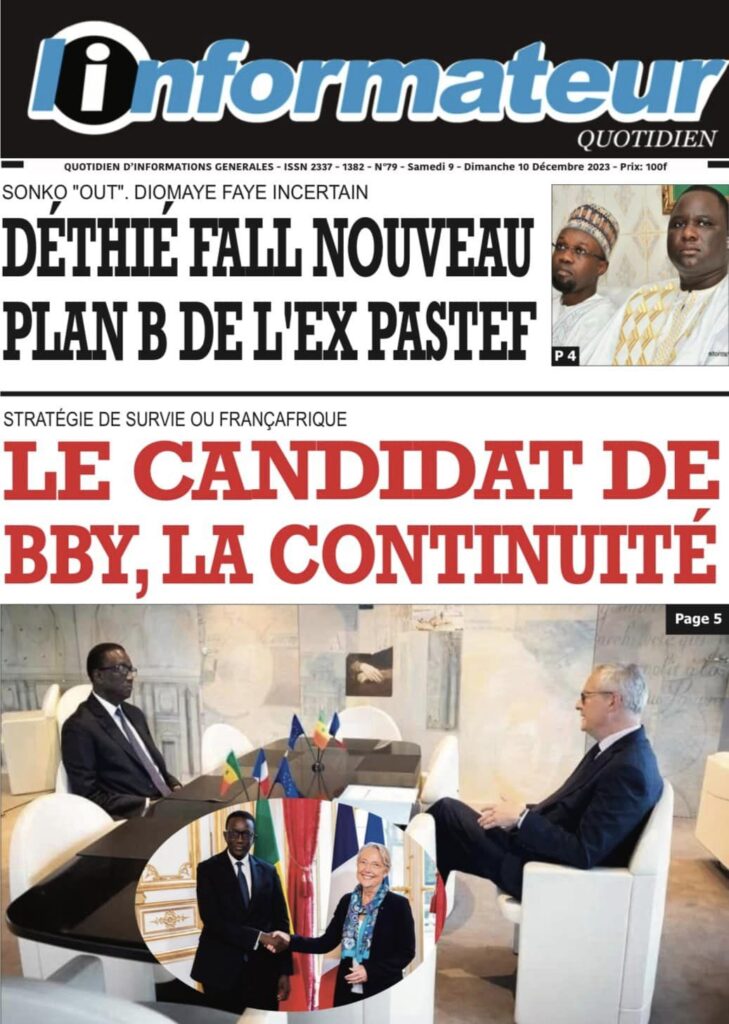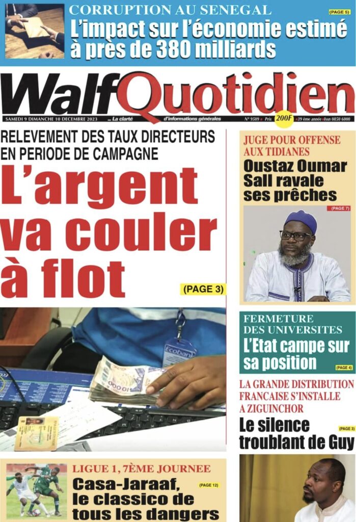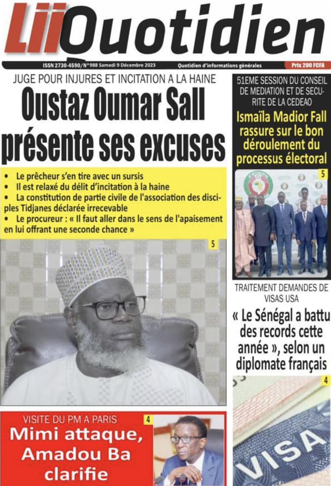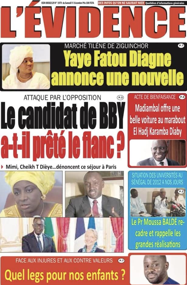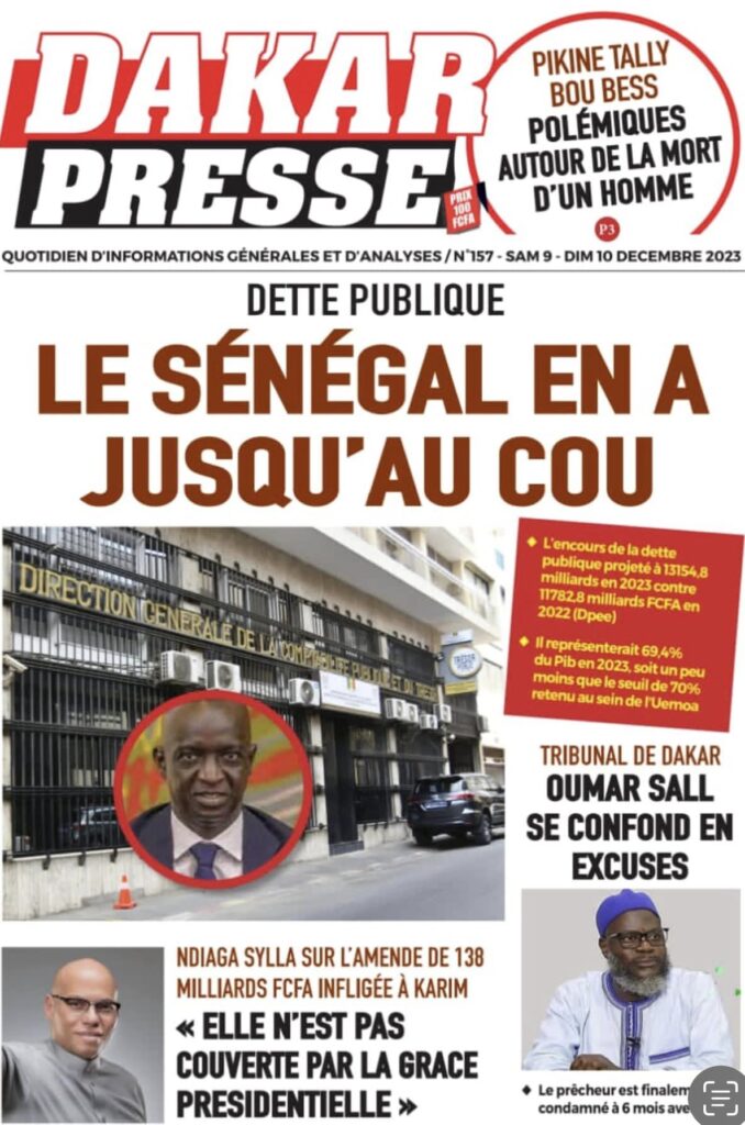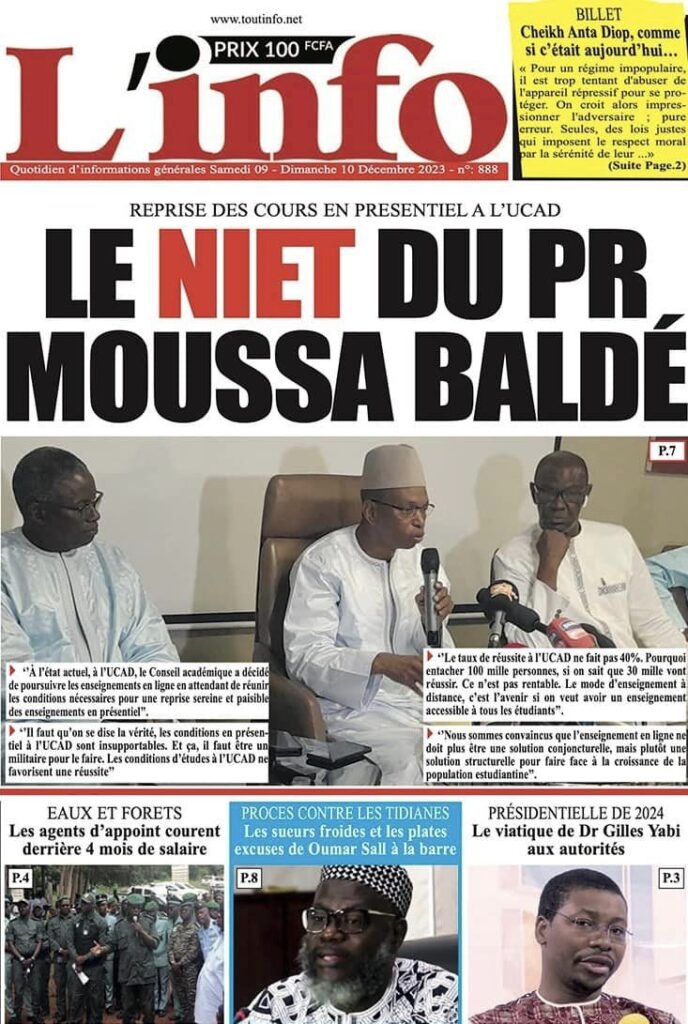 Accueil › Sénégal › Une des journaux du samedi 09 décembre 2023 Une des journaux du samedi 09 décembre 2023 Publié le 9 Déc 2023, à 05:44 par Abdou Faty GUEYE Une des journaux du samedi 09 décembre 2023 Votre avis sera publié et visible par des milliers de lecteurs. Veuillez l’exprimer dans un langage respectueux. Commentaire Nom E-mail (ne sera pas visible) Enregistrer mon nom, mon e-mail et mon site web dans le navigateur pour mon prochain commentaire. Partager Partager Partager 0 Laisser un commentaire Annuler la réponseCommentaireNom E-mail (ne sera pas visible) Enregistrer mon nom, mon e-mail et mon site dans le navigateur pour mon prochain commentaire.