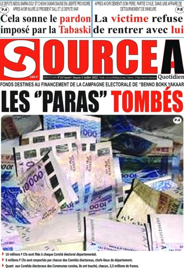 Accueil › Sénégal › Une des journaux du samedi 09 juillet 2022 Actualités Une des journaux du samedi 09 juillet 2022 Abdou Faty GUEYE 9 Juil 2022, 06:53 1 min Une des journaux du samedi 09 juillet 2022 Une des journaux du samedi 09 juillet 2022 Votre avis sera publié et visible par des milliers de lecteurs. Veuillez l’exprimer dans un langage respectueux. Commentaire Nom E-mail (ne sera pas visible) Enregistrer mon nom, mon e-mail et mon site web dans le navigateur pour mon prochain commentaire. Partager Partager Partager 0 Laisser un commentaire Annuler la réponseCommentaireNom E-mail (ne sera pas visible) Enregistrer mon nom, mon e-mail et mon site dans le navigateur pour mon prochain commentaire.