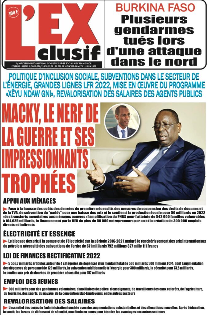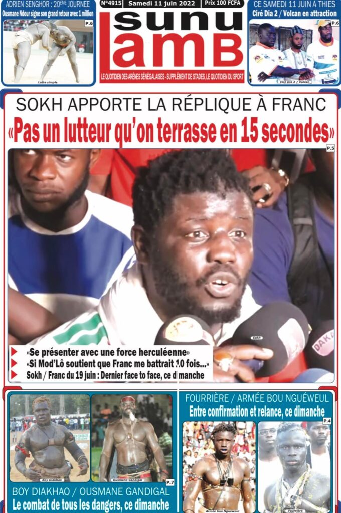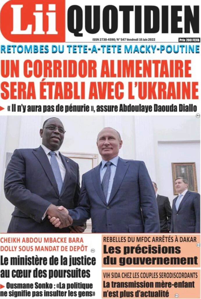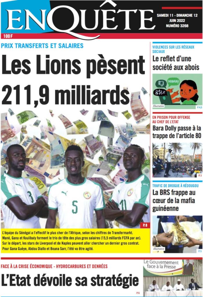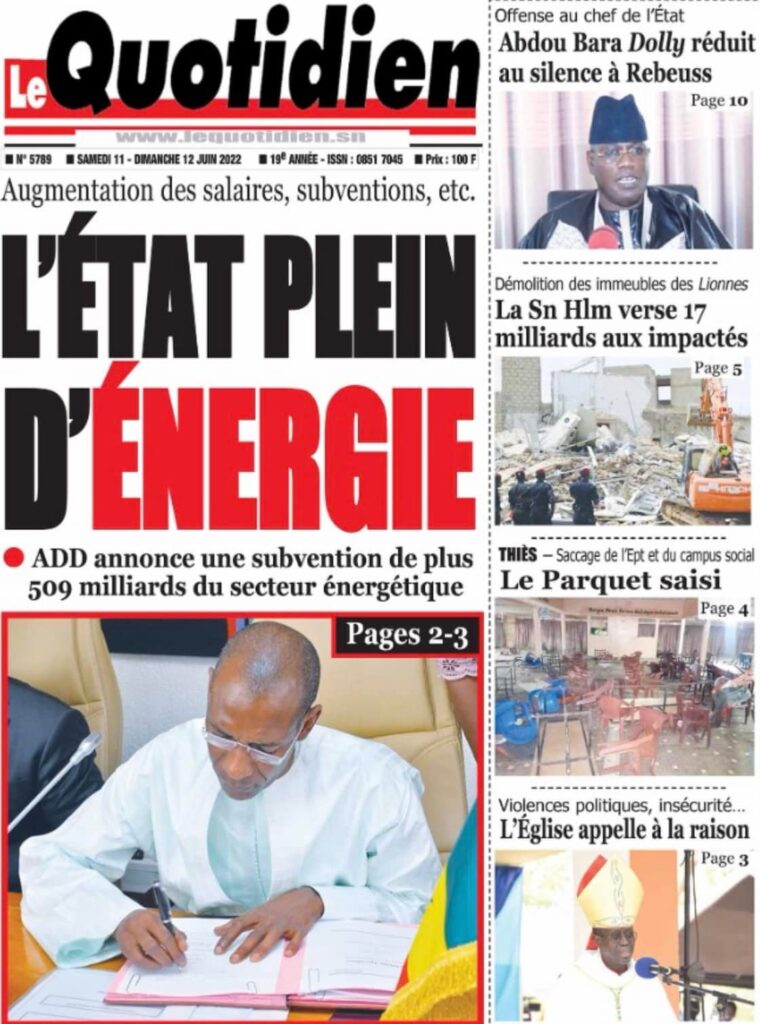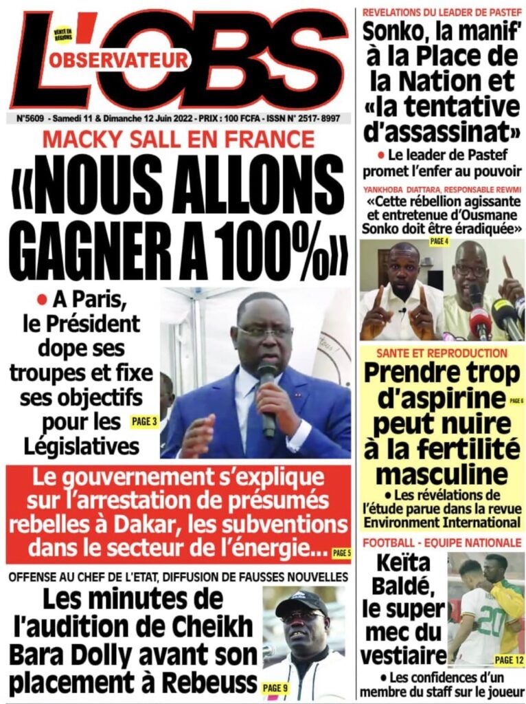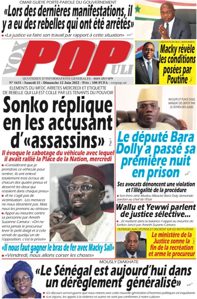Accueil › Sénégal › Une des journaux du samedi 11 juin 2022 Une des journaux du samedi 11 juin 2022 Publié le 11 Juin 2022, à 08:04 par Abdou Faty GUEYE Une des journaux du samedi 11 juin 2022 Votre avis sera publié et visible par des milliers de lecteurs. Veuillez l’exprimer dans un langage respectueux. Commentaire Nom E-mail (ne sera pas visible) Enregistrer mon nom, mon e-mail et mon site web dans le navigateur pour mon prochain commentaire. Partager Partager Partager 0 Laisser un commentaire Annuler la réponseCommentaireNom E-mail (ne sera pas visible) Enregistrer mon nom, mon e-mail et mon site dans le navigateur pour mon prochain commentaire.
