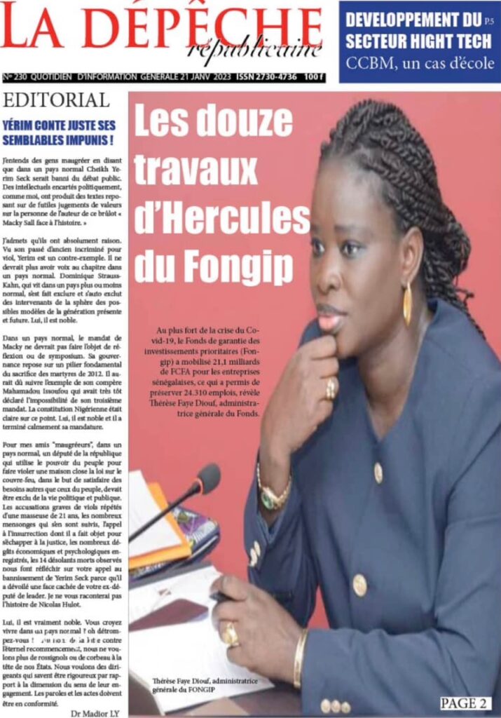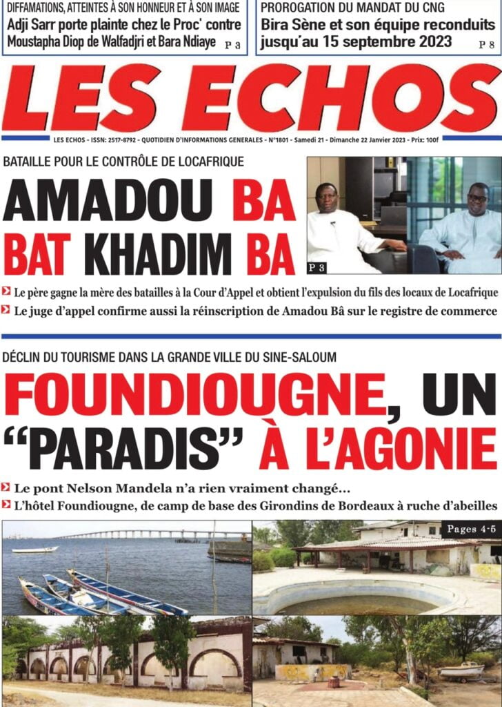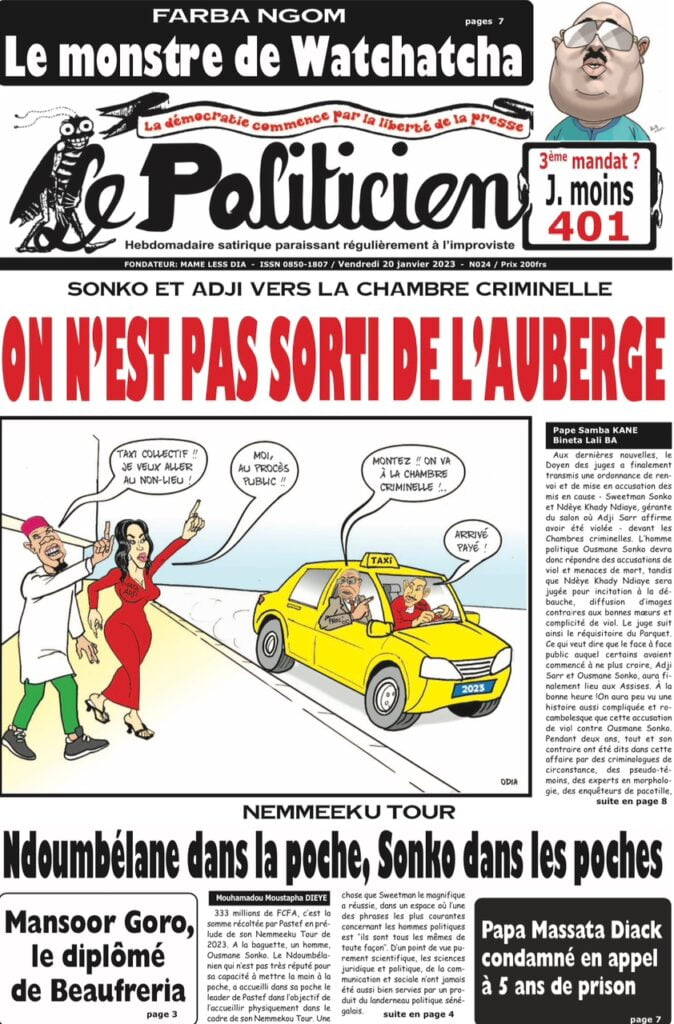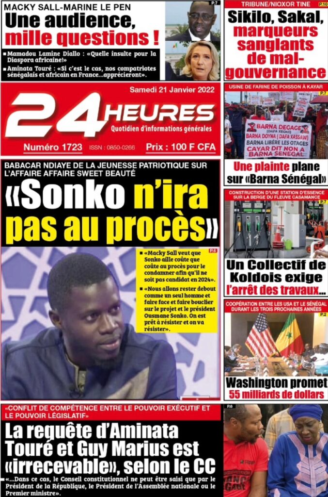 Accueil › Sénégal › Une des journaux du samedi 21 janvier 2023 Actualités Une des journaux du samedi 21 janvier 2023 Abdou Faty GUEYE 21 Jan 2023, 08:56 1 min Une des journaux du samedi 21 janvier 2023 samedi 21 janvier 2023 une des journaux Votre avis sera publié et visible par des milliers de lecteurs. Veuillez l’exprimer dans un langage respectueux. Commentaire Nom E-mail (ne sera pas visible) Enregistrer mon nom, mon e-mail et mon site web dans le navigateur pour mon prochain commentaire. Partager Partager Partager 0 Laisser un commentaire Annuler la réponseCommentaireNom E-mail (ne sera pas visible) Enregistrer mon nom, mon e-mail et mon site dans le navigateur pour mon prochain commentaire.